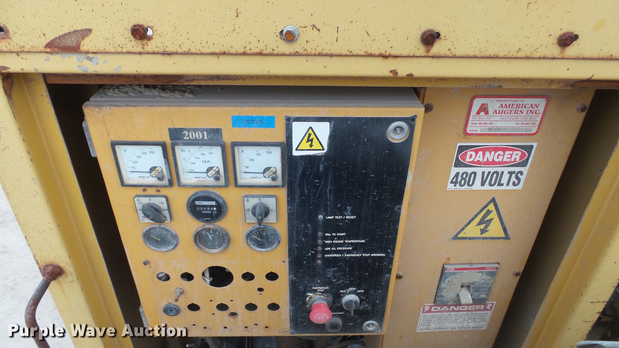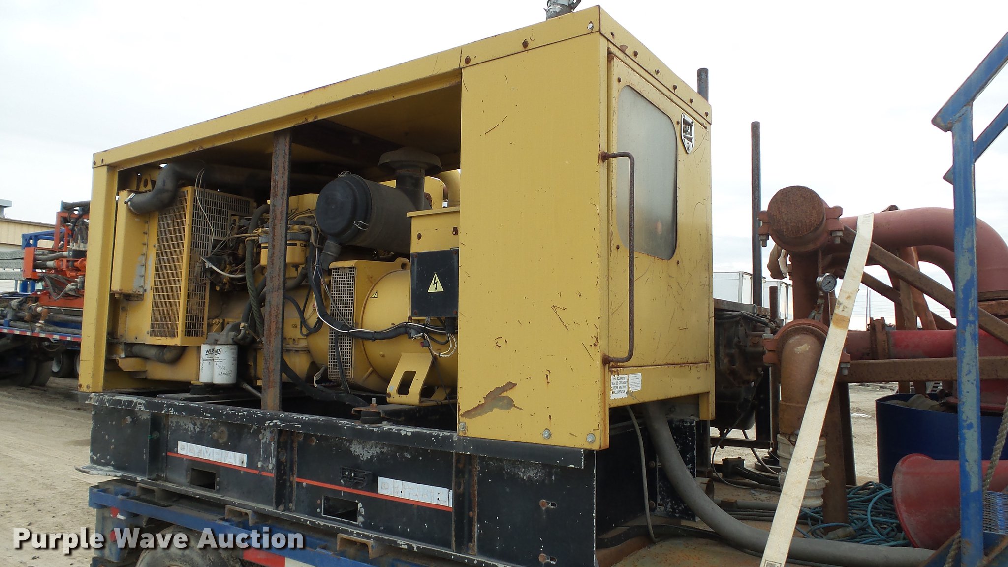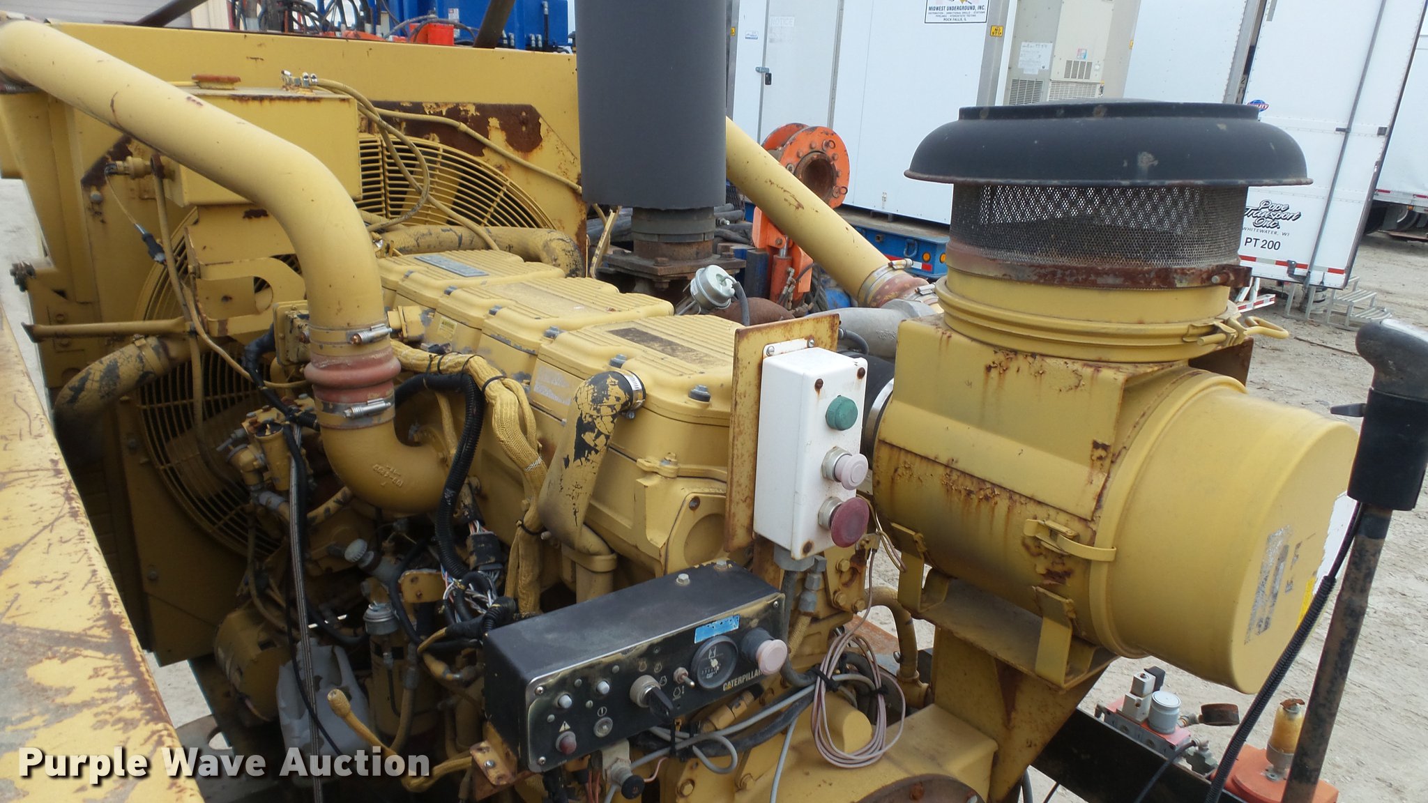Purple Wave is selling a used Directional Boring Unit in Illinois. This item is a American Augers MP-400 mud pump with the following: 9,046 hours on meter, Caterpillar C15 14.6L six cylinder turbo diesel engine, 450 HP, Ether start aid, Block heater, 2000 Olympian D125P2 generator, 11,138 hours on meter, Perkins six cylinder diesel engine, Serial V721382F, 125 kW, Three phase, 480/277V, Serial F4374H/001, Unknown operating condition, Oil pan cracked, No oil in engine, Batteries dead, (3) shakers, 8'L x 4'W, Screens, (3) electric motors, 30 HP, (3) 6 x 5 x 14 water pumps, Dual fuel tanks on trailer, 2001 Phelan FSDW-80K-FG-T1 trailer, 49' overall length, 38'L x 102"W main deck, 11'L x 102"W top deck, 40 ton capacity, Tandem spread axle, Air suspension, Air brakes, 255/70R27.5 tires, GVWR 92,740 lbs, GAWR 20,280 lbs, Serial MP400460301, Unit# 2762