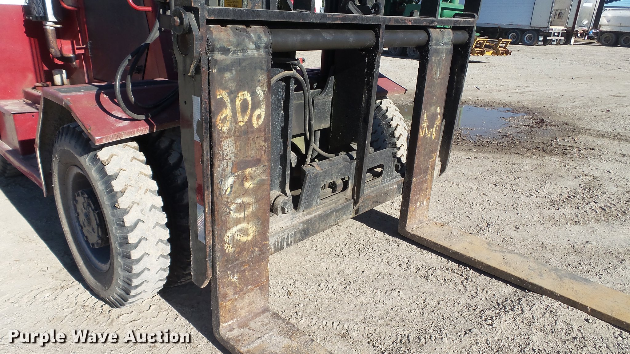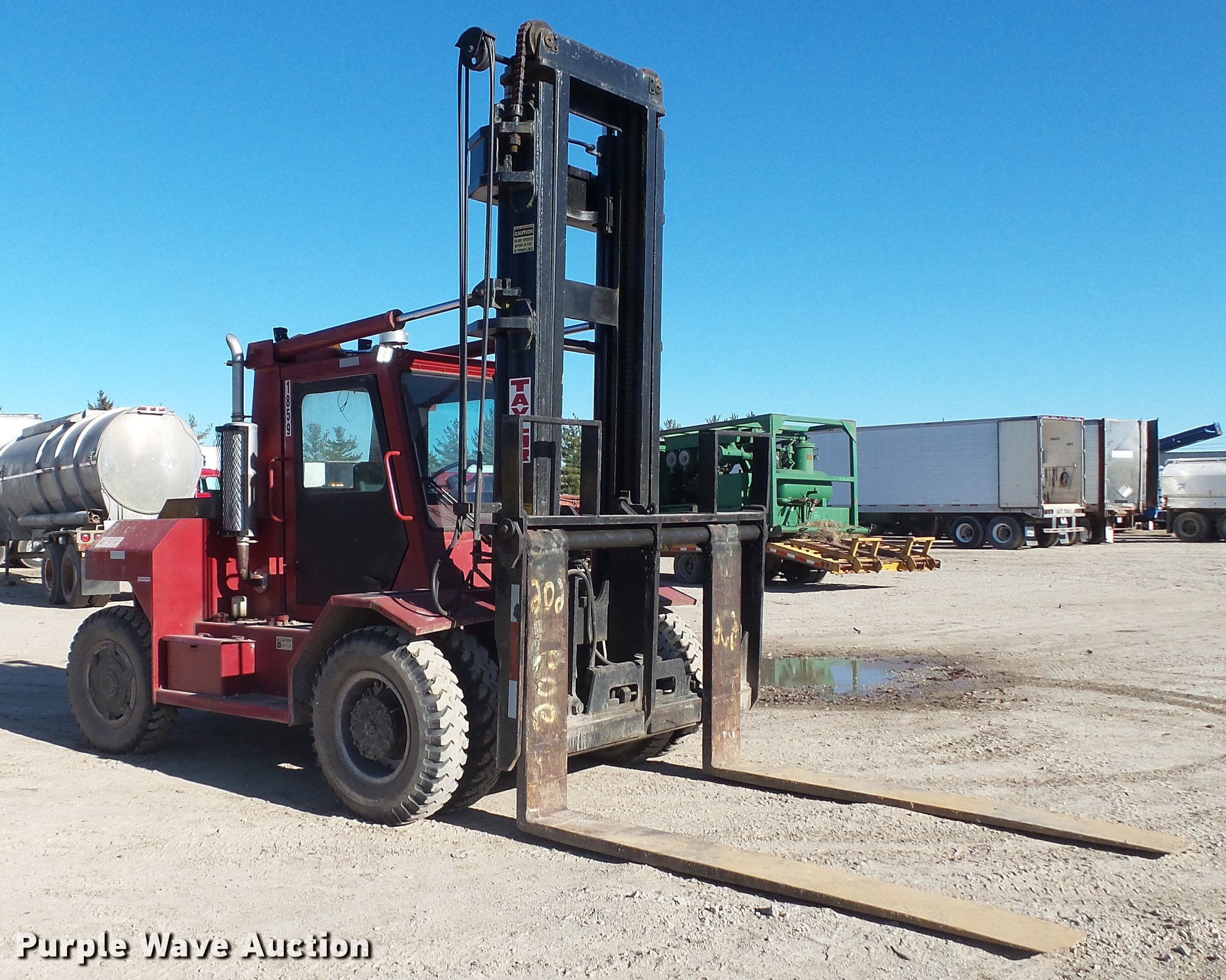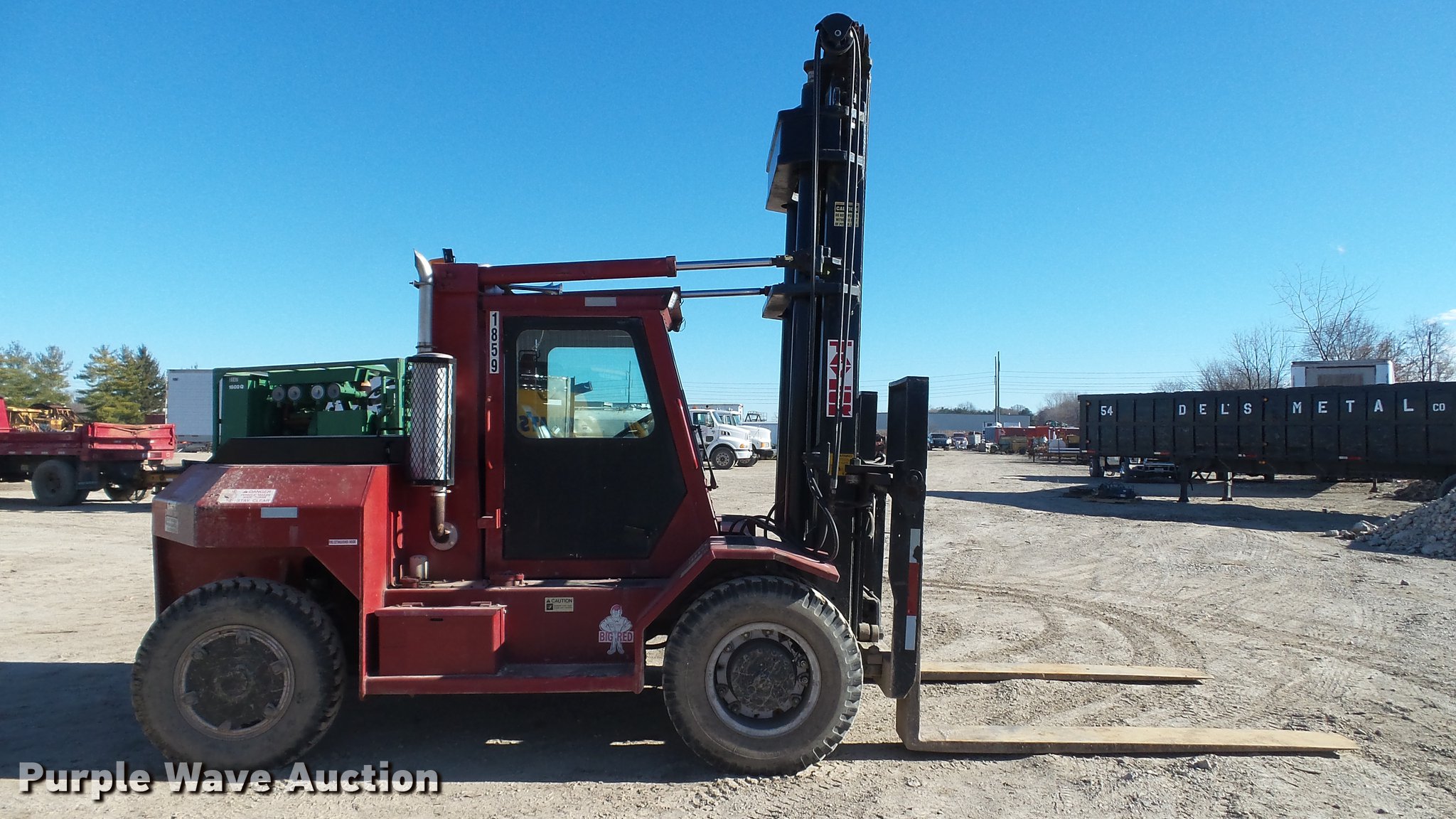 Purple Wave is selling a used Strt. Mast Rough Terr. Forklift in Illinois. This item is a Taylor TE-160S forklift with the following: 3,981 hours on meter, Hours may vary, still in use, Cummins six cylinder diesel engine, Powershift transmission, 3F-3R gears, EROPS, Work lights, Wiper, Backup alarm, 16,000 lbs max lift capacity, 180" max lift height, Two stage mast, Side shift, Mast tilt, 94"L forks, Air brakes, 9.00-20 tires, Serial S-H1-22880, Unit# 1859