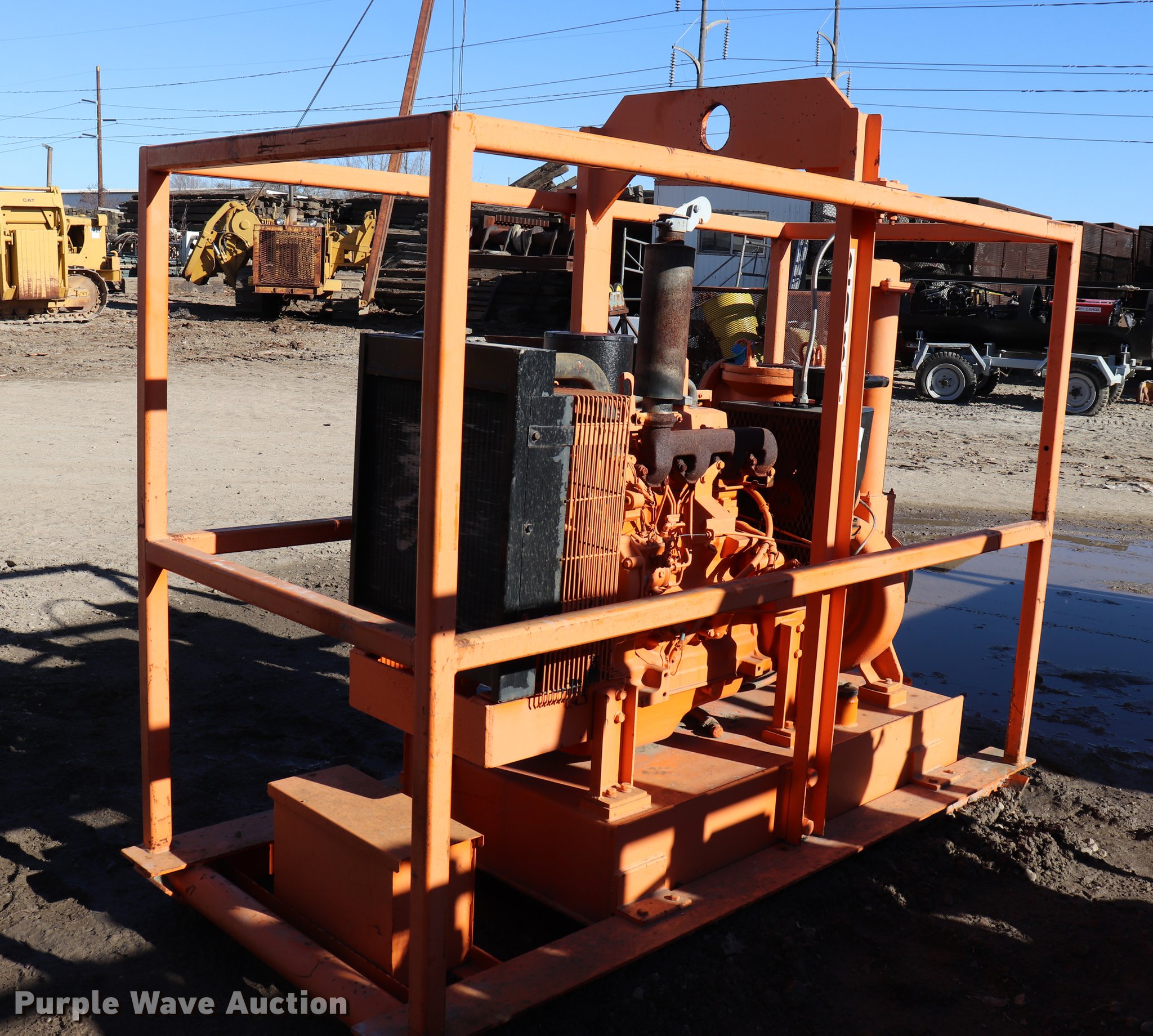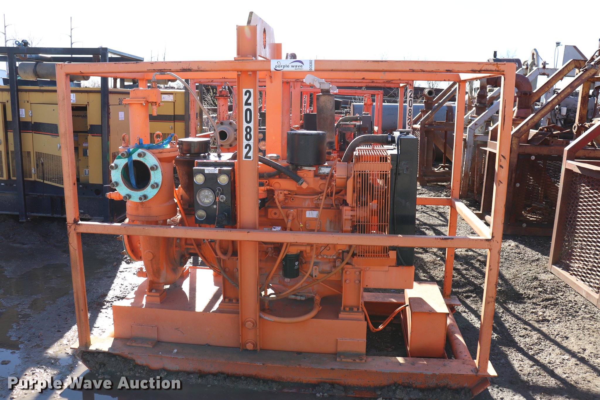 Purple Wave is selling a used Pump in Illinois. This item is a Godwin ditch pump with the following: John Deere four cylinder diesel engine, Type CD150M, Fuel tank, Top lift point, 88" x 41" x 76", Skid mounted, Unknown operating condition, Serial 0852529/27, Unit# 2082