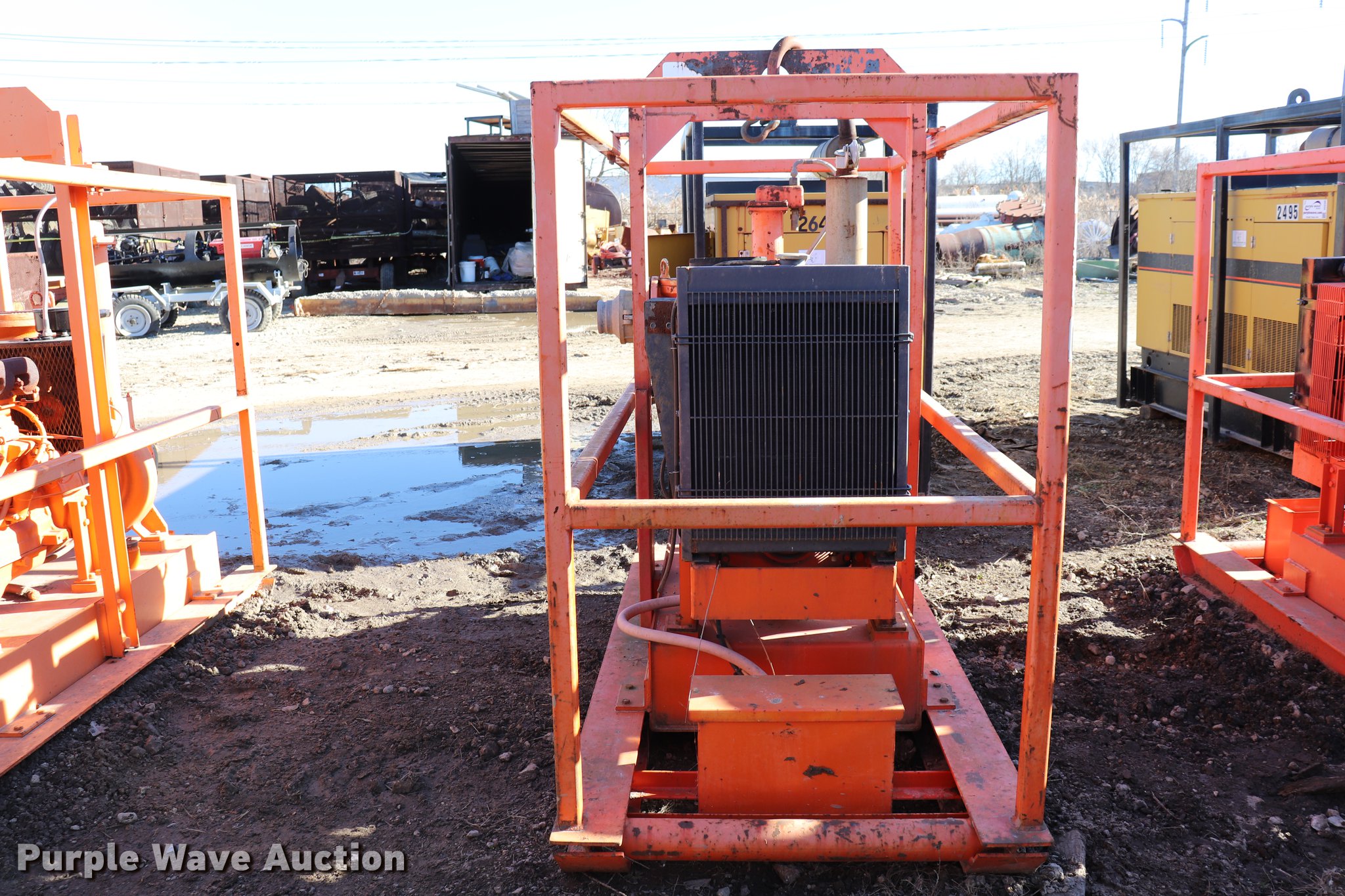 Godwin ditch pump. John Deere four cylinder diesel engine Serial PE40450742035, Type CD150M, Fuel tank, Top lift point, 88" x 41" x 76", Skid mounted, Unknown operating condition, Serial 0852889/07, Unit# 2083-0. Midwest Underground - Open inspection Dec. 28. 3150 5th Ave. East Moline, IL 61244