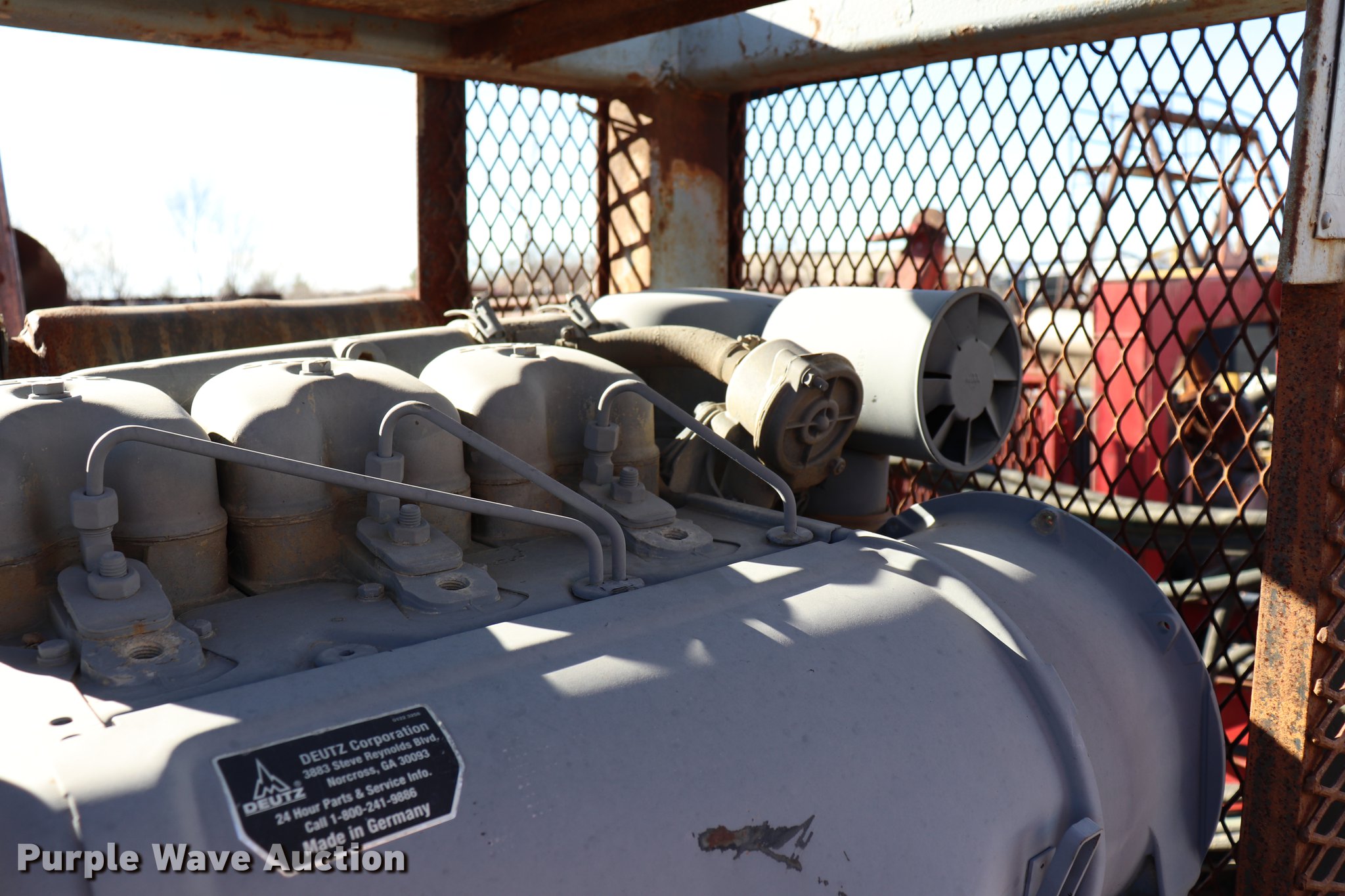 Rockford ditch pump. 805 hours on meter, Deutz three cylinder diesel engine, Ladder, Fuel tank, Top lift point, 86" x 29" x 96", Skid mounted, Unknown operating condition, Serial 1R3413. Midwest Underground - Open inspection Dec. 28. 3150 5th Ave. East Moline, IL 61244