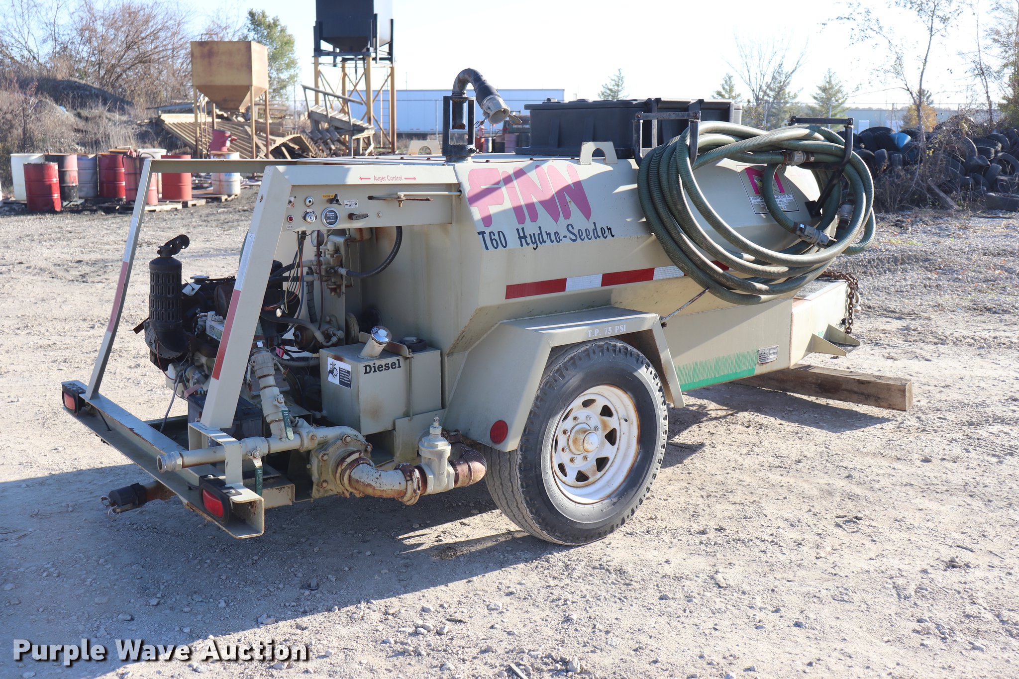 Purple Wave is selling a used Hydro Seeder/ Mulcher in Illinois. This item is a Finn T60-TD Hydroseeder trailer with the following: 443 hours on meter, 14'L x 70"W, Three cylinder engine, Toolbox, Quick connector hose, Pintle hitch, Single leg landing gear, Electric brakes, 9.50-16.5 tires, Unknown operating condition