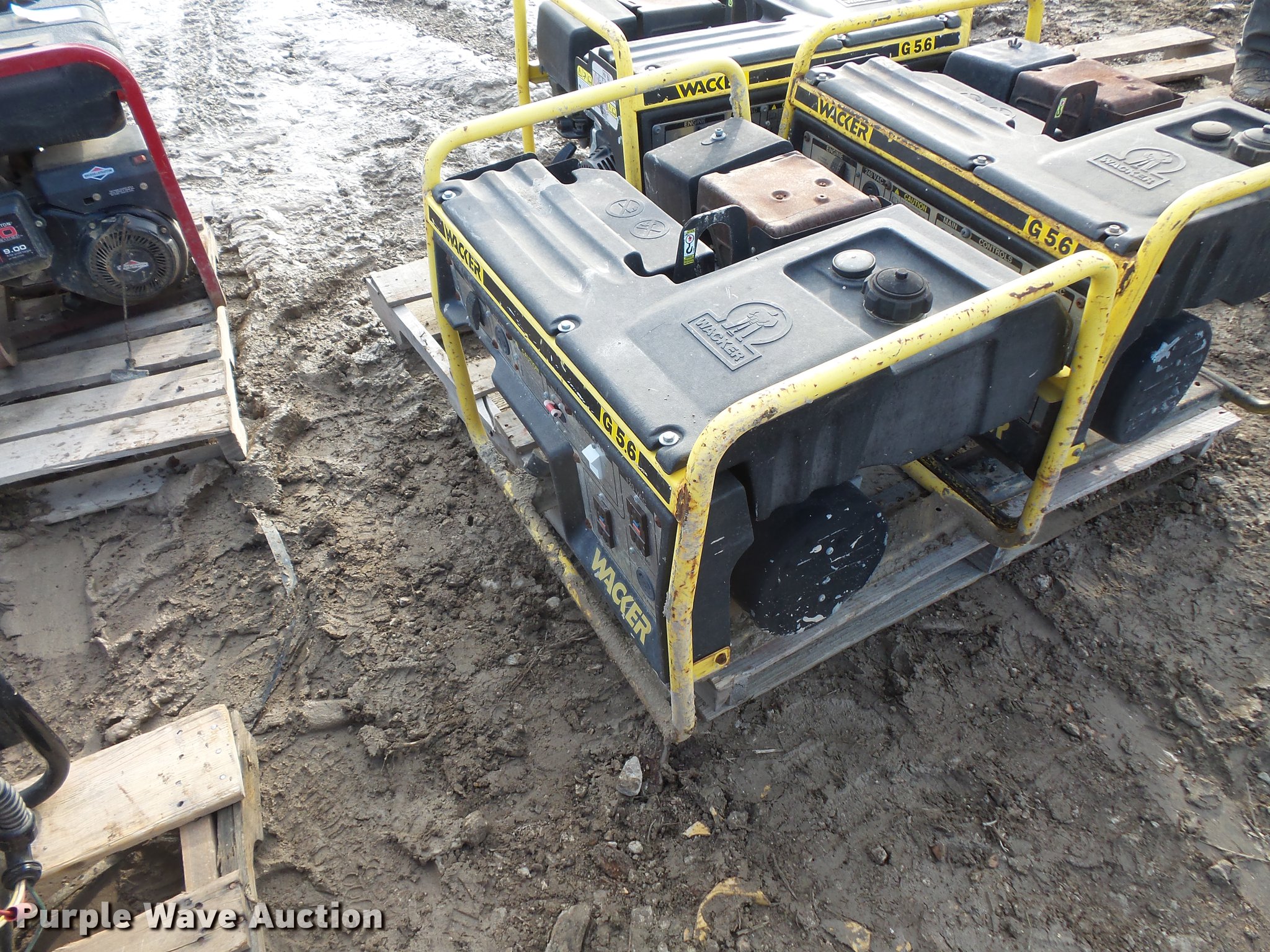 Purple Wave is selling a used Generator Set in Illinois. This item is a (3) Wacker generators with the following: Model G5.6, Honda 11 HP gas engines, Top lift point, Unknown operating condition, Serial 5124902