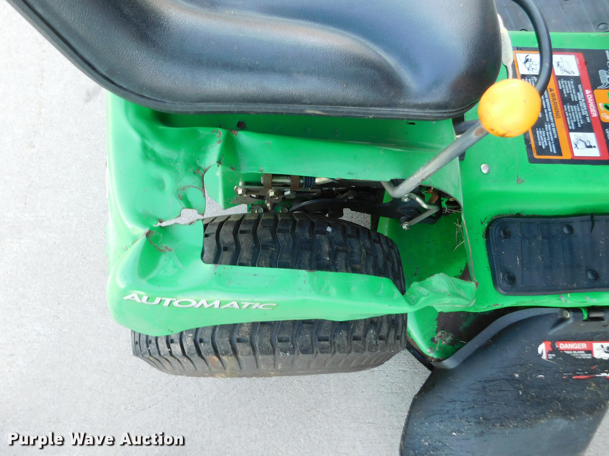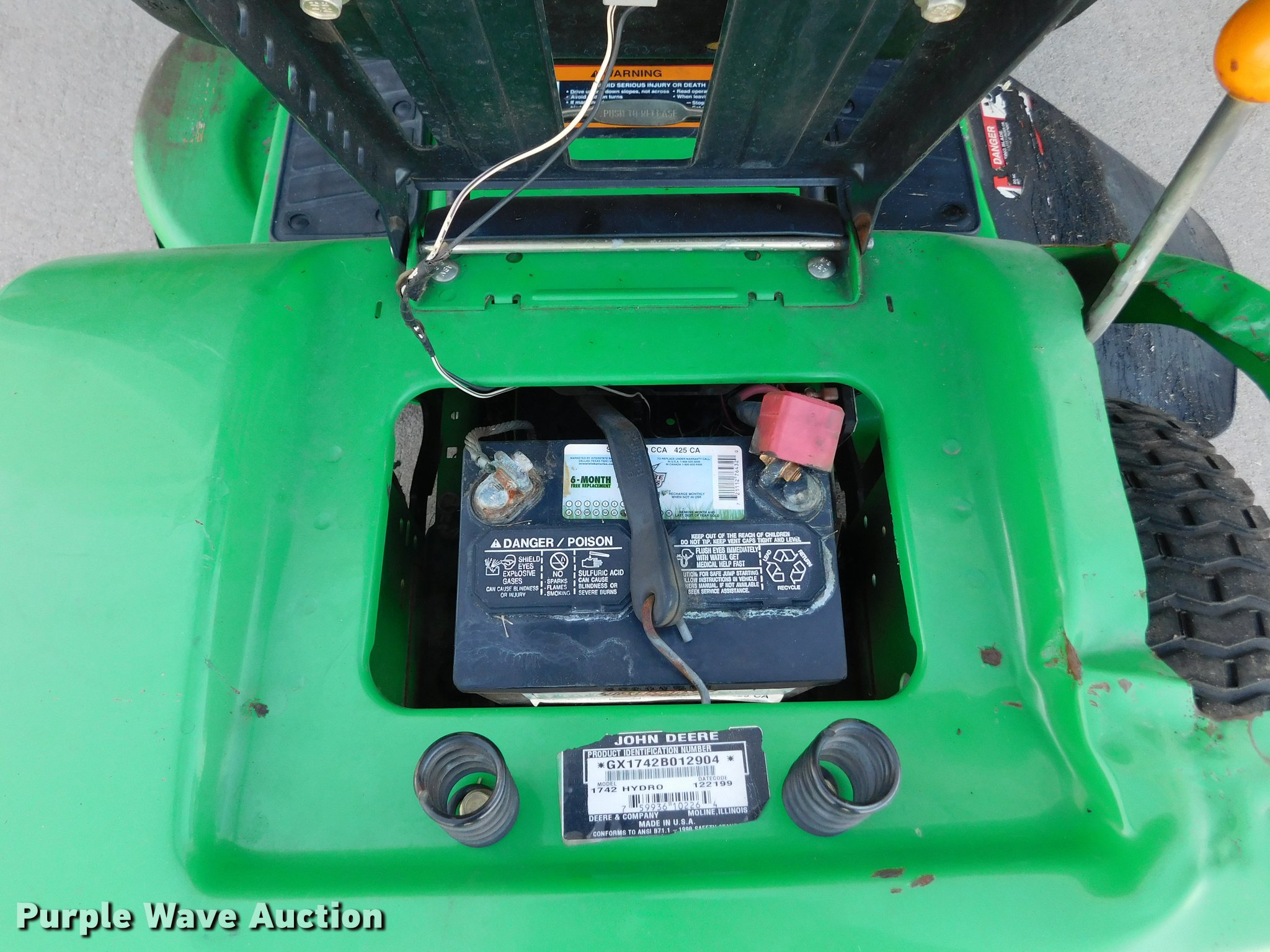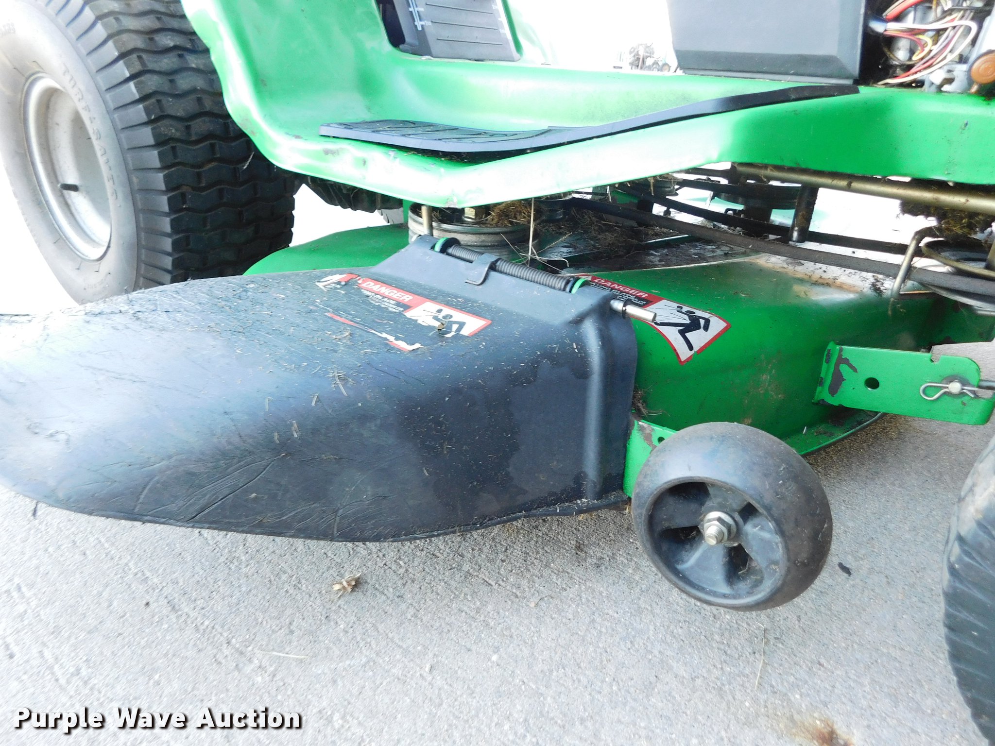 Purple Wave is selling a used Lawn Mower in Kansas. This item is a John Deere Sabre 1742 lawn mower with the following: 42"W cut, Briggs & Stratton single cylinder gas engine, Hydrostatic transmission, 13 x 6.00-6 front tires, 20 x 8.00-8 rear tires, Unknown operating condition, Serial GX1742B012904