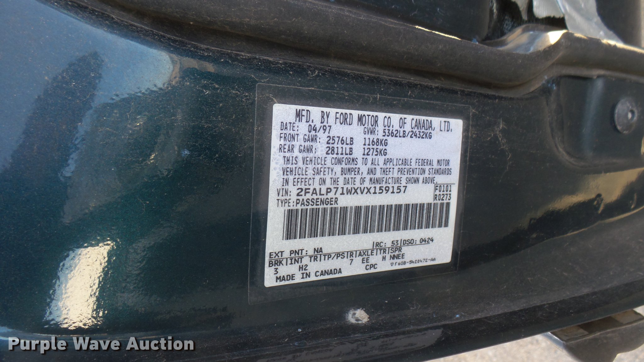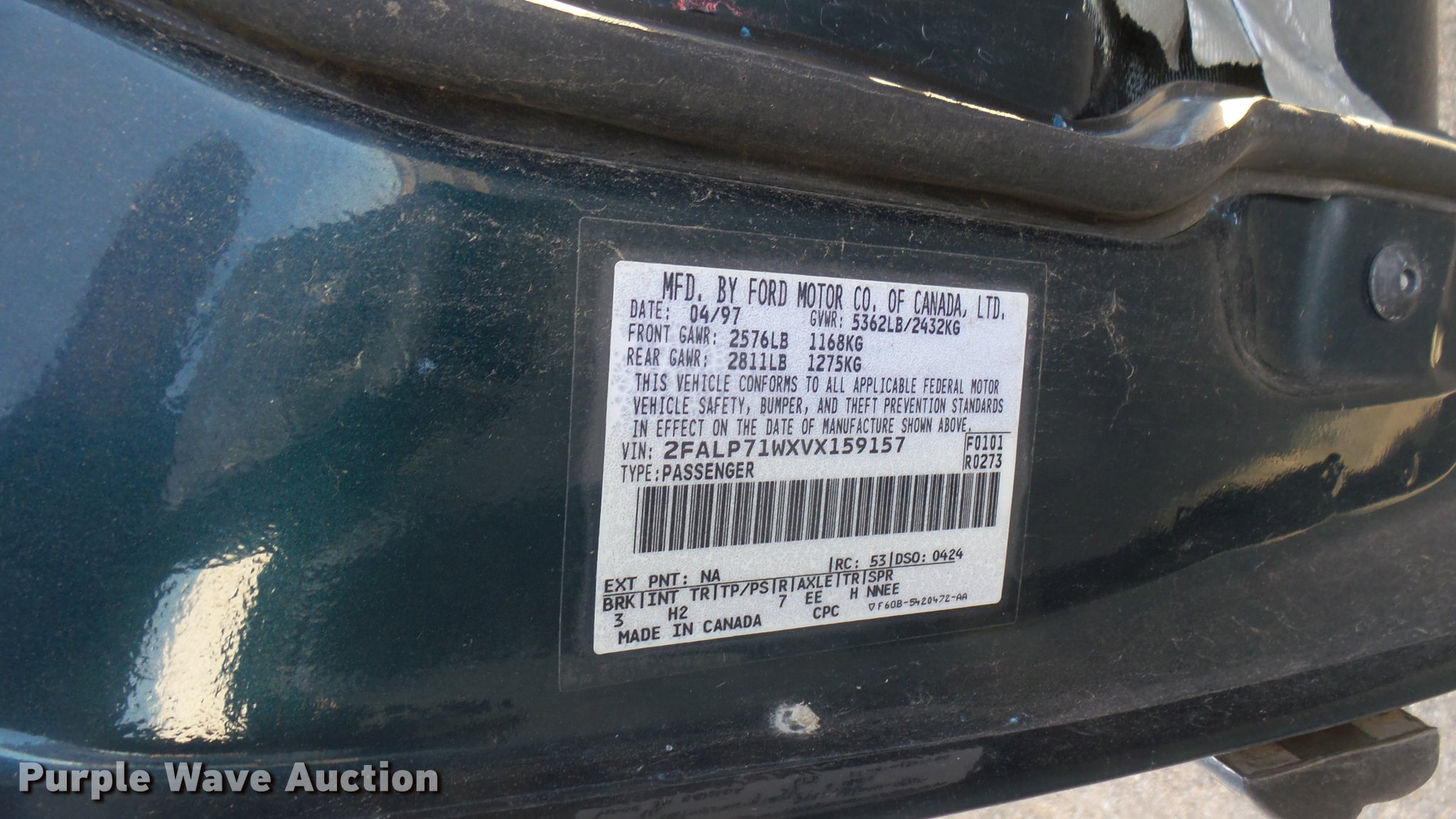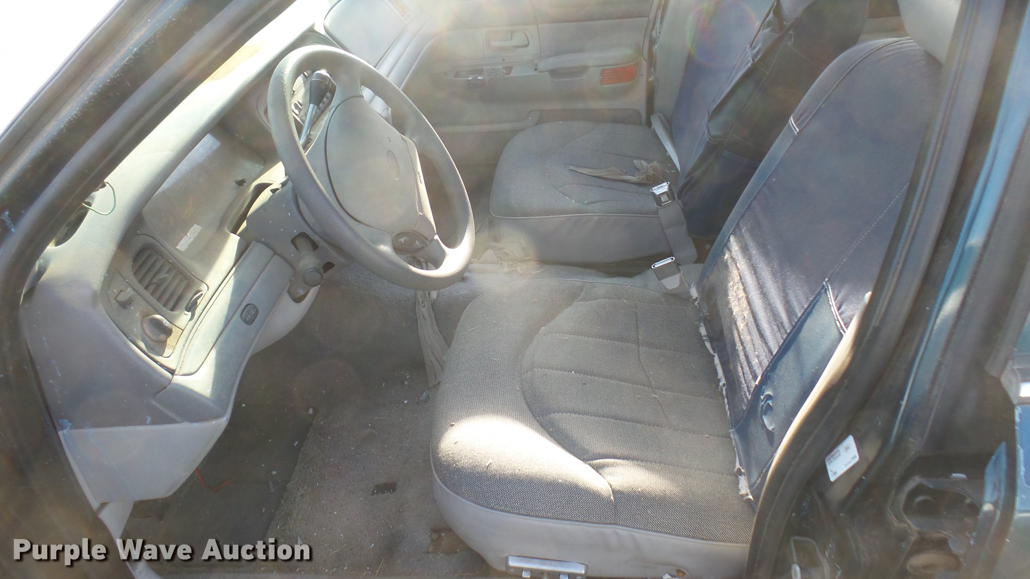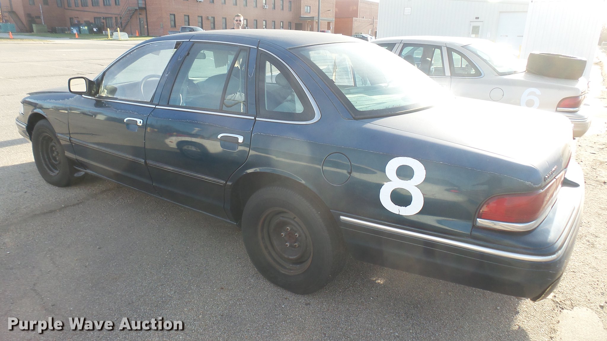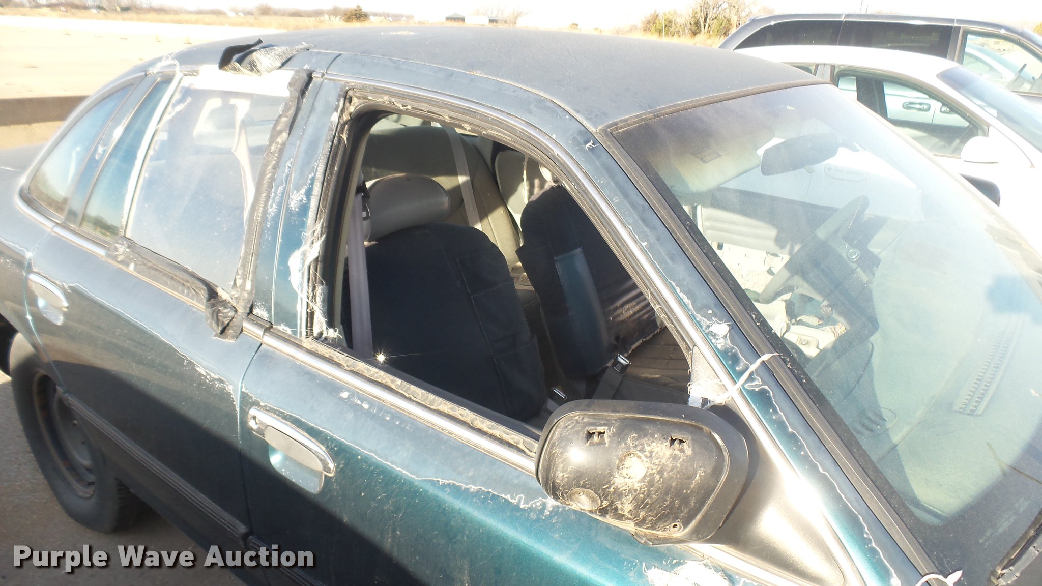 Purple Wave is selling a used Passenger Vehicle in Kansas. This item is a 1997 Ford Crown Victoria police interceptor with the following: 57,601 miles on odometer, 4.6L V8 SOHC 16V gas engine, Automatic transmission, AC and heat, AM/FM, Power windows, locks, and mirrors, Cloth interior, 225/70R15 tires, Dead battery, Window broken, Hood latch broken, Drivers door interior damage