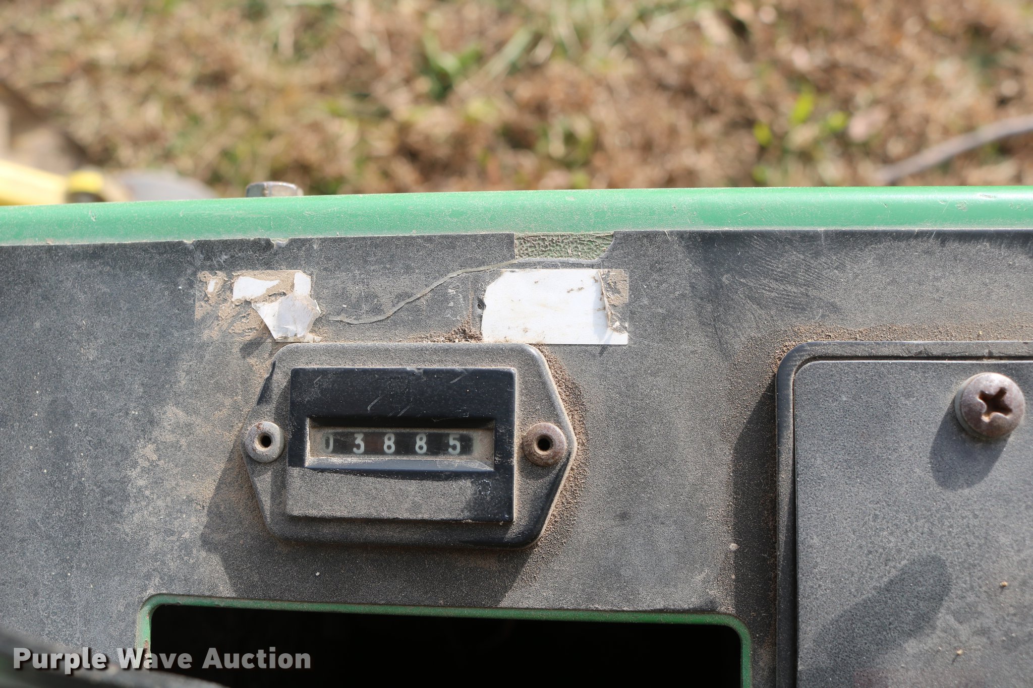 Purple Wave is selling a used Lawn Mower in Kansas. This item is a John Deere F1145 lawn mower with the following: 3,836 hours on meter, Three cylinder diesel engine, Model 3012D002, Serial CH3012D010841, Four wheel drive, Canopy, Dual fuel tank, 23 x 10.50-12 front tires, 18 x 8.50-8 rear tire, 11 x 4.00-5 deck wheels, Oil leaks, Burning water in motor, Canopy cracked, Serial M01145X180313