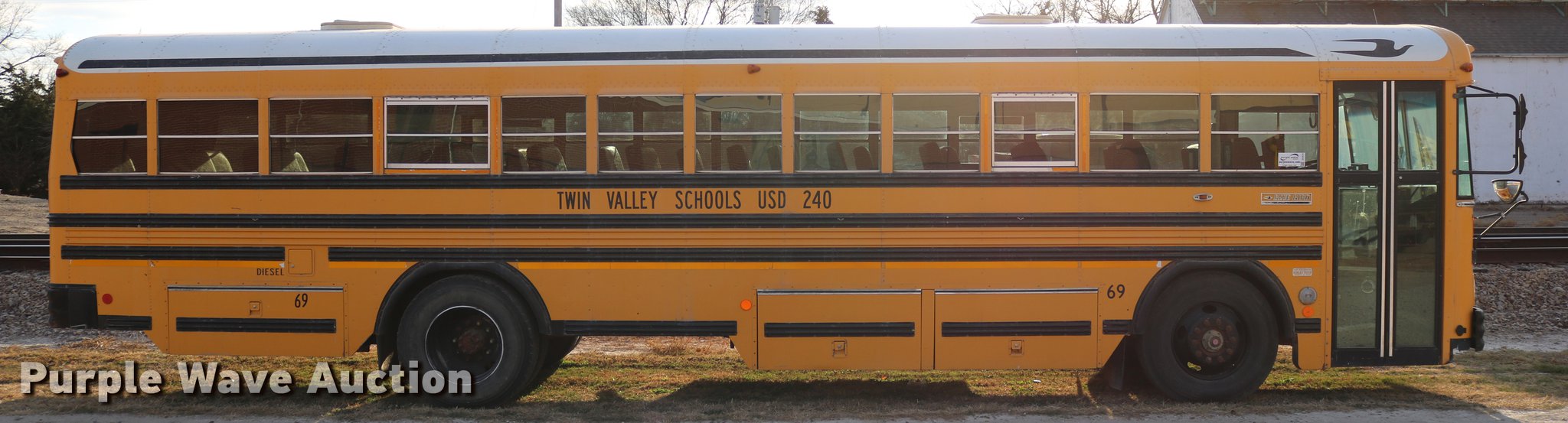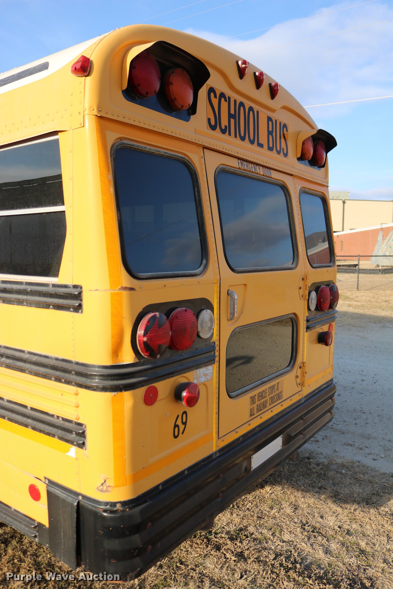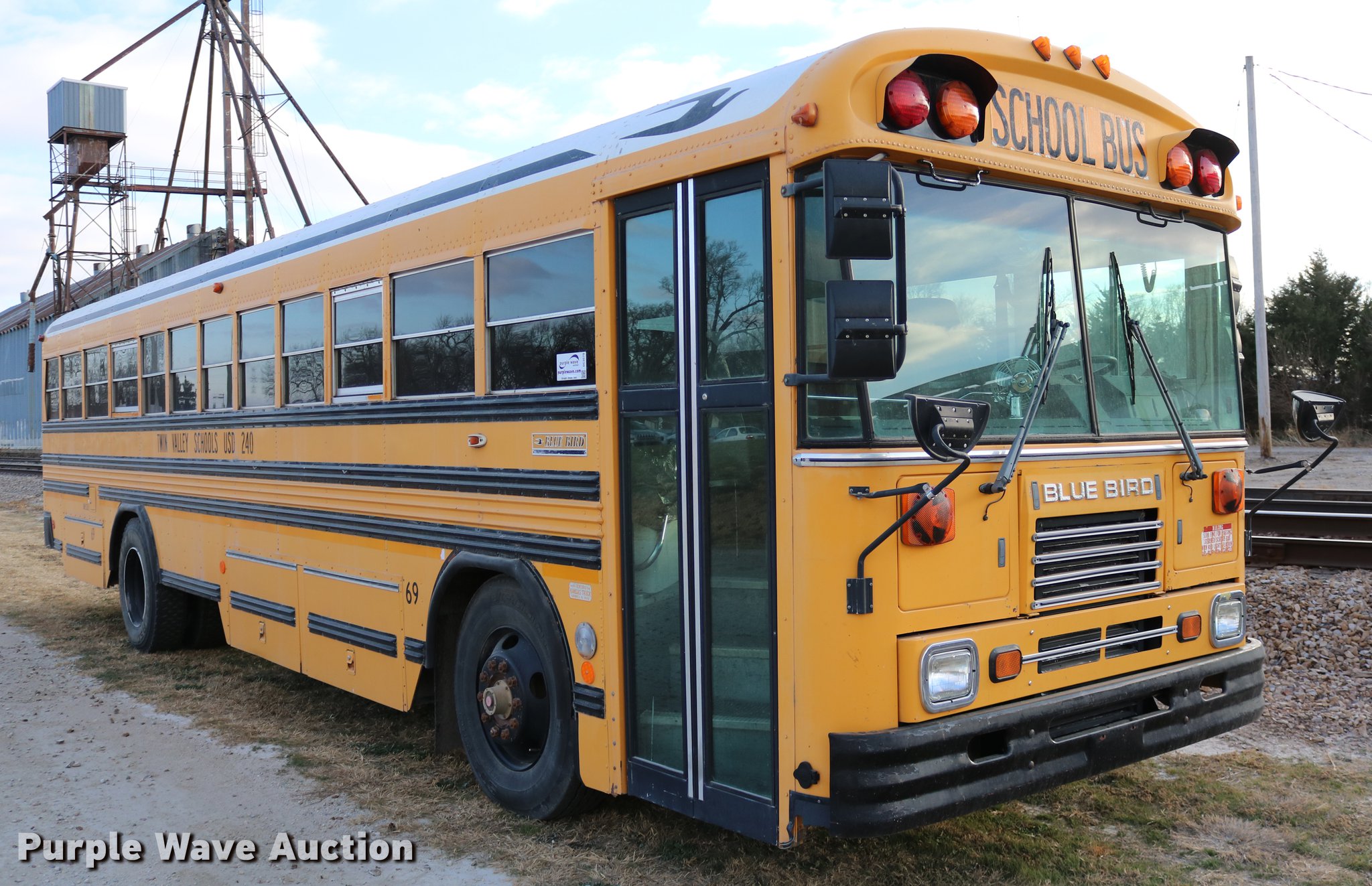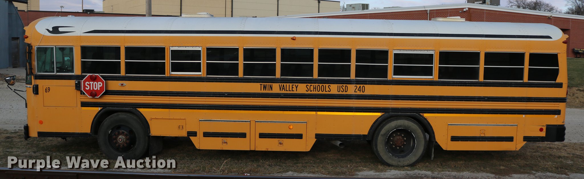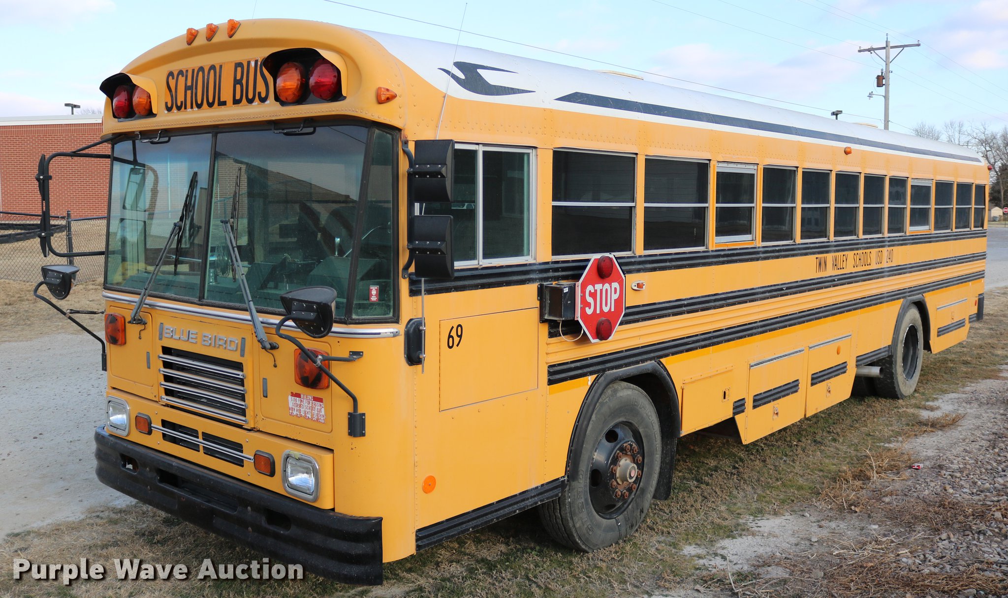 Purple Wave is selling a used Bus in Kansas. This item is a 1999 Blue Bird school bus with the following: 194,821 miles on odometer, Cummins Campaign 0504 six cylinder turbo diesel engine, Automatic transmission, Heat, Cruise, AM/FM, 72 passenger capacity, Ceiling, rear, and side emergency exits, Emergency door alarms, Front and rear tow hooks, Underside luggage storage, Doors do not open, 4:44 rear axle ratio, Spring suspension, Hydraulic brakes, 216" wheelbase, 11R/22.5 tires, Possible battery issues, Electrical issues, Unit# 69
