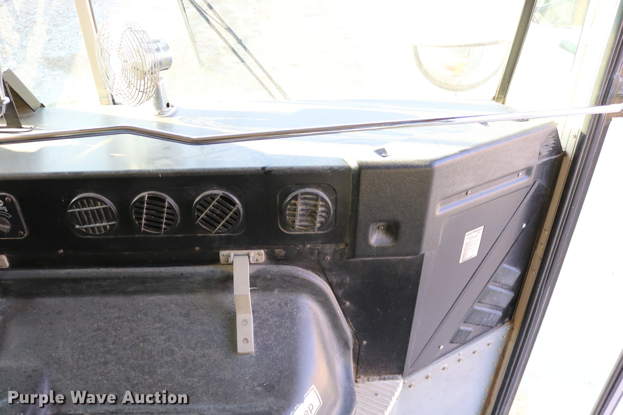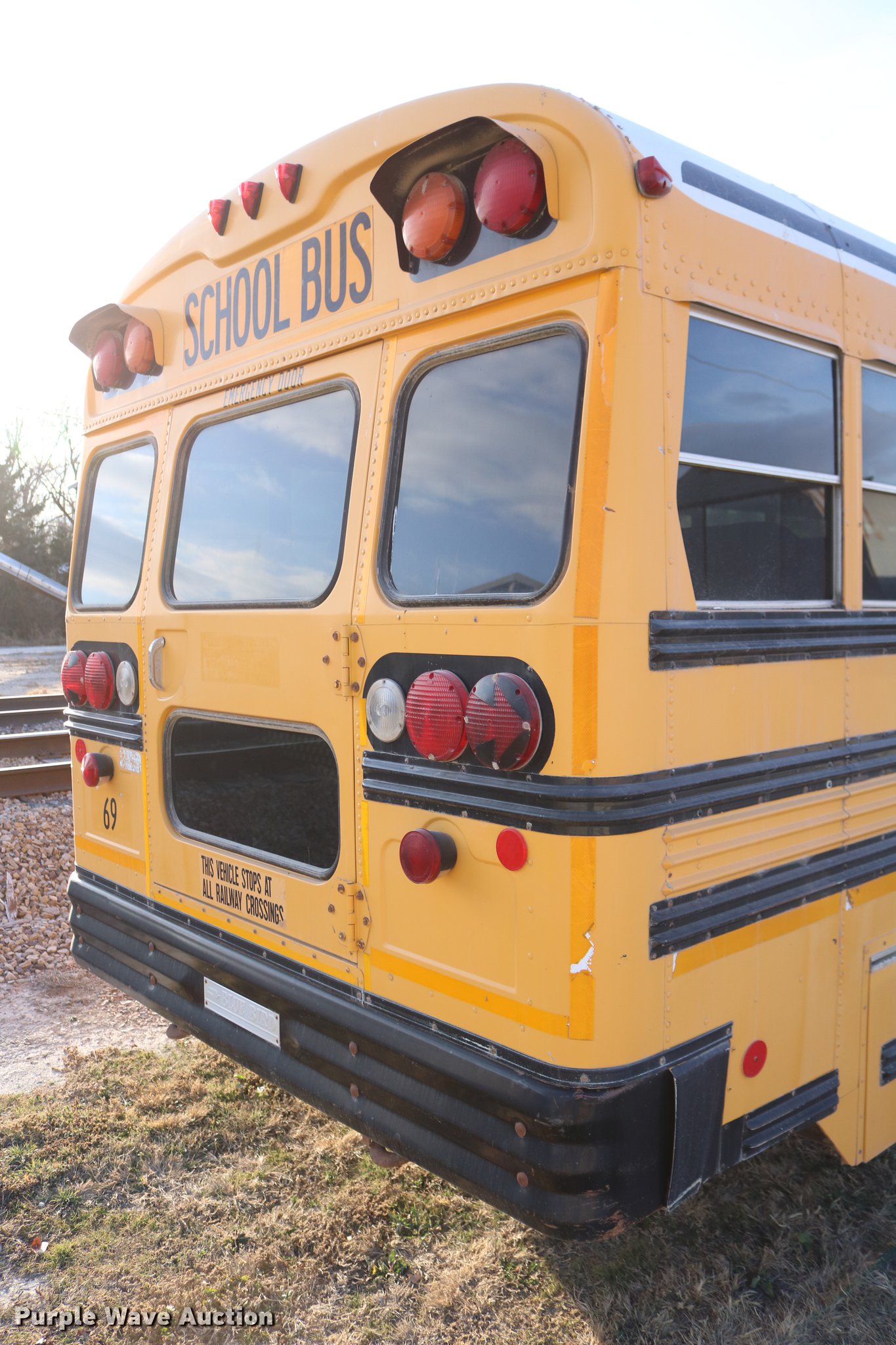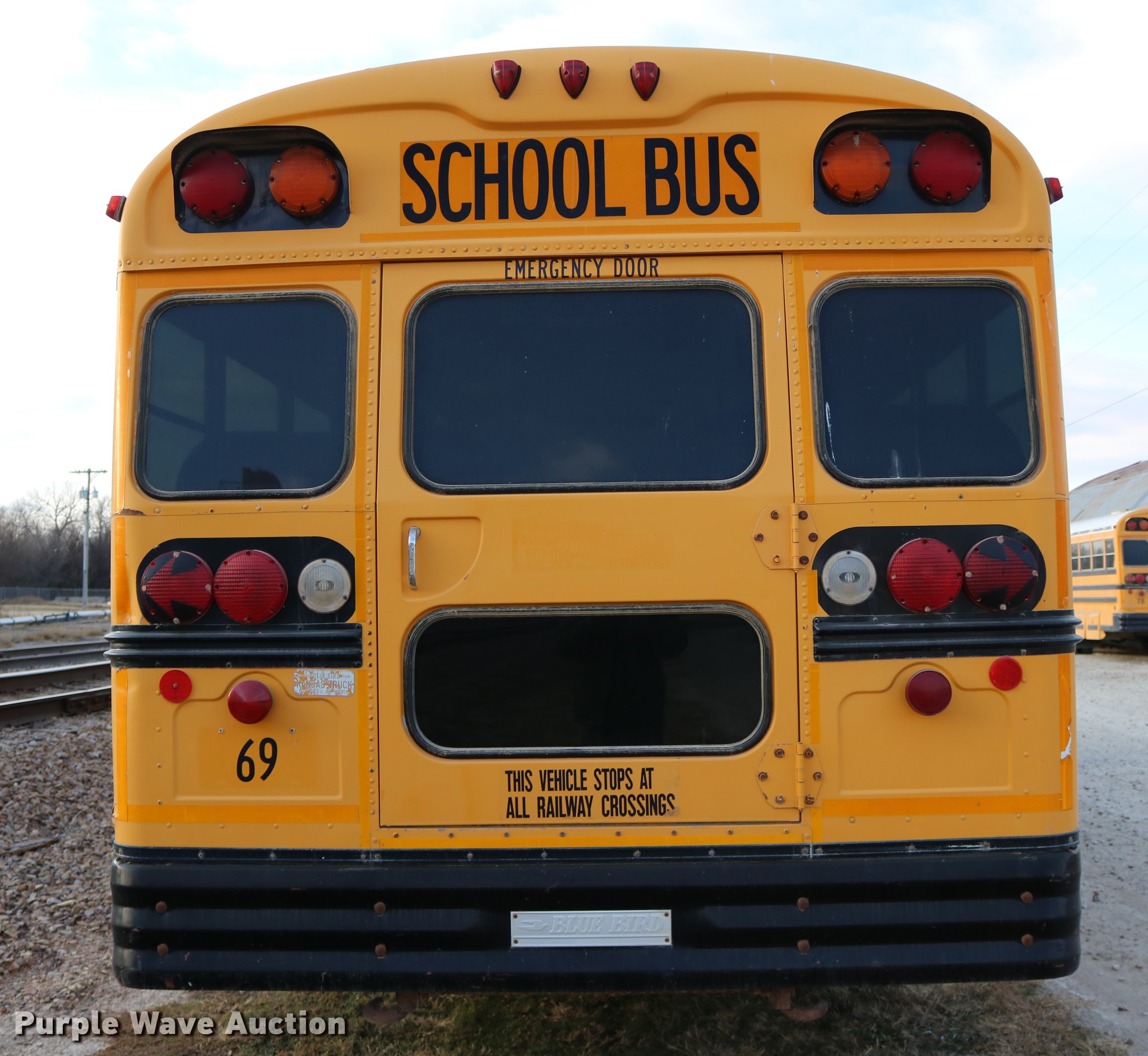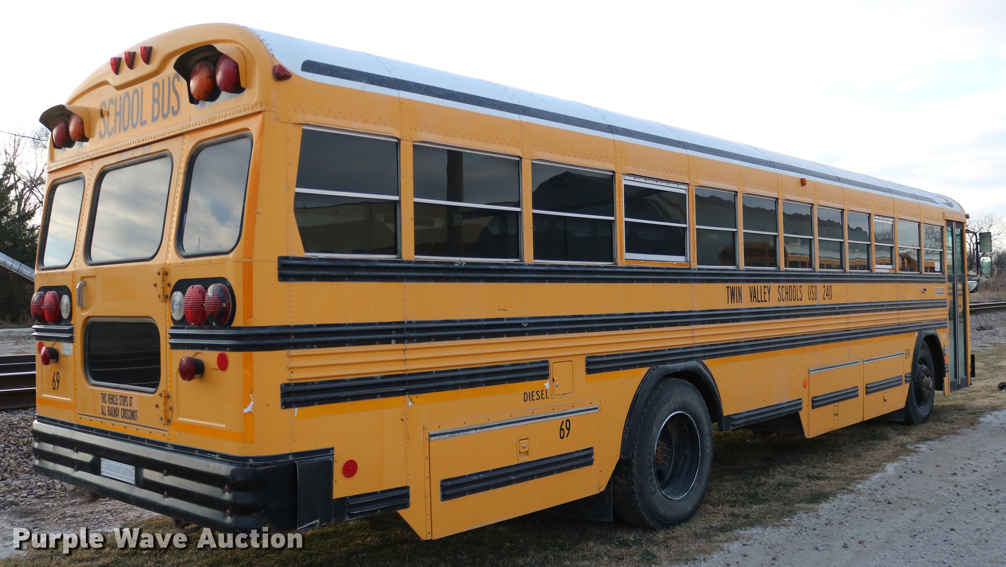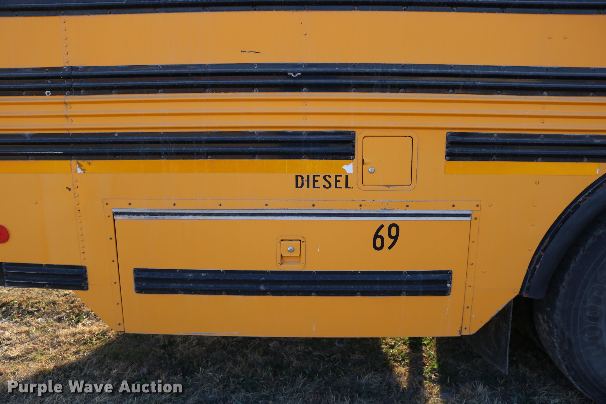 Purple Wave is selling a used Bus in Kansas. This item is a 1999 Blue Bird school bus with the following: 194,821 miles on odometer, Cummins Campaign 0504 six cylinder turbo diesel engine, Automatic transmission, Heat, Cruise, AM/FM, 72 passenger capacity, Ceiling, rear, and side emergency exits, Emergency door alarms, Front and rear tow hooks, Underside luggage storage, Doors do not open, 4:44 rear axle ratio, Spring suspension, Hydraulic brakes, 216" wheelbase, 11R/22.5 tires, Possible battery issues, Electrical issues, Unit# 69