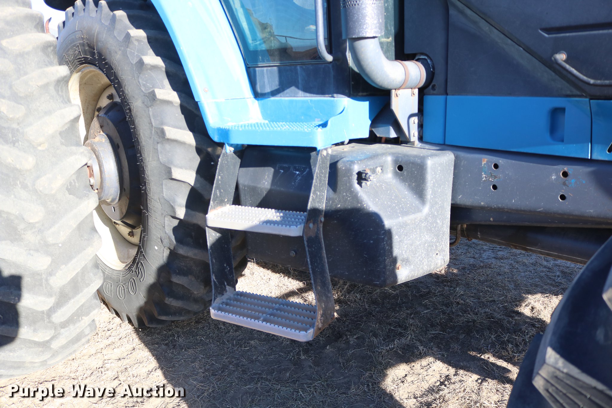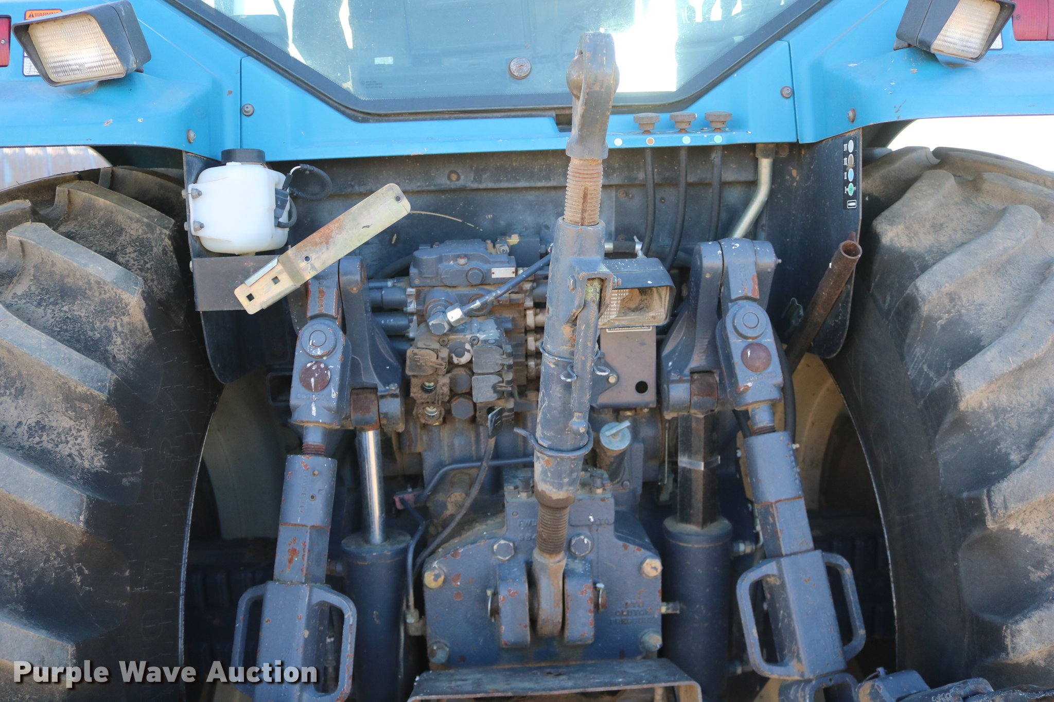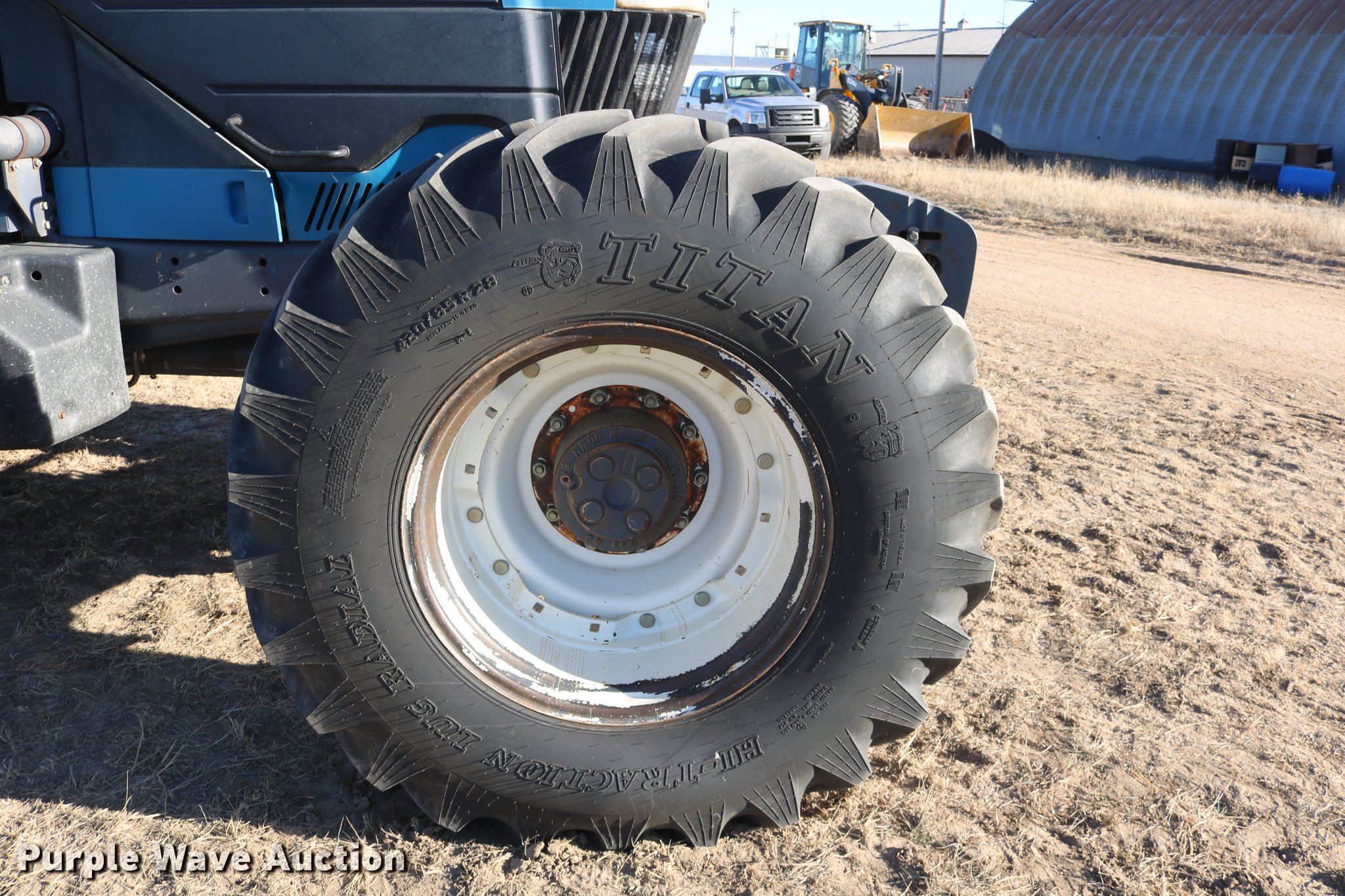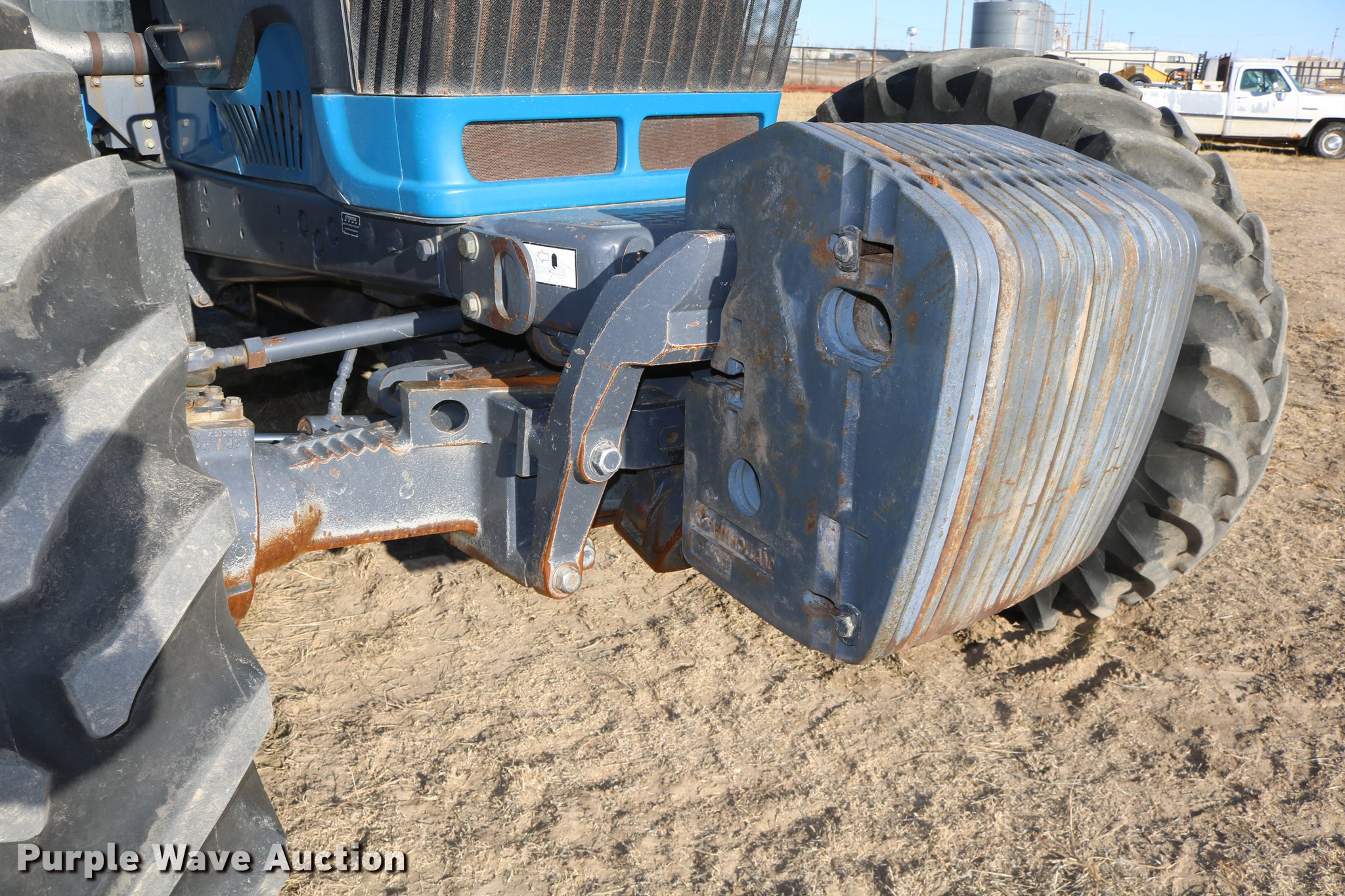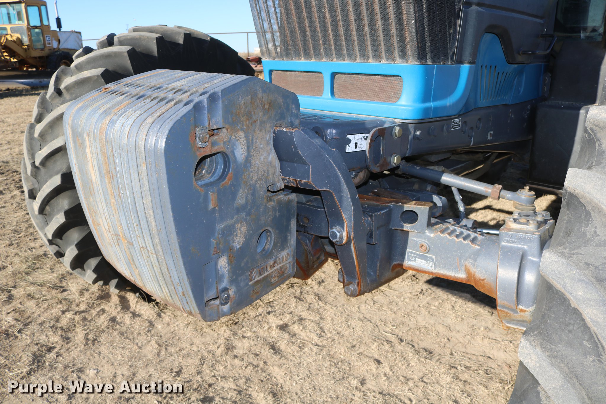 Purple Wave is selling a used Tractor in Kansas. This item is a 1994 Ford 8770 MFWD tractor with the following: 7,314 hours on meter, Ford six cylinder turbo diesel engine, Powershift transmission, 16F-11R gears, Differential lock, AC and heat, AM/FM, Air suspension seat, Tilt steering wheel, Block heater, Three point, Top link, 1000 PTO, Seven pin outlet, Super steer front end, (3) rear hydraulic remote sets, (17) suitcase weights, 420/85R28 front tires, 480/80R42 dual rear tires, Outside dual tire cracked, Serial D402704FORD8770, Unit# 77