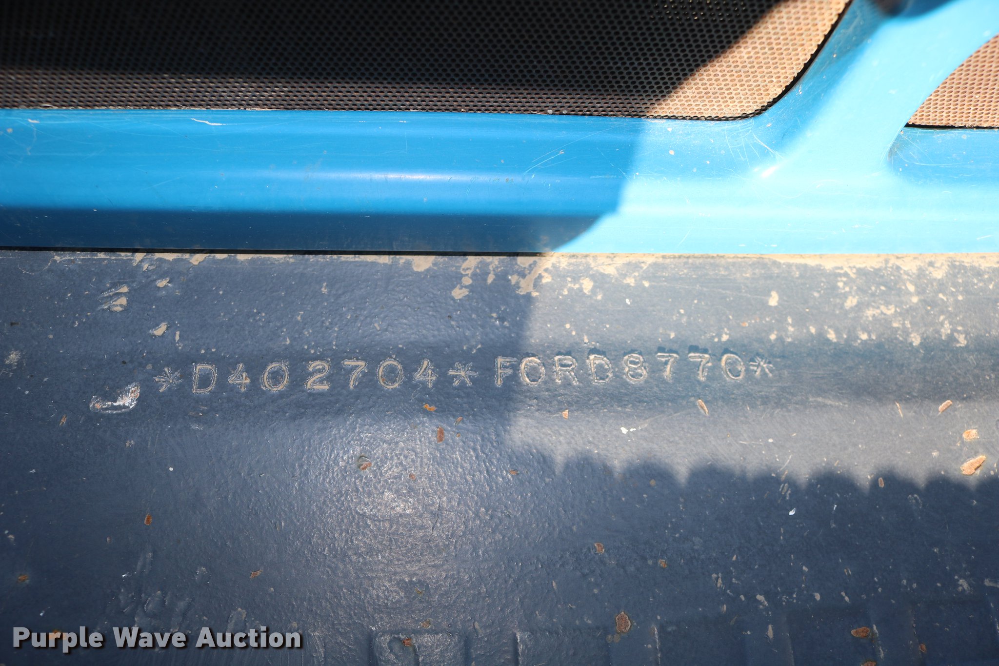 1994 Ford 8770 MFWD tractor. 7,314 hours on meter, Ford six cylinder turbo diesel engine, Powershift transmission 16F-11R gears, Differential lock, AC and heat, AM/FM, Air suspension seat, Tilt steering wheel, Block heater, Three point Top link, 1000 PTO, Seven pin outlet, Super steer front end, (3) rear hydraulic remote sets, (17) suitcase weights, 420/85R28 front tires, 480/80R42 dual rear tires, Outside dual tire cracked, Serial D402704FORD8770, Unit# 77. View repairs. 24084 40 Hwy. Wakeeney, KS 67672