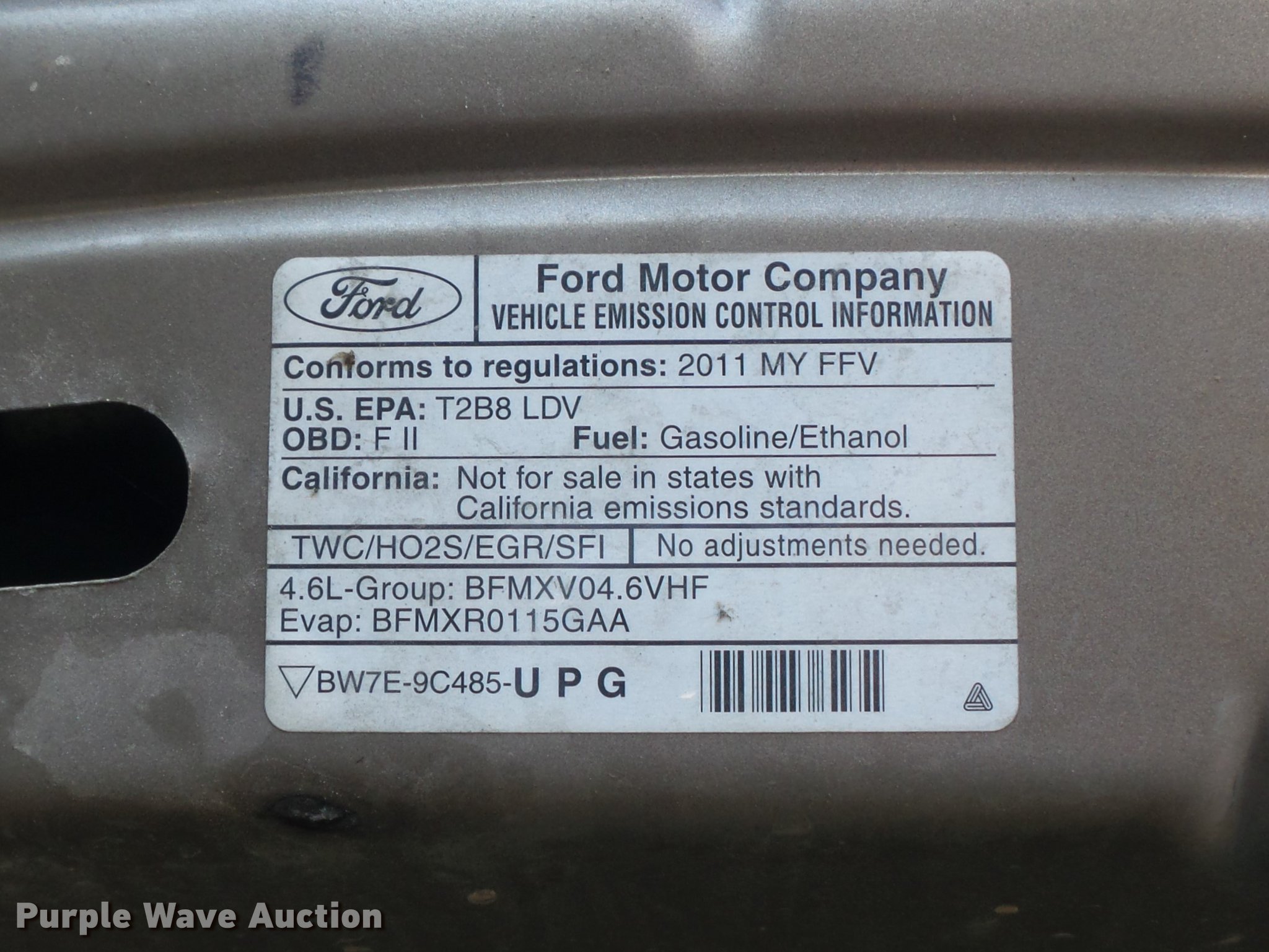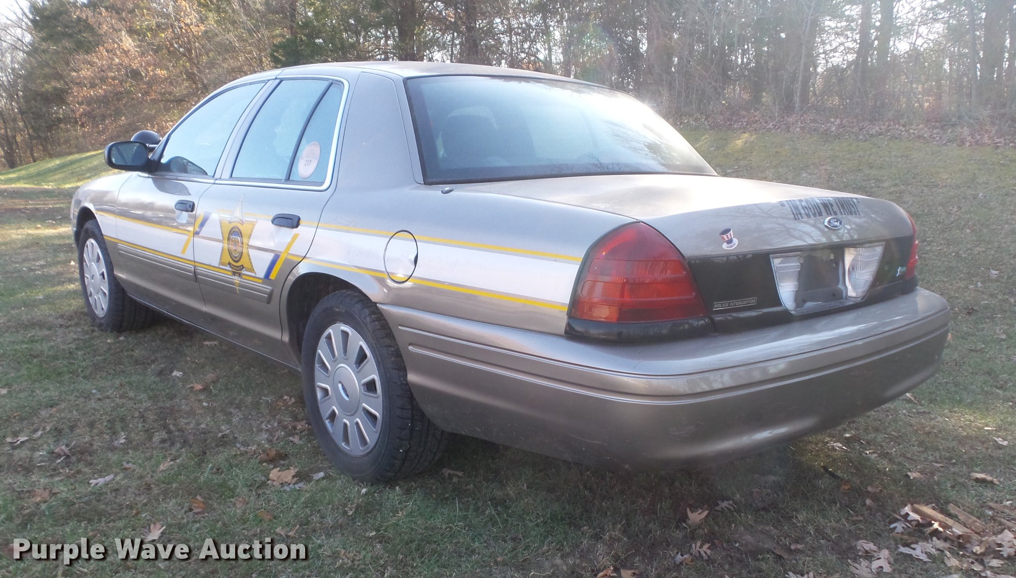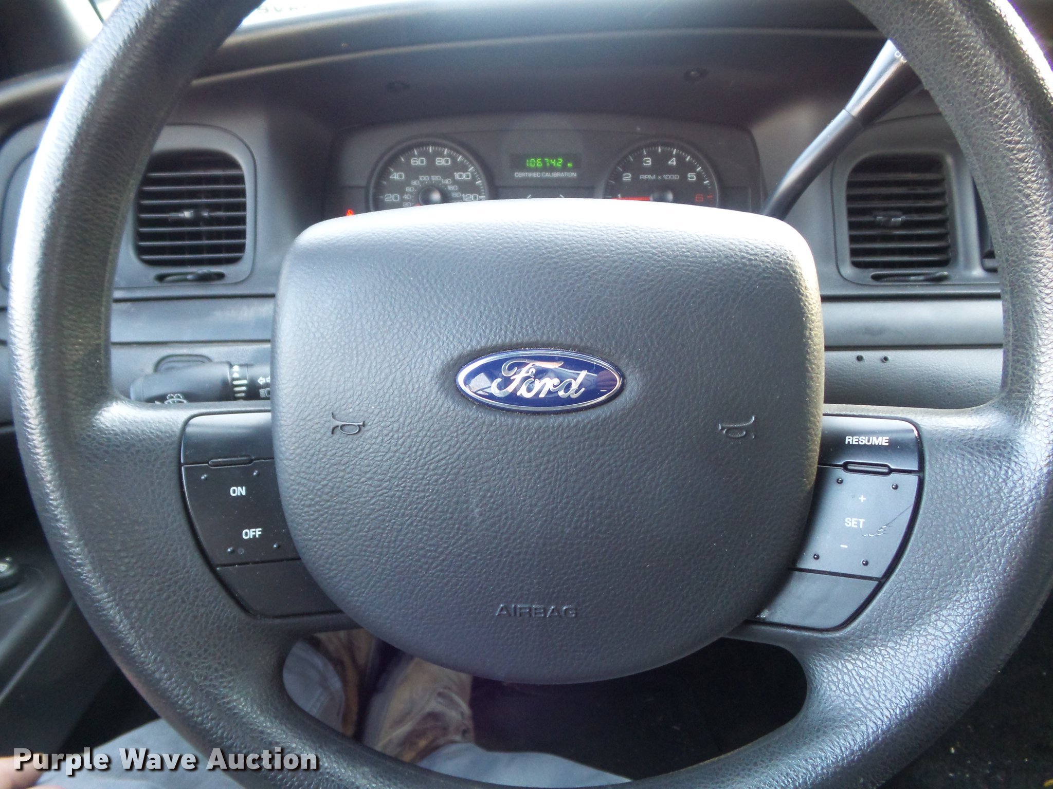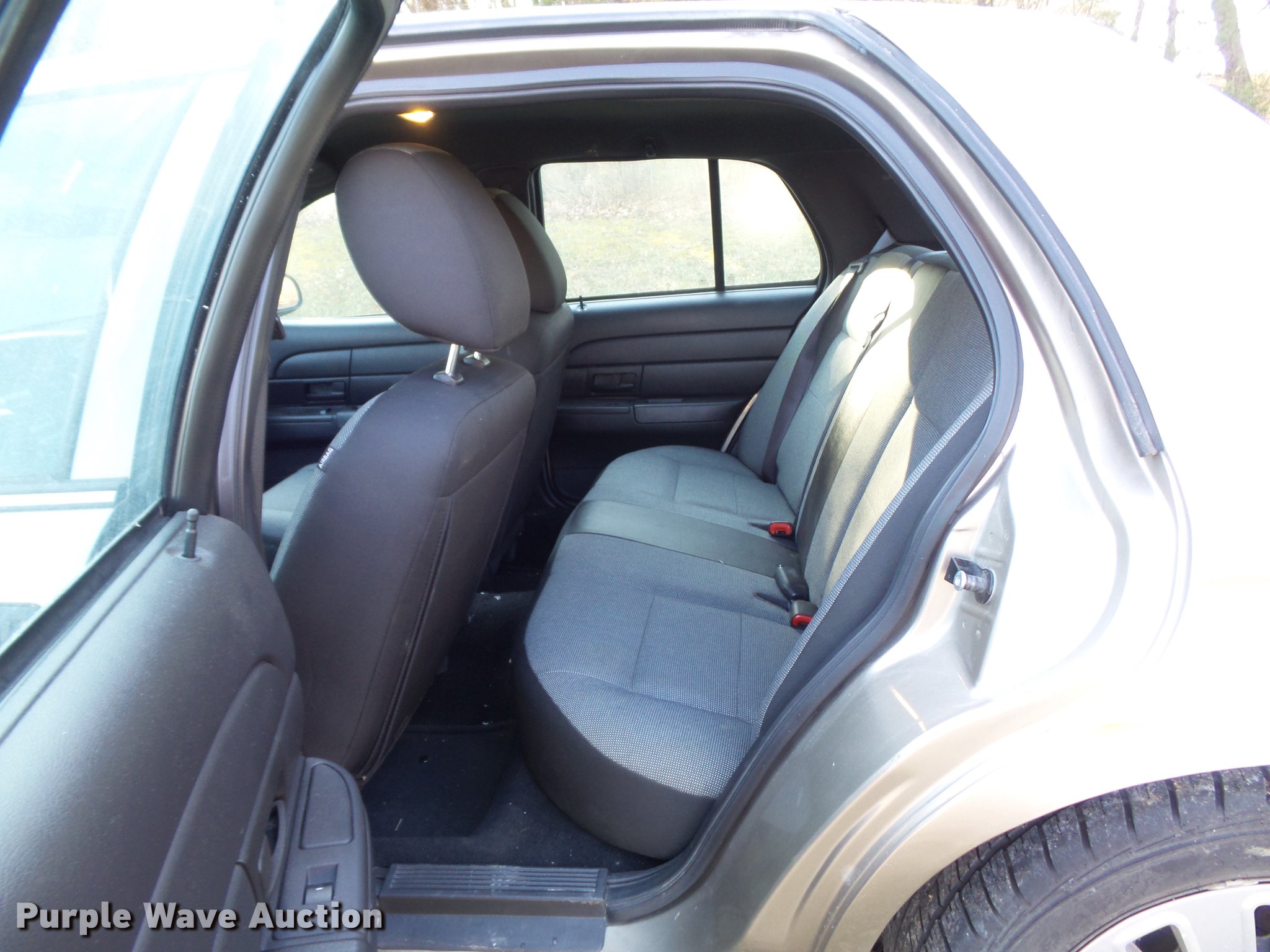 Purple Wave is selling a used Passenger Vehicle in Missouri. This item is a 2011 Ford Crown Victoria Police Interceptor with the following: 106,742 miles on odometer, 4.6L V8 SOHC 16V FFV, Automatic transmission, AC and heat, Tilt, Cruise, AM/FM/CD, Power windows, locks, and mirrors, Cloth interior, P235/55R17 tires, Windshield chipped