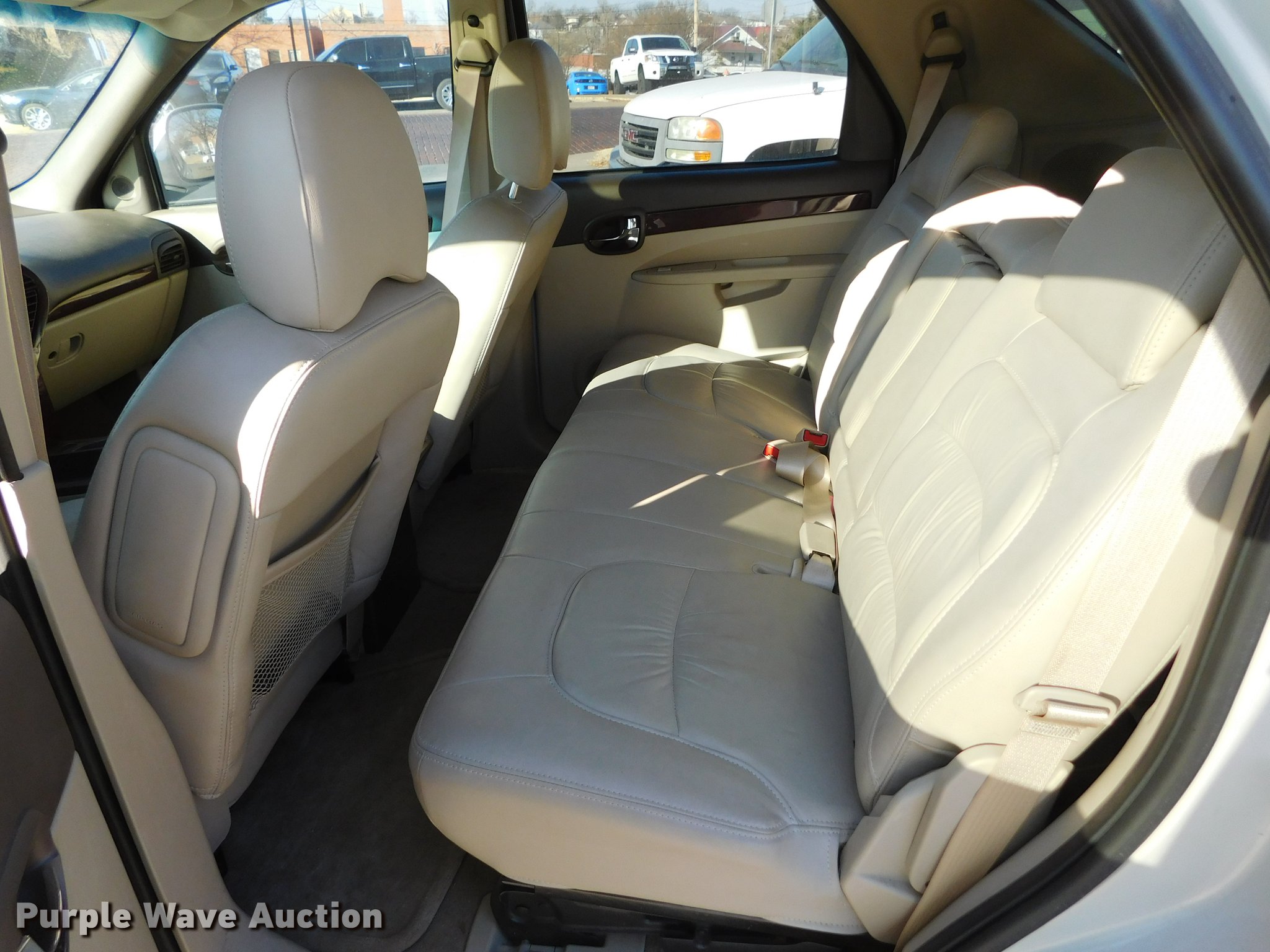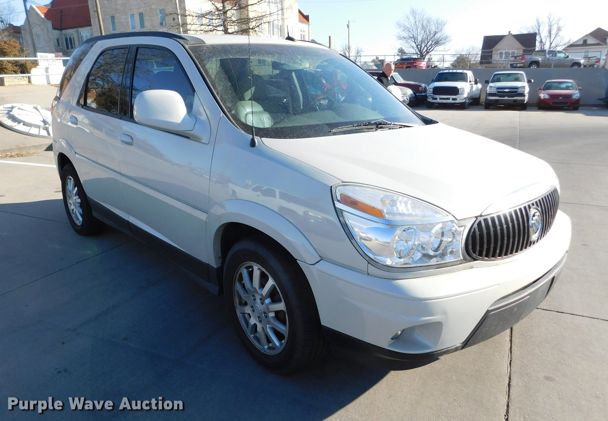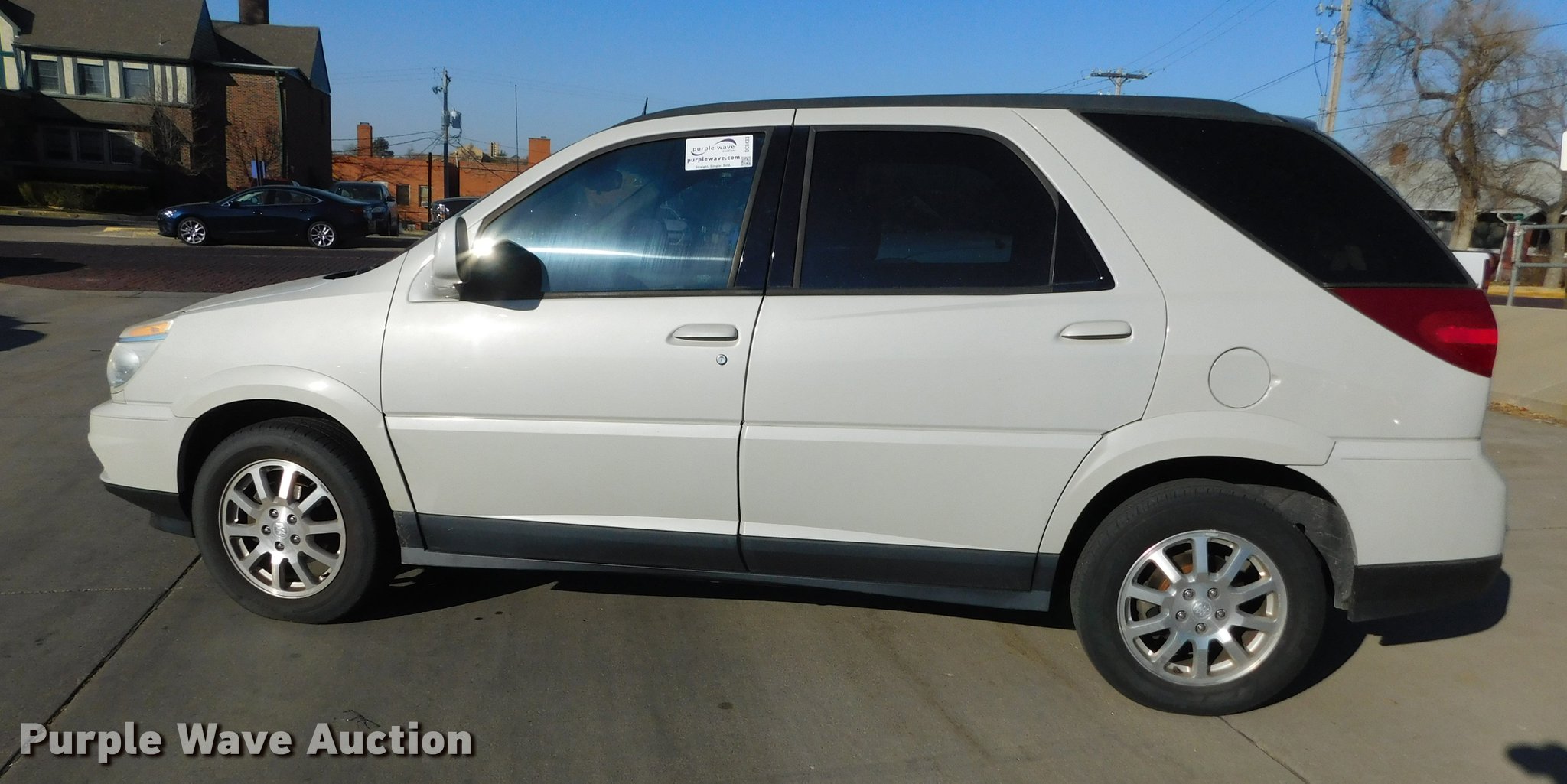 Purple Wave is selling a used Passenger Vehicle in Kansas. This item is a 2006 Buick Rendezvous SUV with the following: 94,761 miles on odometer, 3.5L V6 OHV 12V gas engine, Automatic transmission, AC and heat, Tilt, Cruise, AM/FM/CD, Power windows, locks, mirrors, and seats, Leather interior, Power sunroof, P225/60R17 tires, Driver's side window cracked, Interior leaks following rain