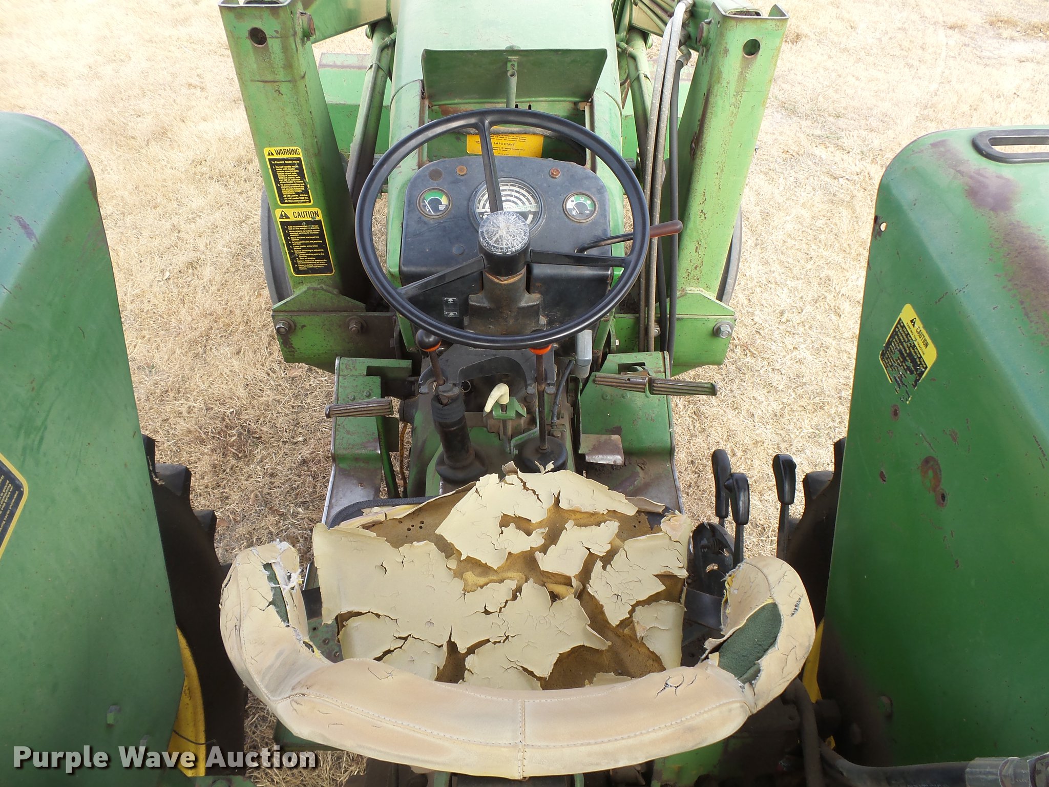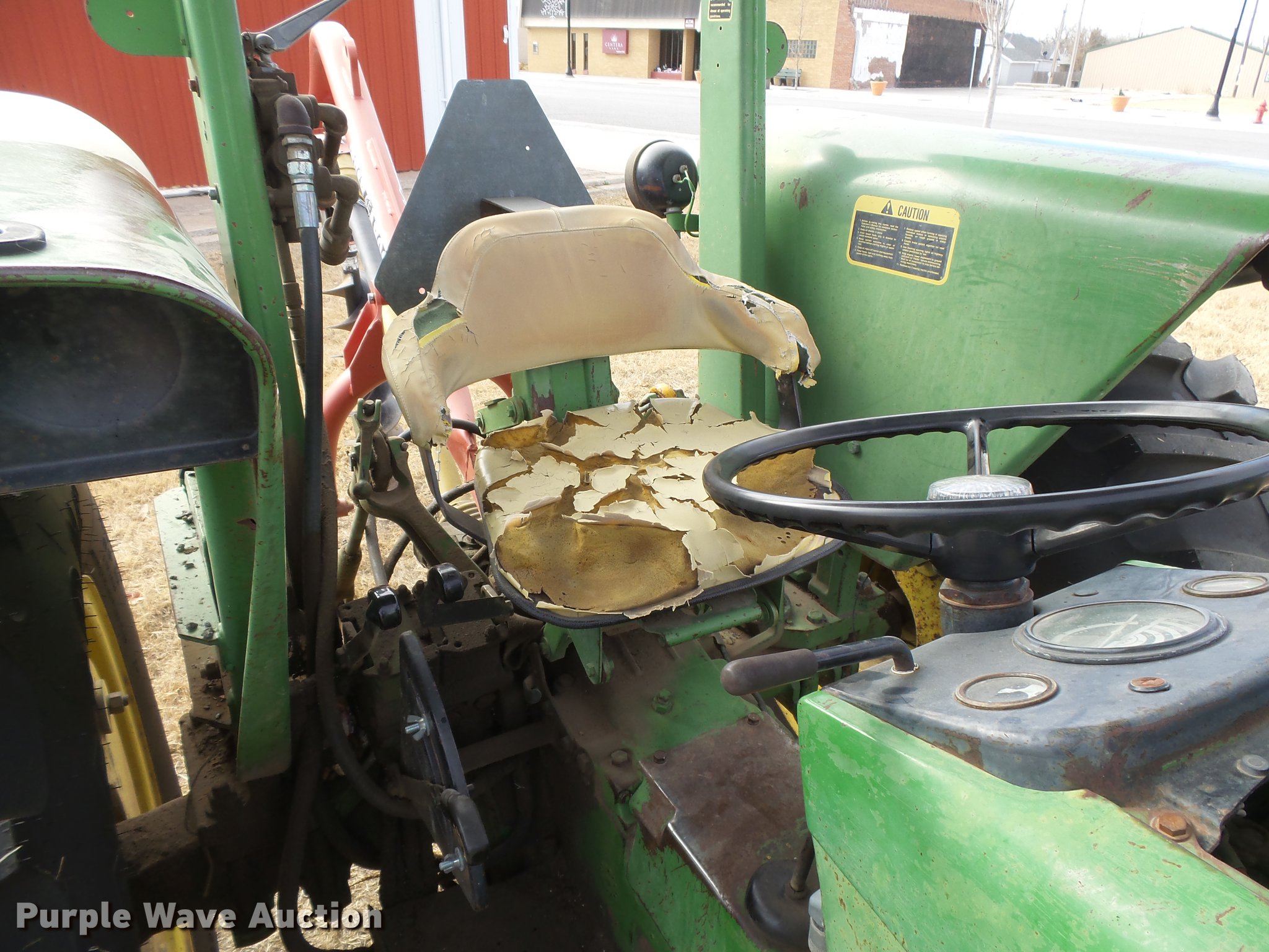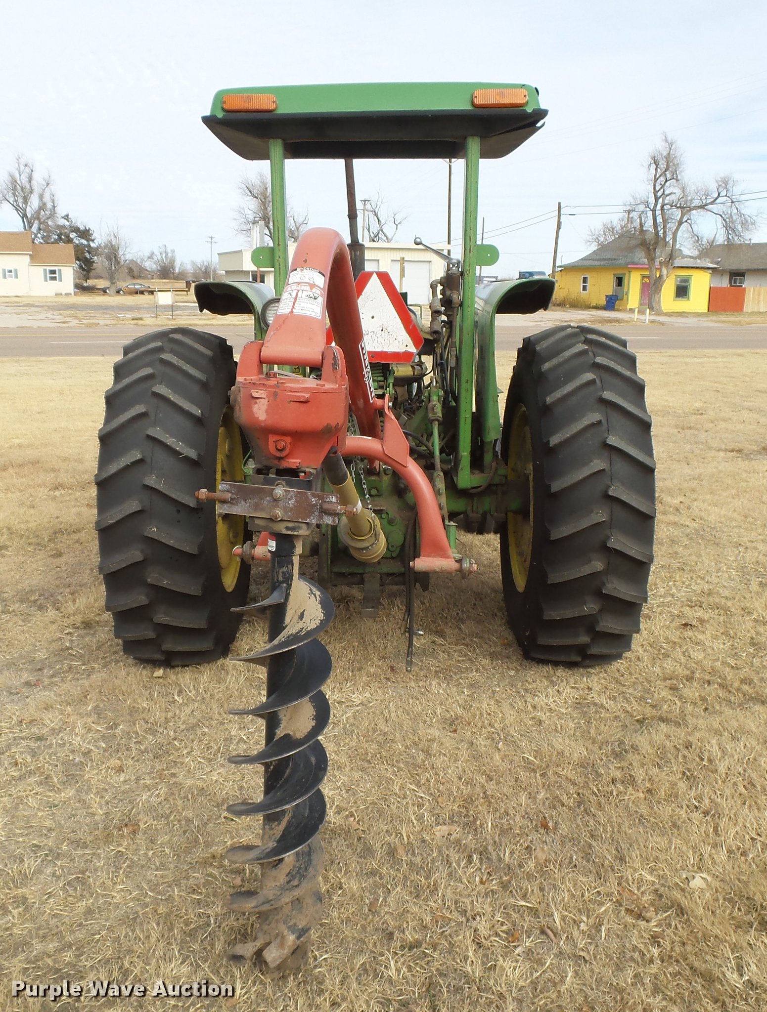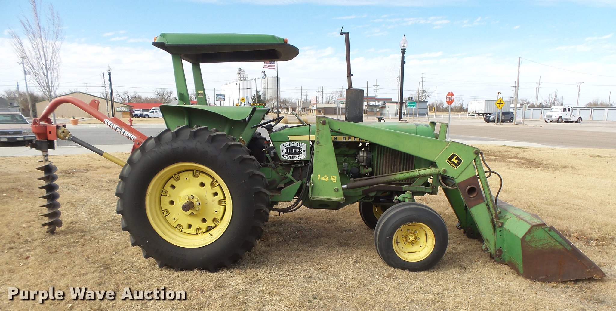 Purple Wave is selling a used Tractor in Kansas. This item is a 1979 John Deere 2440 tractor with the following: 972 hours on meter, John Deere 4219DR10 four cylinder diesel engine, Serial 507956T, Manual transmission, 8F-4R gears, Suspension seat, Shade, John Deere 148 loader, 74"W bucket, Two-lever controls, Three point, 540 PTO, (2) rear hydraulic remote sets, Bush Hog PHD2102 post hole auger, 9", Three point, Serial 3-11753, 9.5L-15 front tires, 16.9-30 rear tires, Fuel leak, possible pet cock valve seal, Serial 334495T