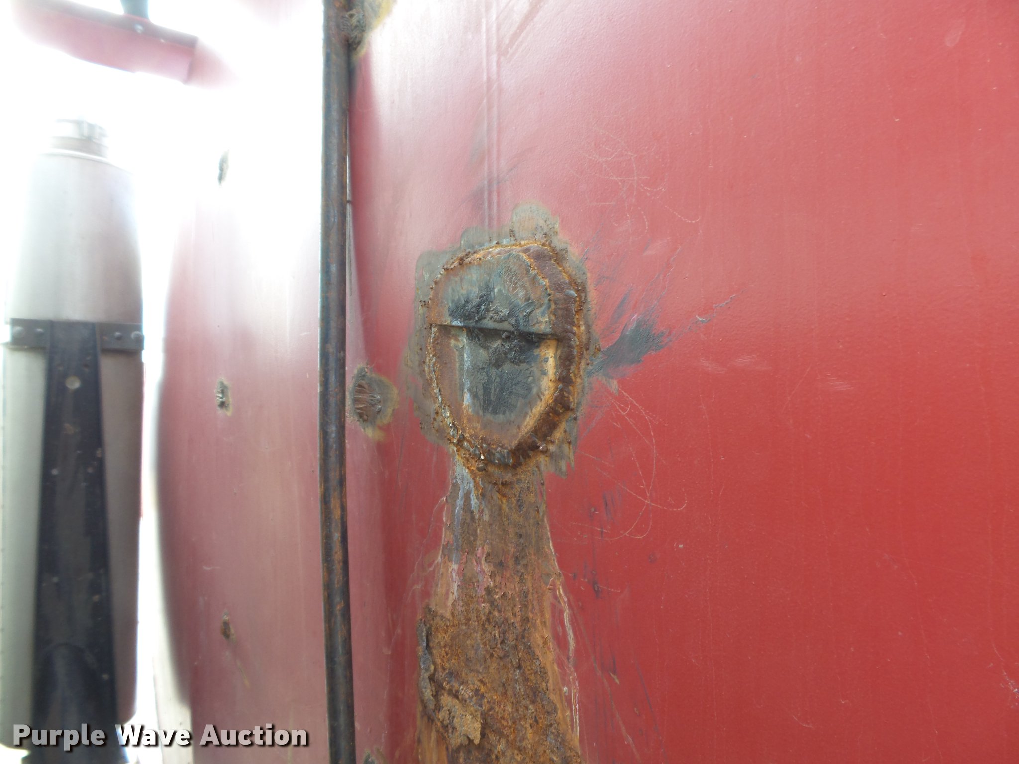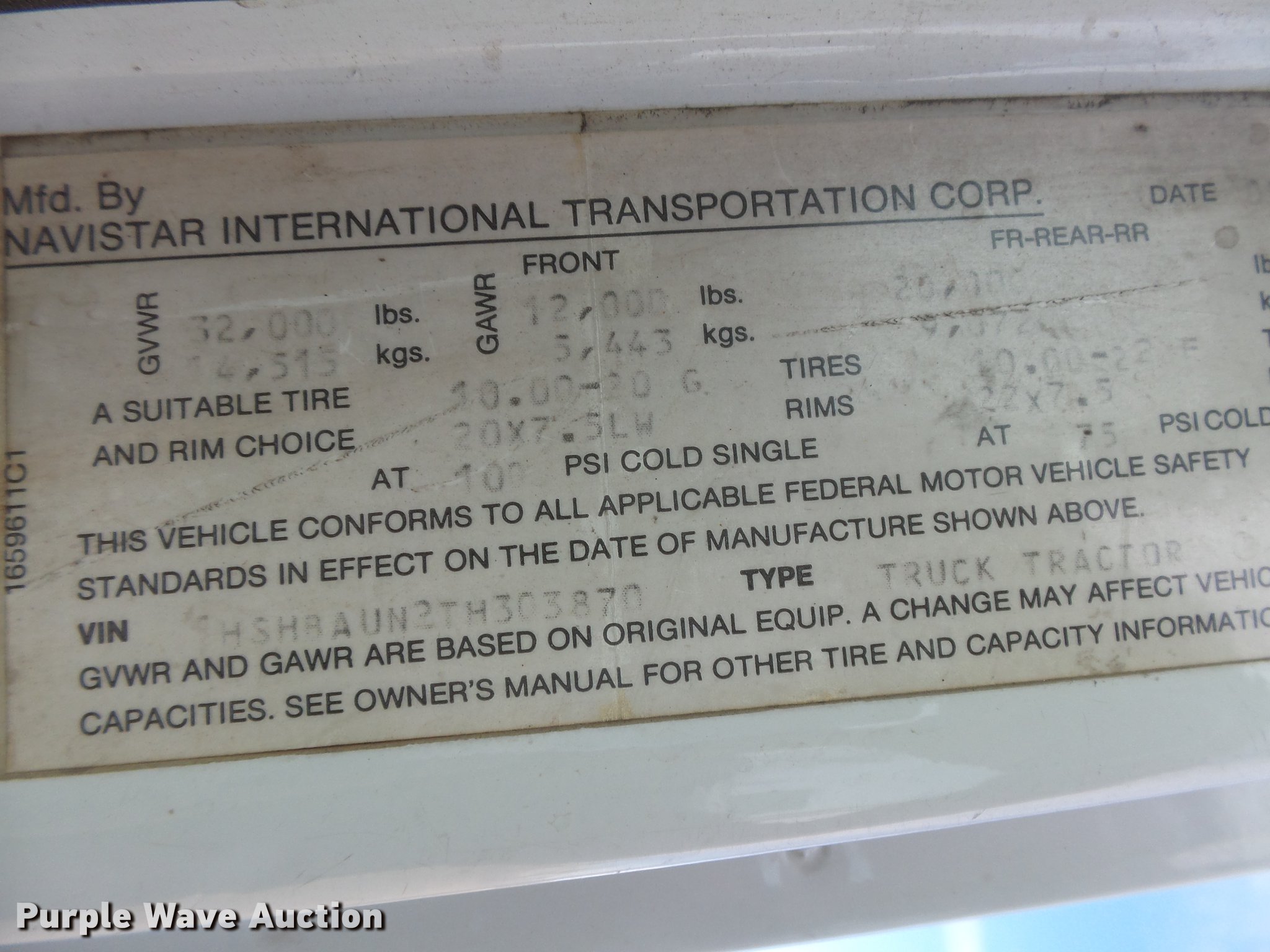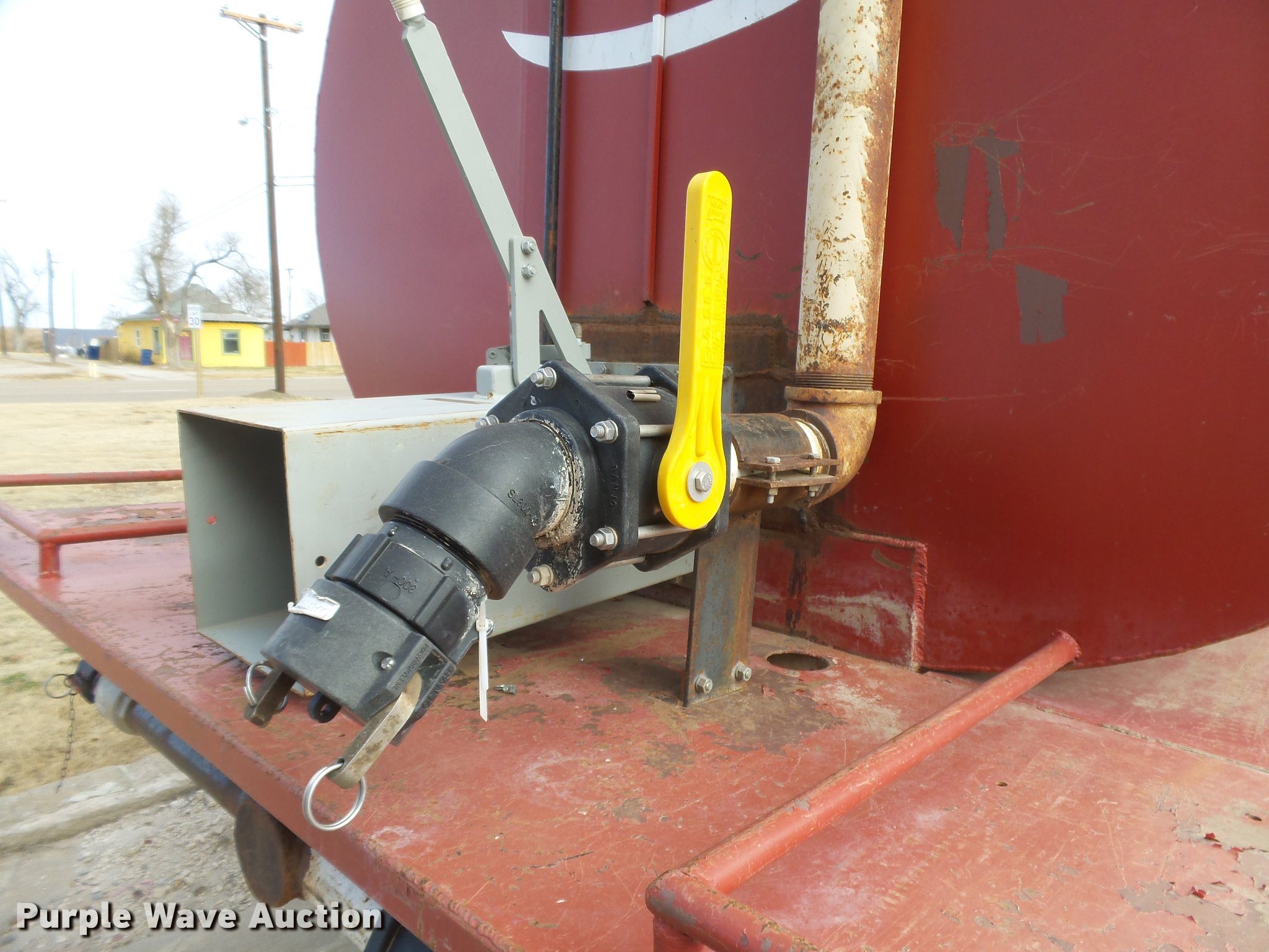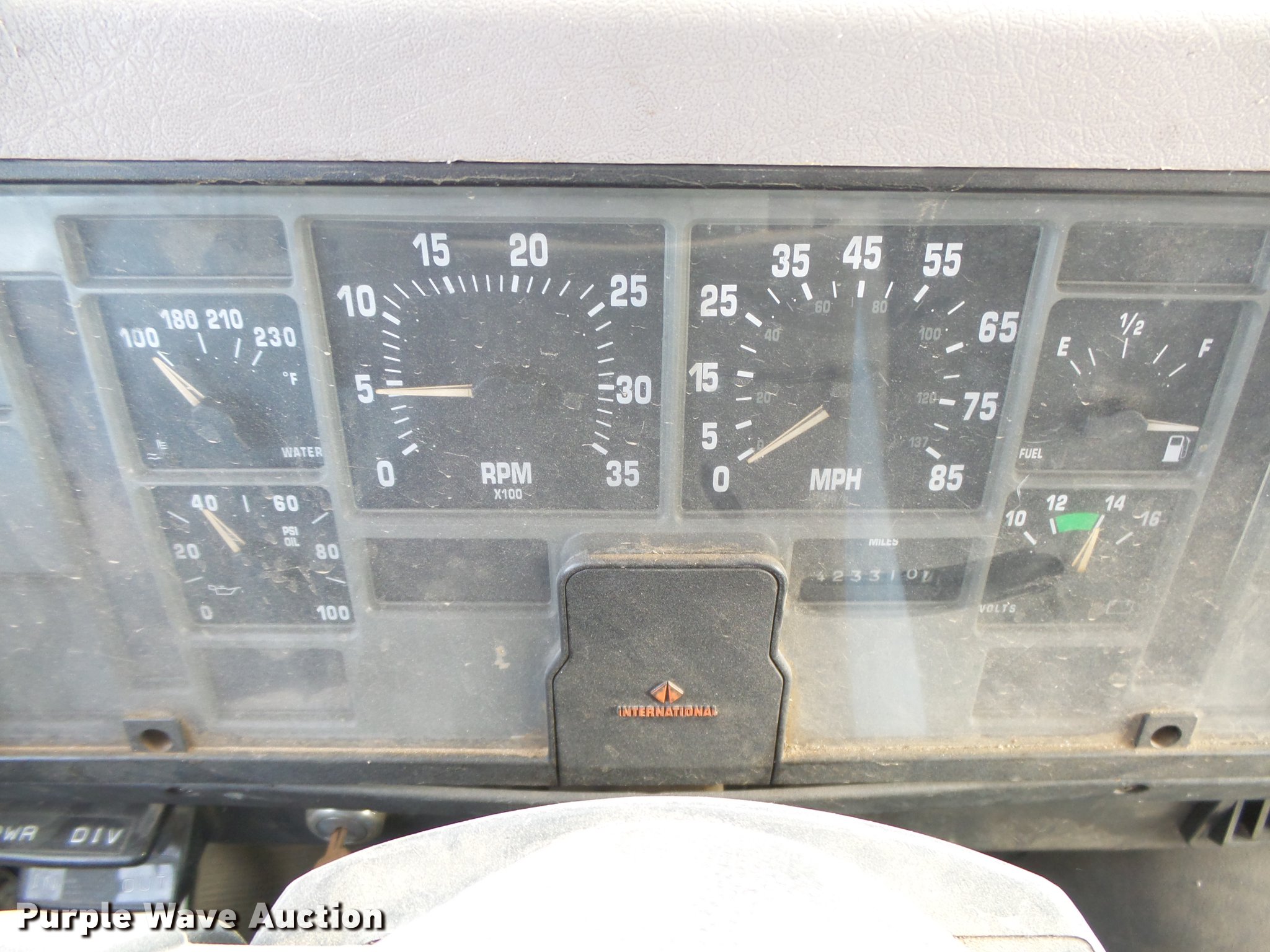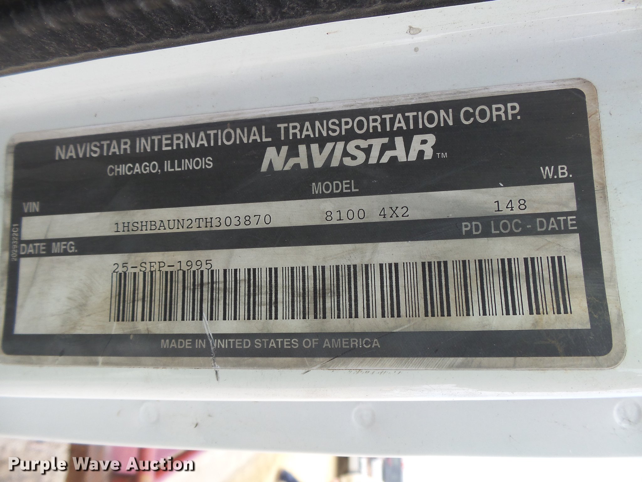 Purple Wave is selling a used Tank Truck or Water Truck in Kansas. This item is a 1996 International 8100 tank truck with the following: 423,311 miles on odometer, Cummins L10 10.0L L6 turbo diesel engine, Eaton Fuller nine speed manual transmission, Tandem axle, AC and heat, AM/FM, Air suspension seat, Light bar, Single exhaust stack, 17.5'L bed, 3,000 gallon tank, Rear discharge, 3" rear drain, Top fill, Dual fuel tanks, Spring suspension, Air brakes, 148" wheelbase, 285/75R24.5 front tires, 11.00-20 rear tires, GVWR 32,000 lbs, Exhaust leak behind turbo, Possible fuel or injector issues
