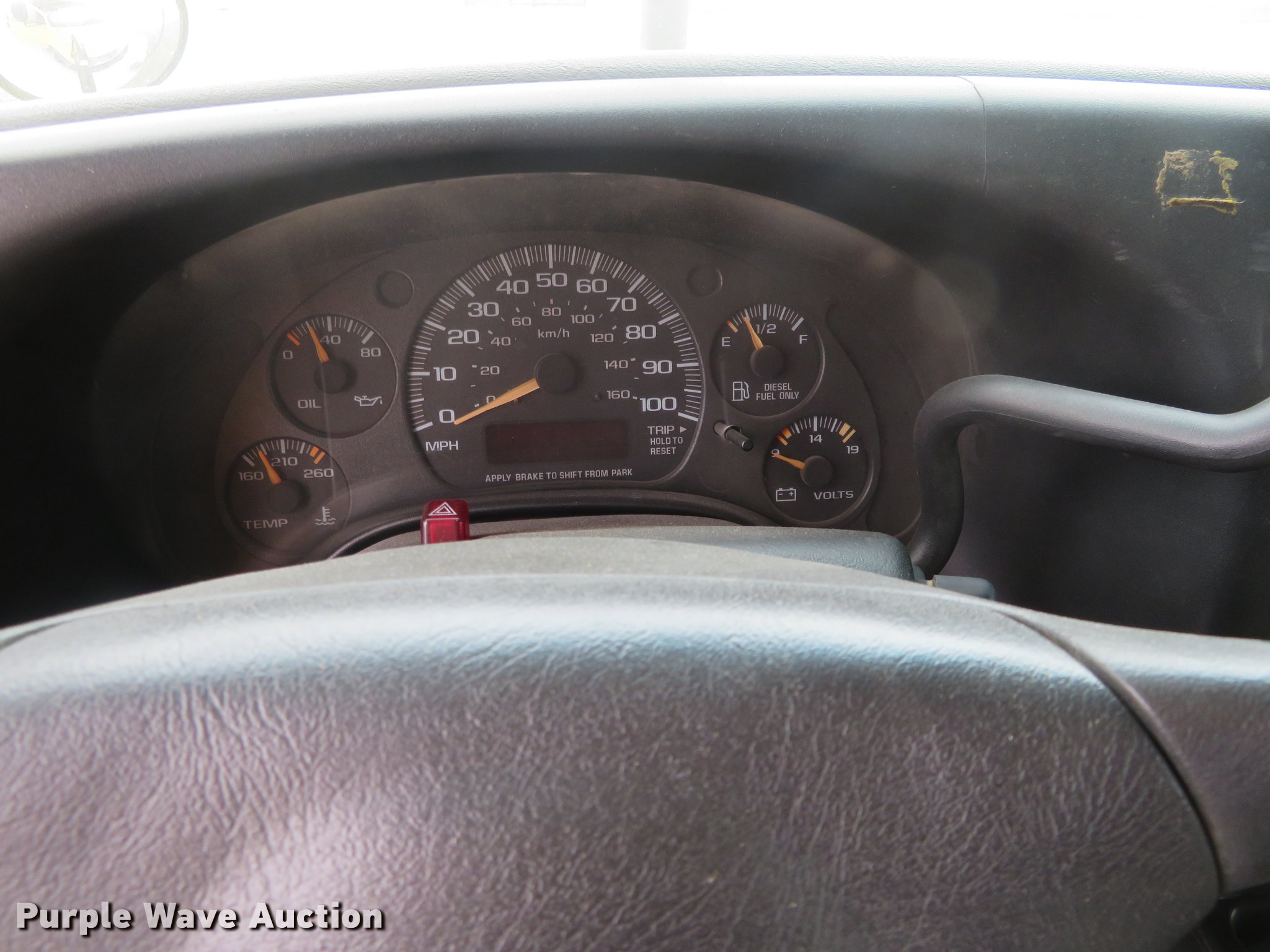 Purple Wave is selling a used Bus in Kansas. This item is a 2002 Chevrolet Express G3500 school bus with the following: 111,751 miles on odometer, V8 diesel engine, Automatic transmission, Heat, AM/FM, Manual windows and locks, Vinyl interior, 215/85R16 tires, Engine issues