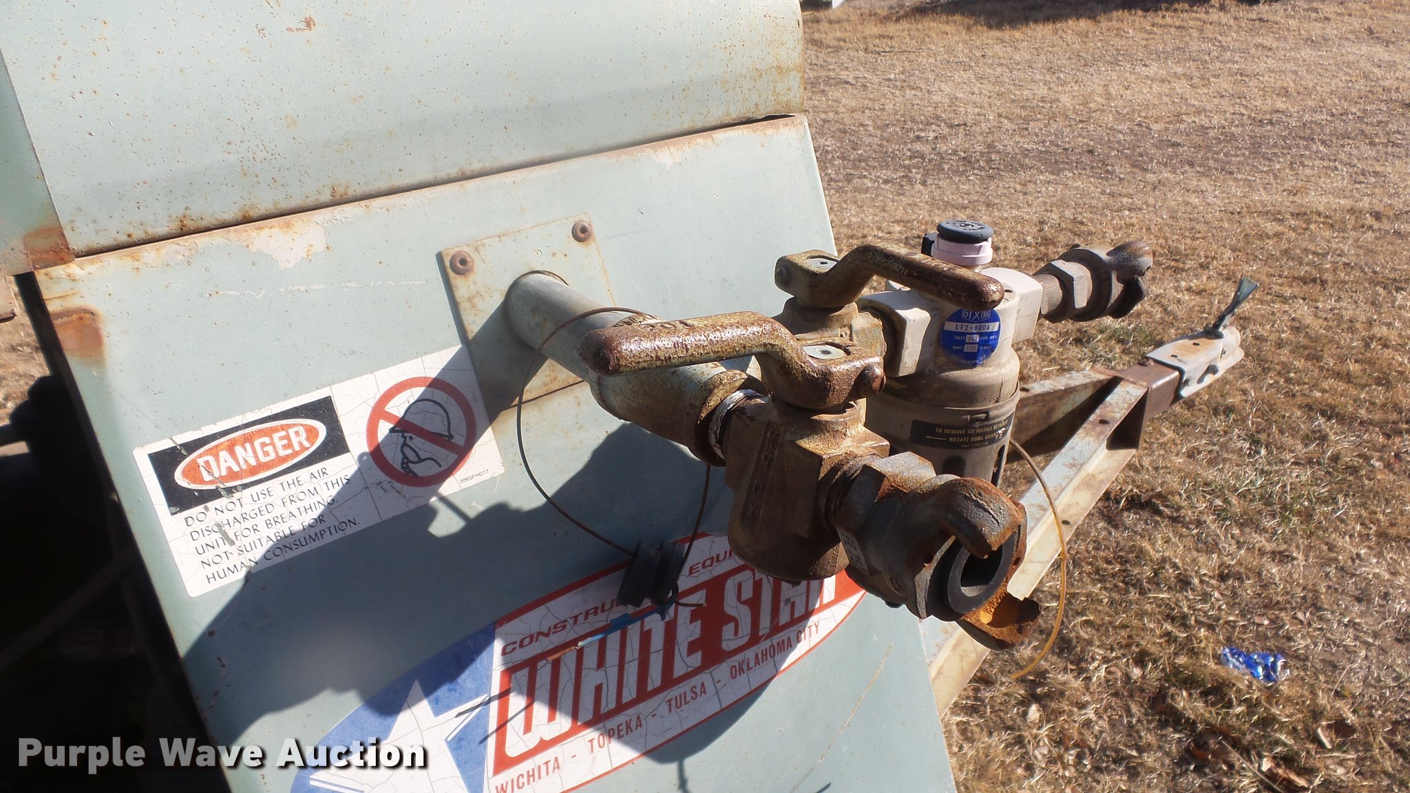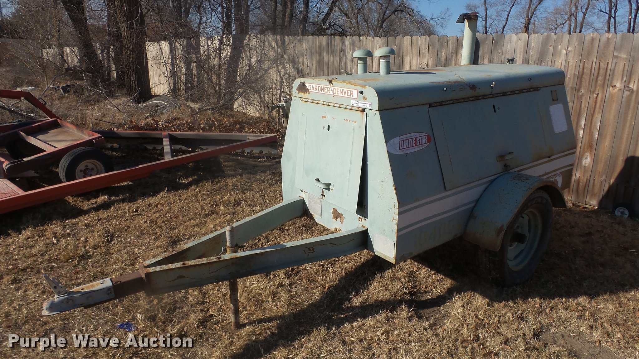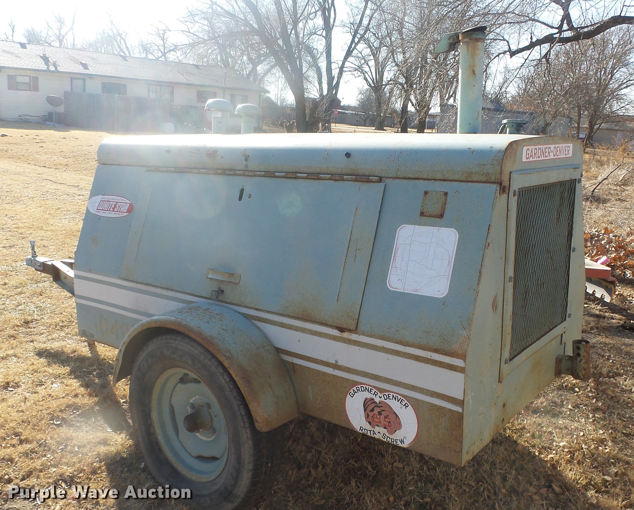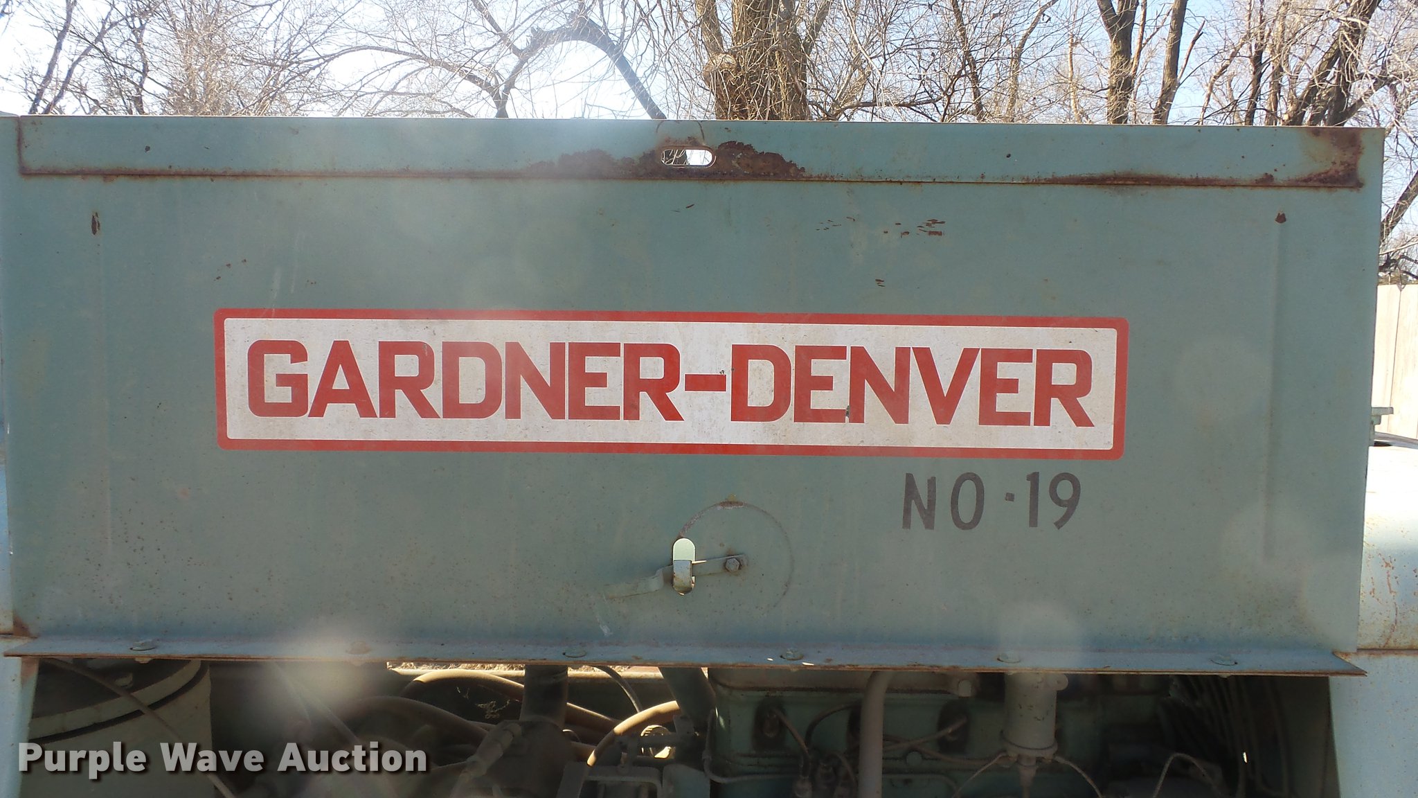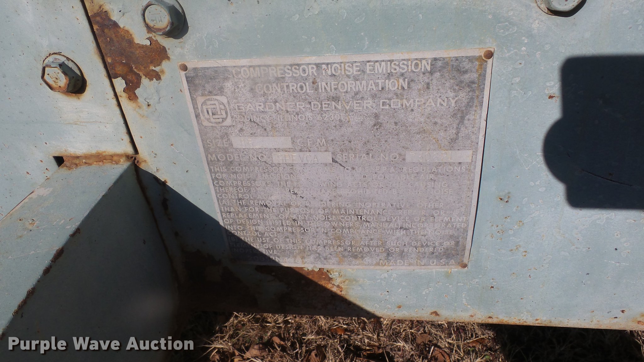 Gardner Denver 19 air compressor. 716 hours on meter, Waukesha four cylinder gas engine, 85 CFM, Tools, Ball hitch, Unknown operating condition. This is worksite support equipment and will not come with a title. 730621. City of Nickerson. Nickerson, KS 67561