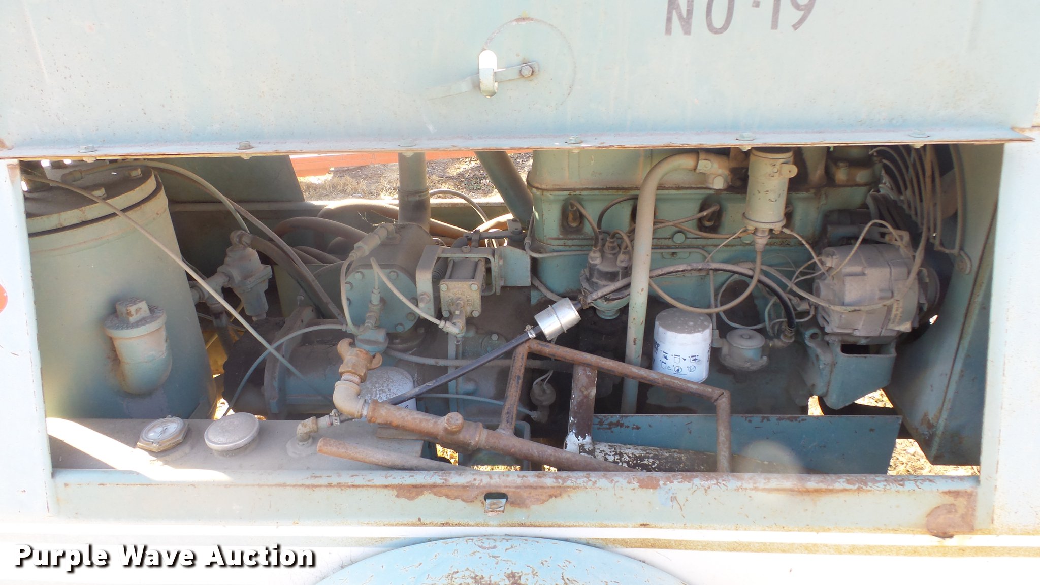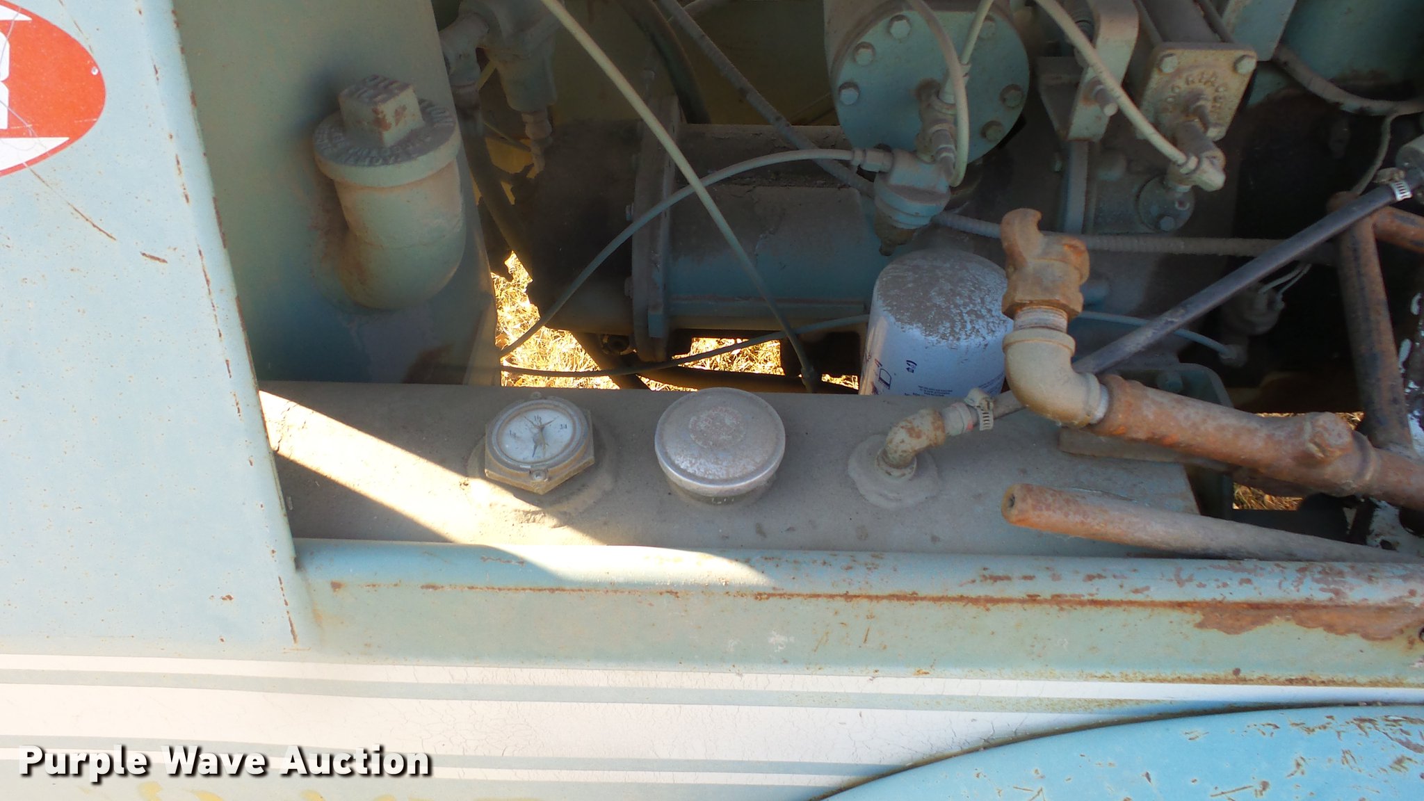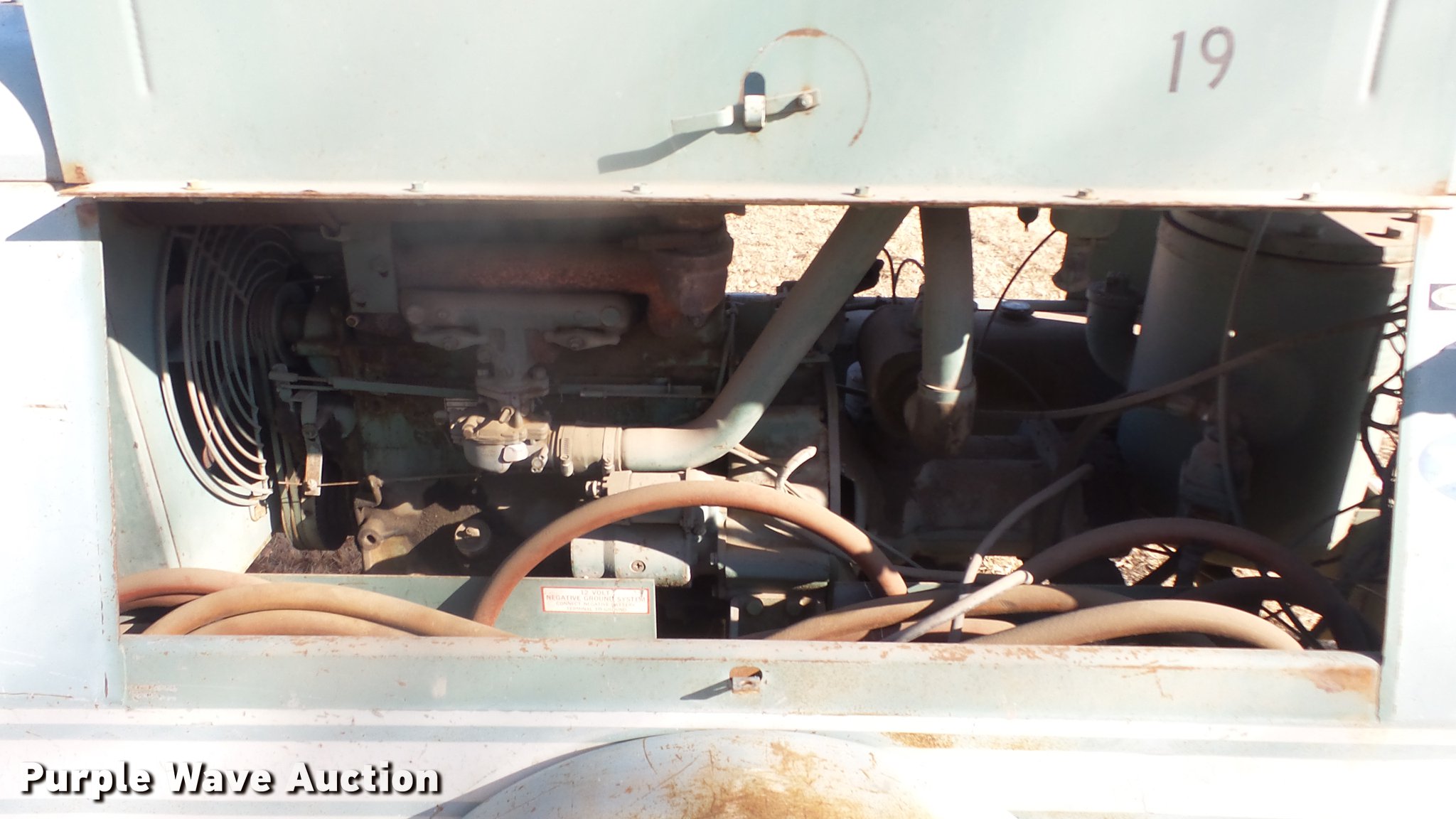 Purple Wave is selling a used Air Compressor in Kansas. This item is a Gardner Denver 19 air compressor with the following: 716 hours on meter, Waukesha four cylinder gas engine, 85 CFM, Tools, Ball hitch, Unknown operating condition