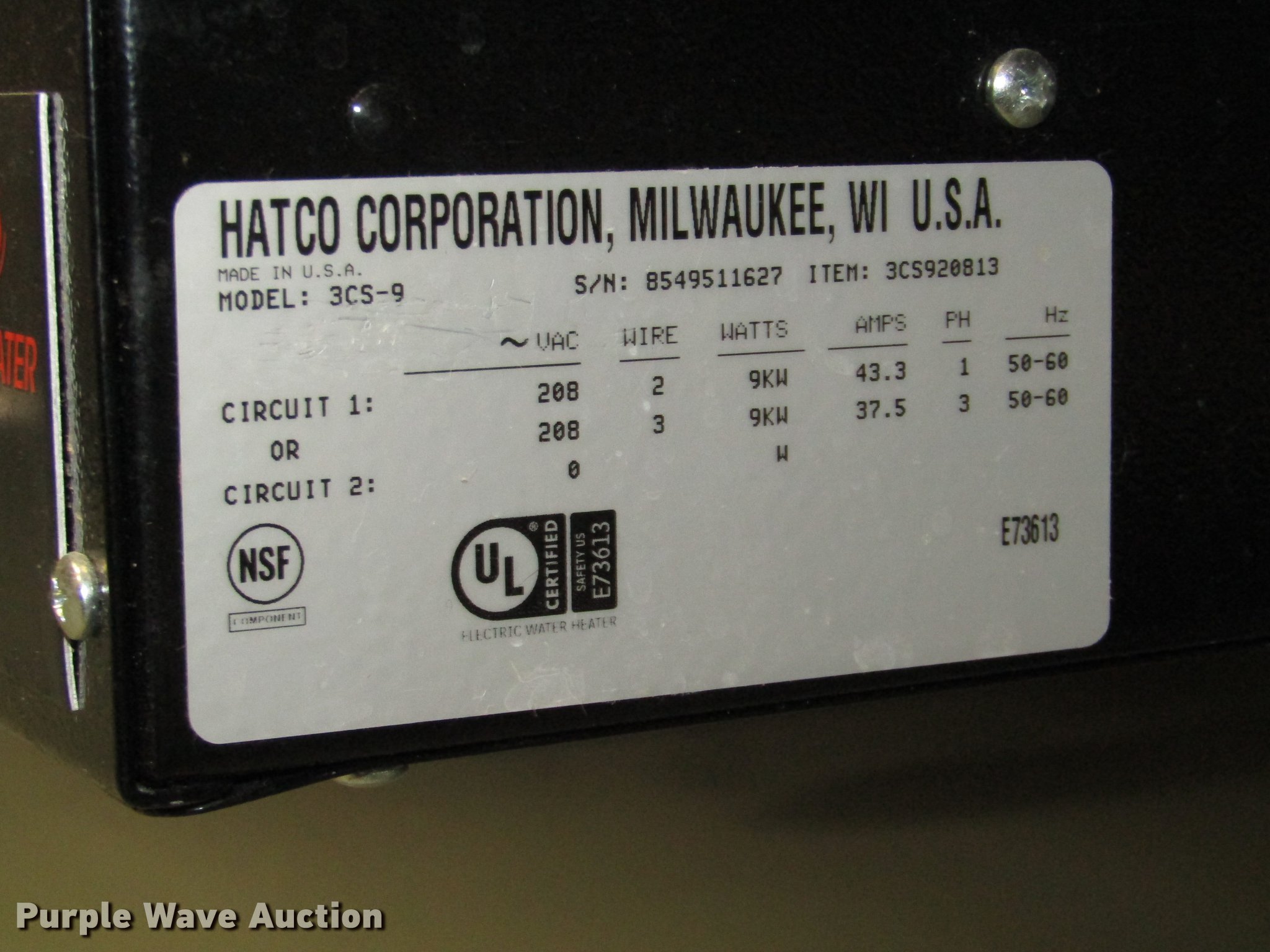 • Hatco 3CS-9 water heater