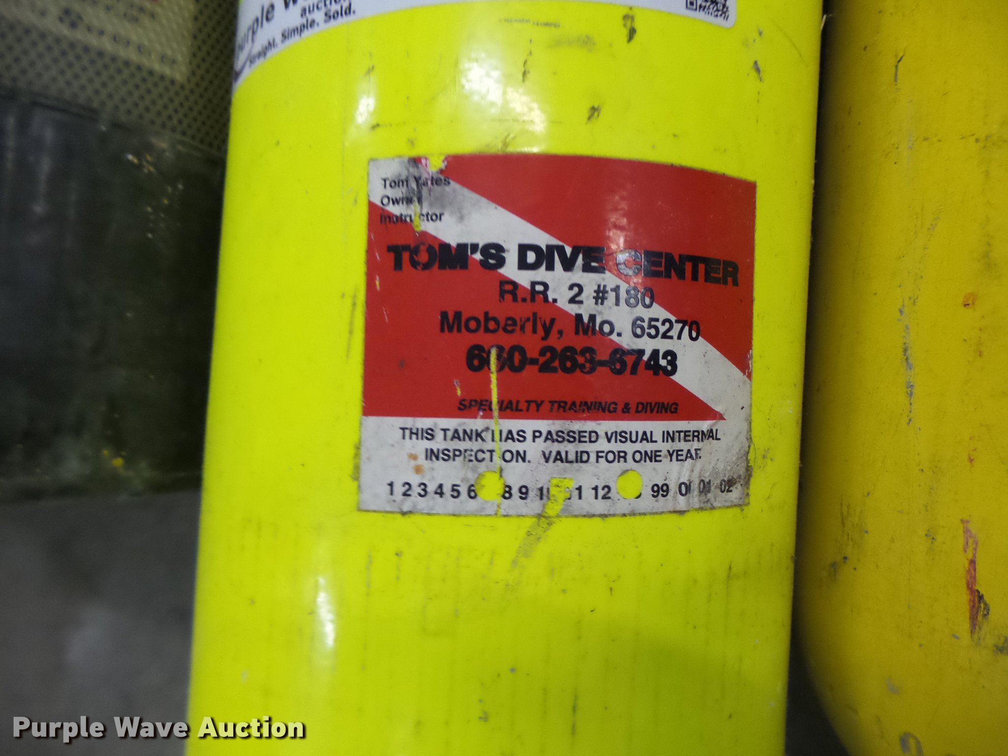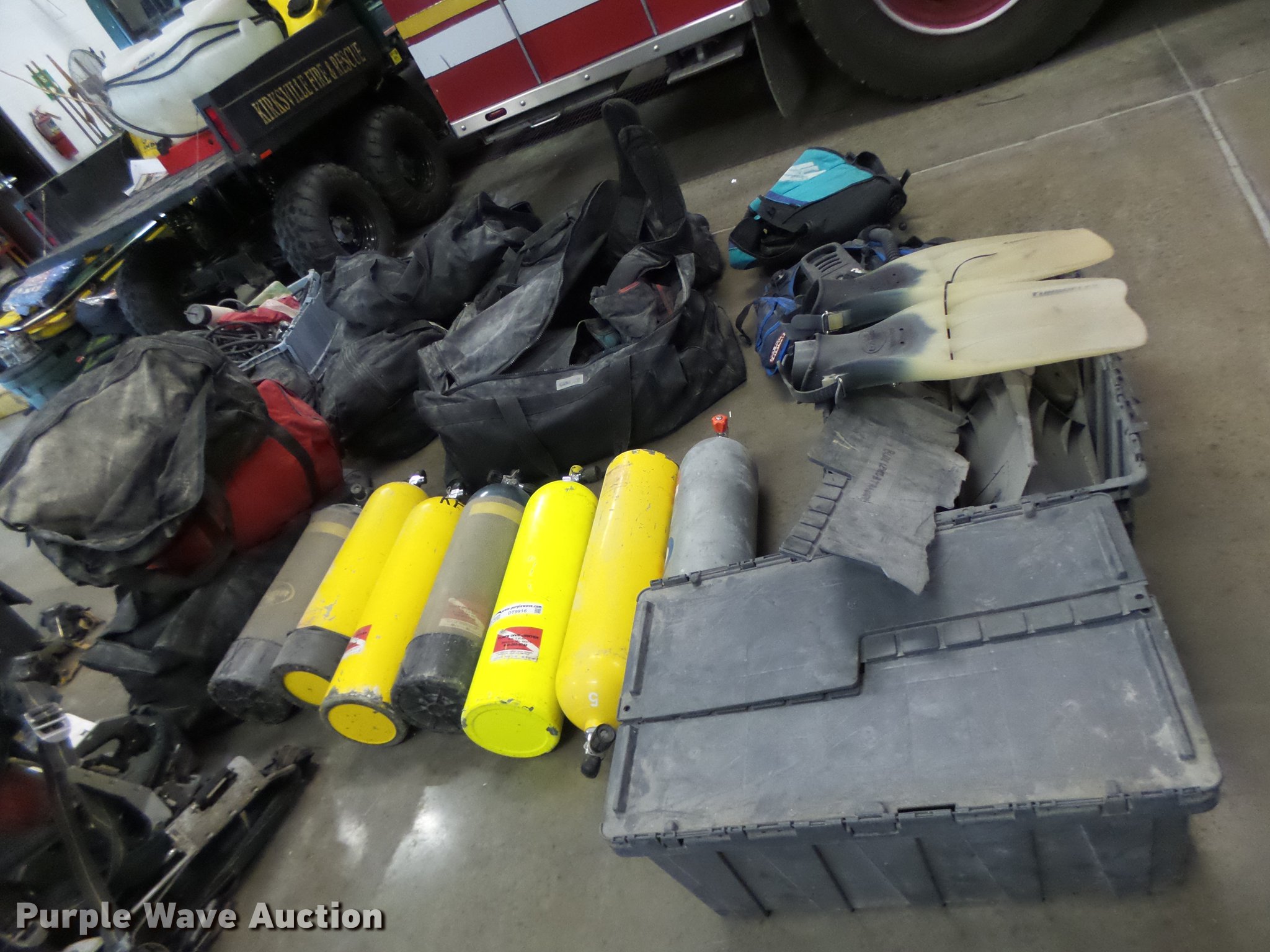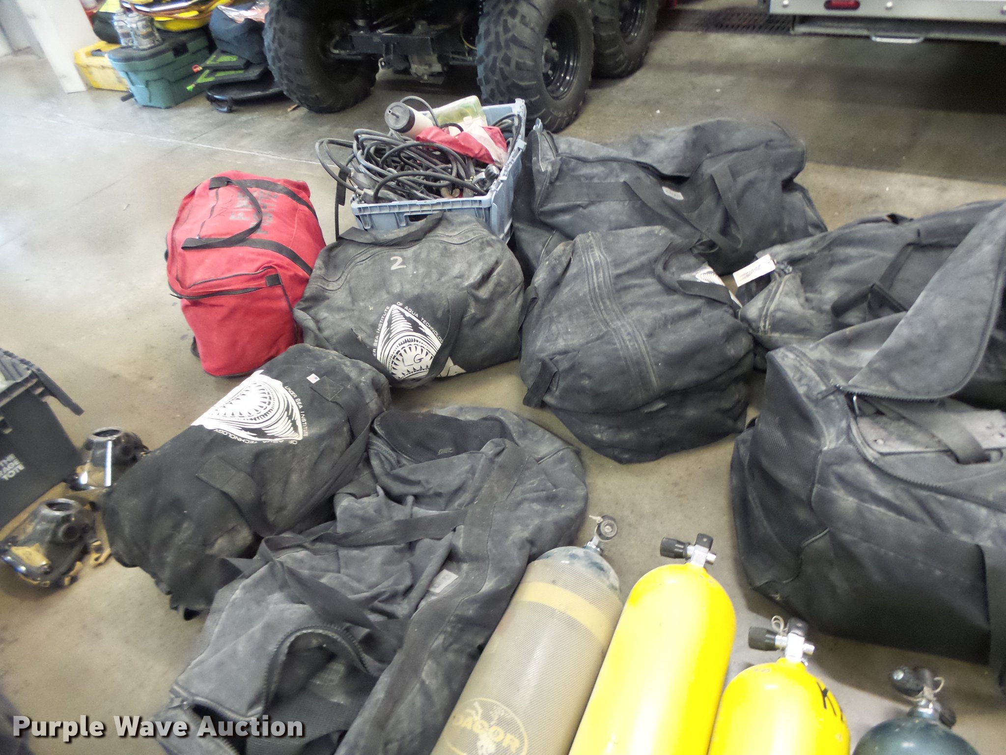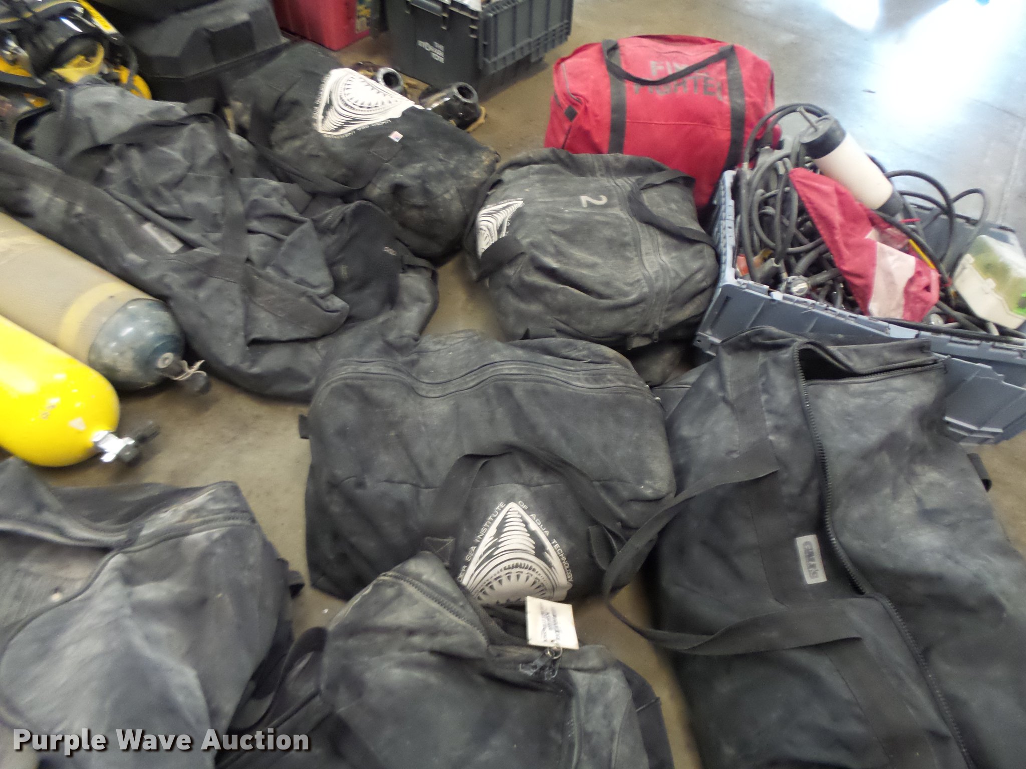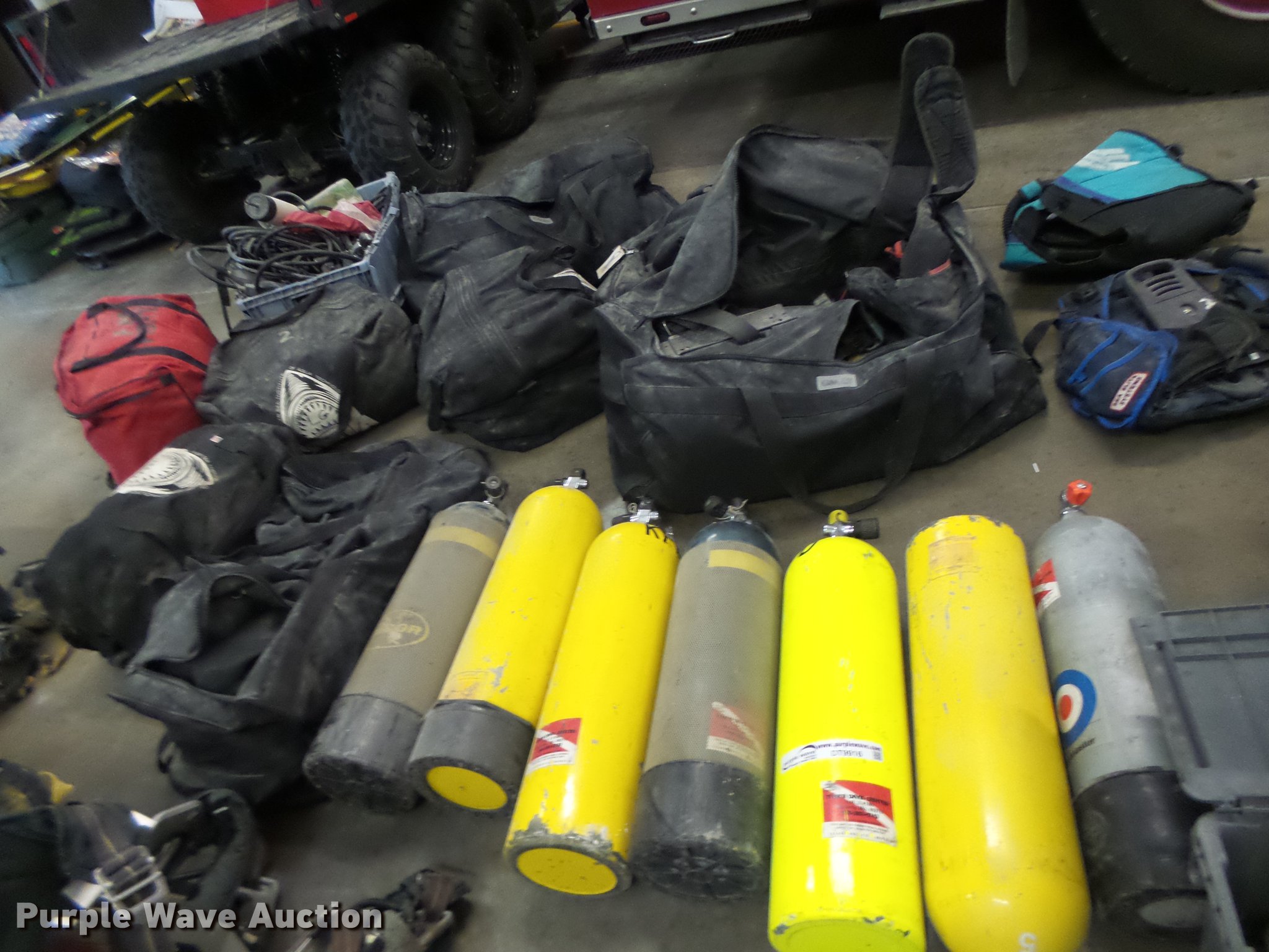 Purple Wave is selling a used Sporting Goods in Missouri. This item is a Scuba diving equipment with the following: Approx. 7 units, Tanks, Buoyancy compensators, Regulators, Fins, Masks, Snorkels, Wet and dry suits, Equipment bags