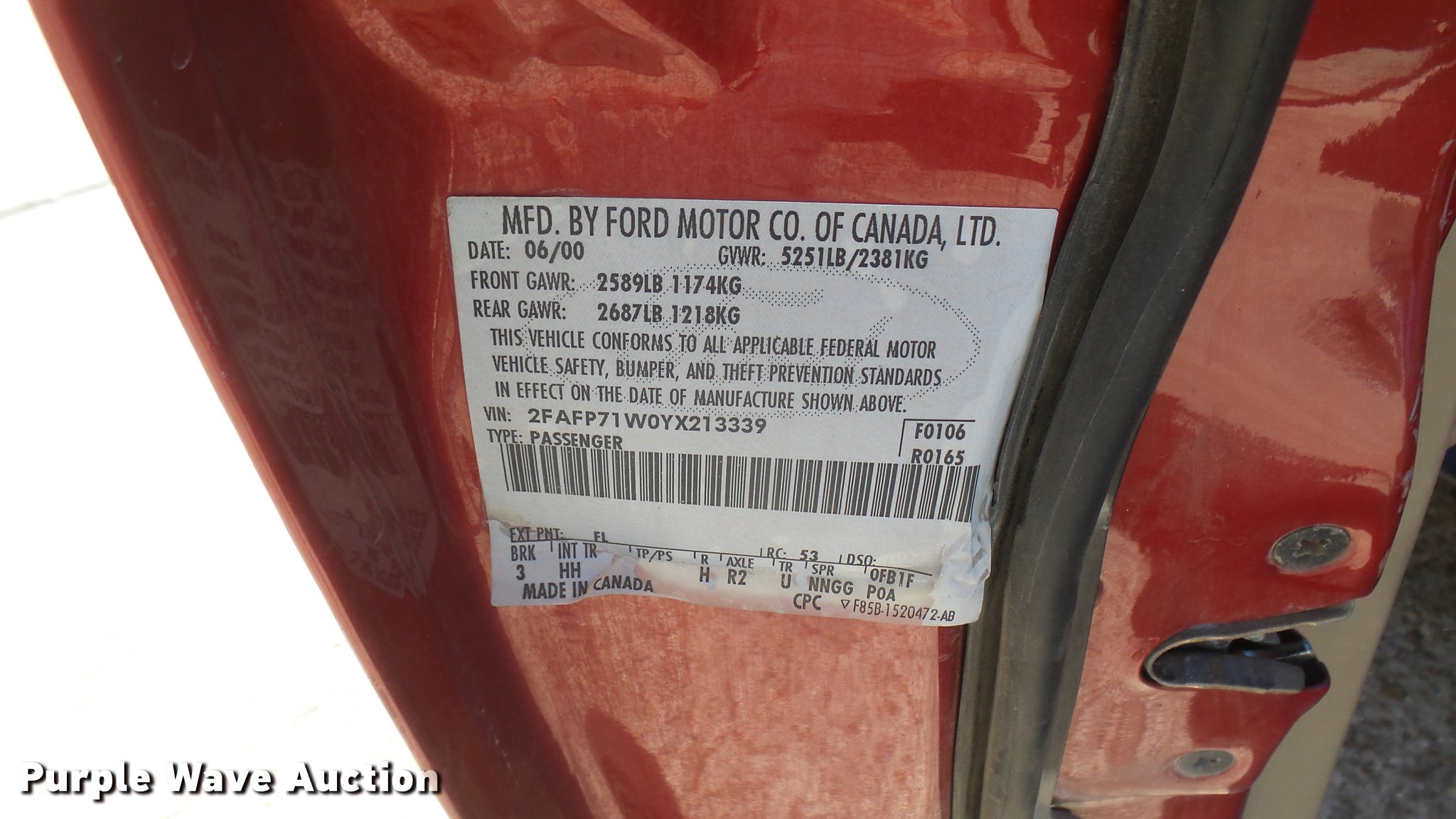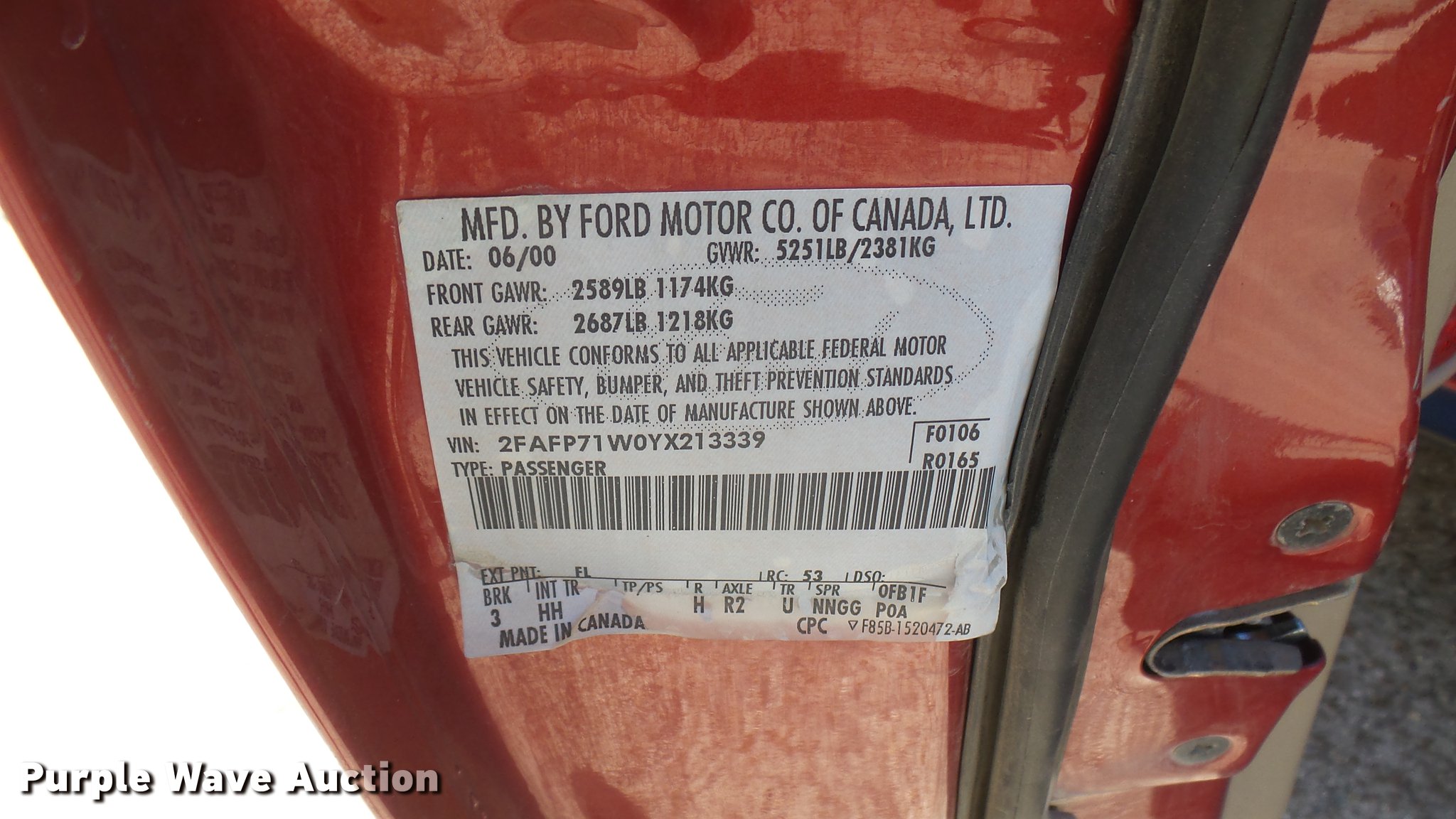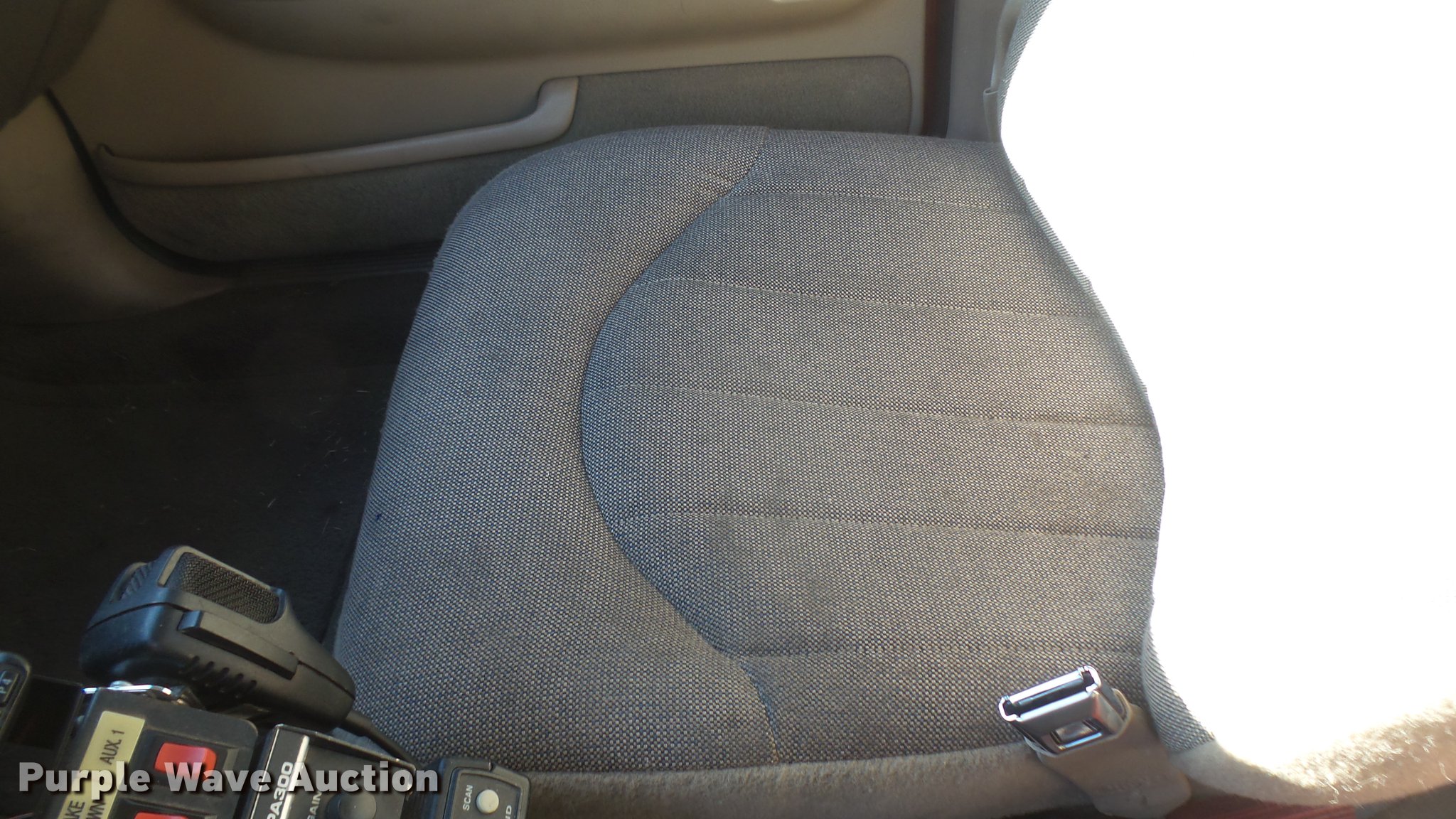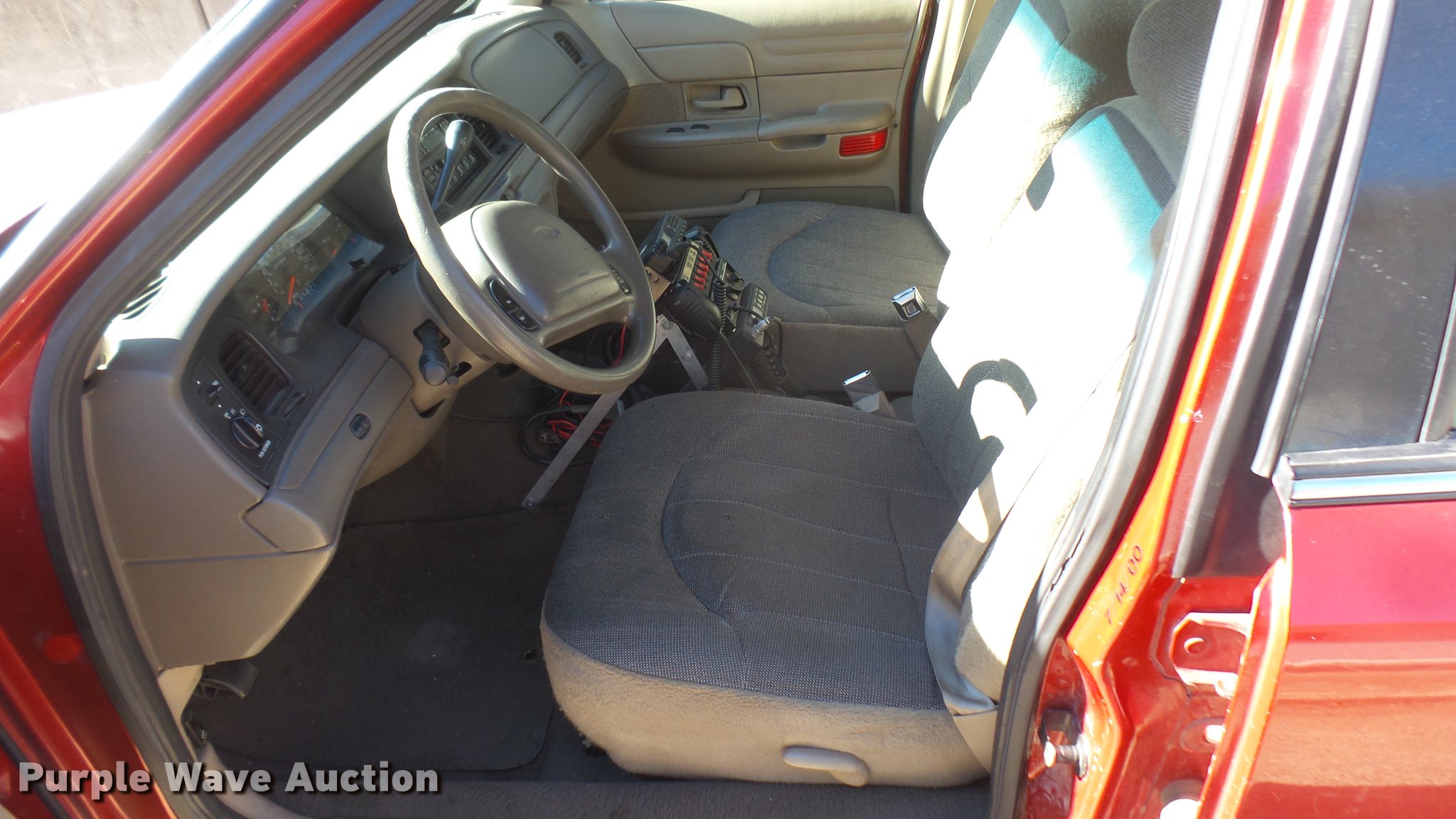 Purple Wave is selling a used Passenger Vehicle in Kansas. This item is a 2000 Ford Crown Victoria Police Interceptor with the following: 77,805 miles on odometer, 4.6L V8 SOHC 16V gas engine, Automatic transmission, AC and heat, Tilt, Cruise, AM/FM/cassette, Power locks, windows, and mirrors, Cloth interior, 225/60R16 tires, Light bar not included, Radio equipment not included