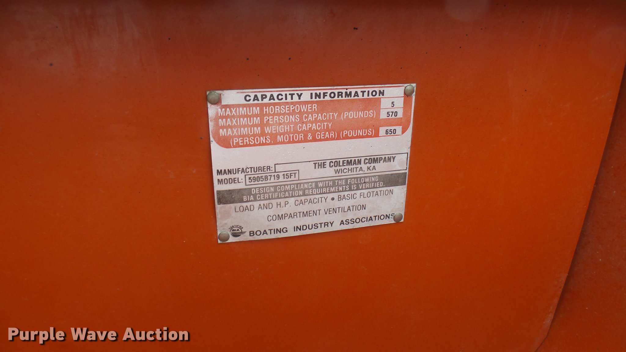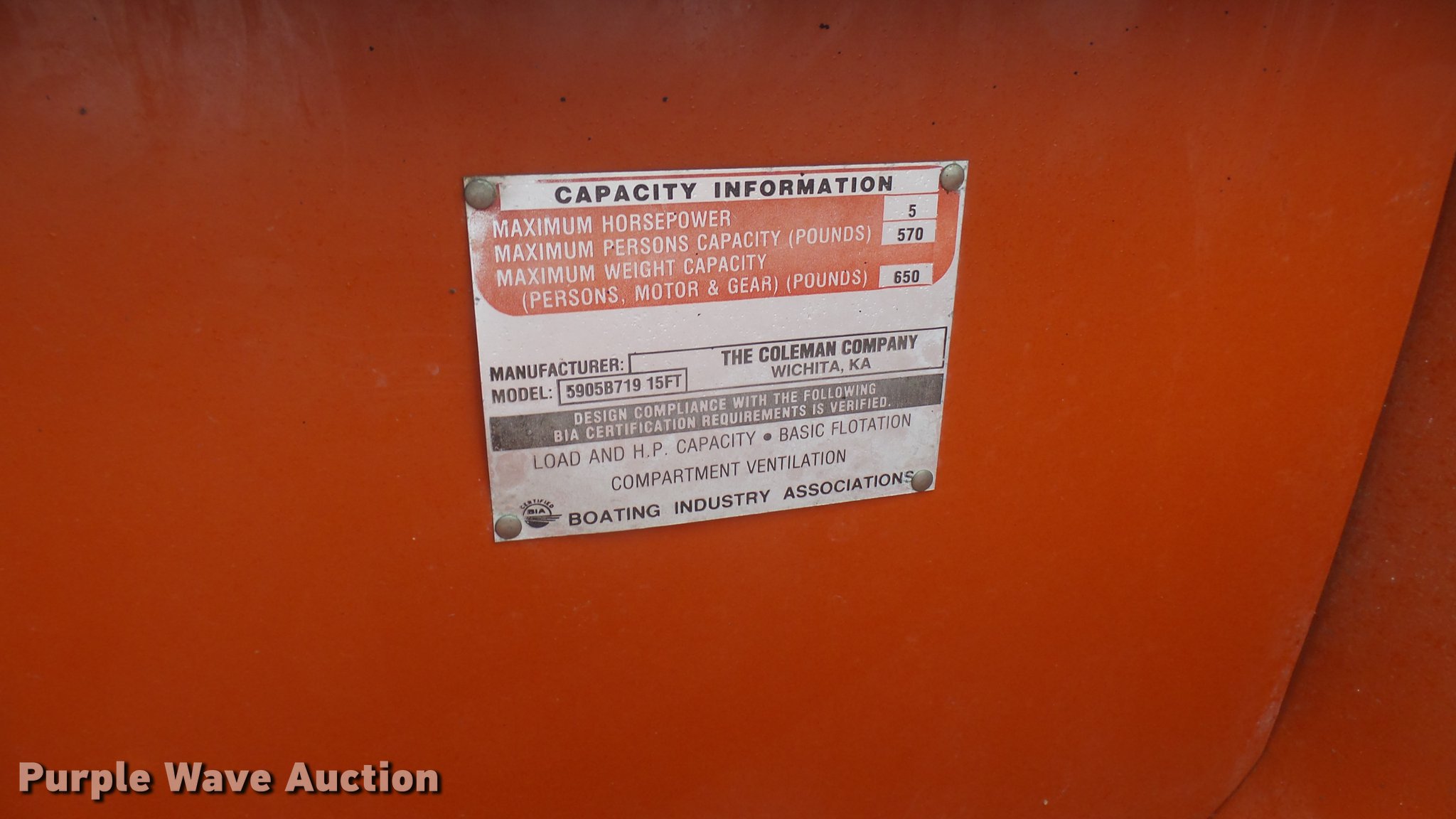 Purple Wave is selling a used Sporting Goods in Kansas. This item is a Coleman canoe with the following: 15'L, Five person capacity