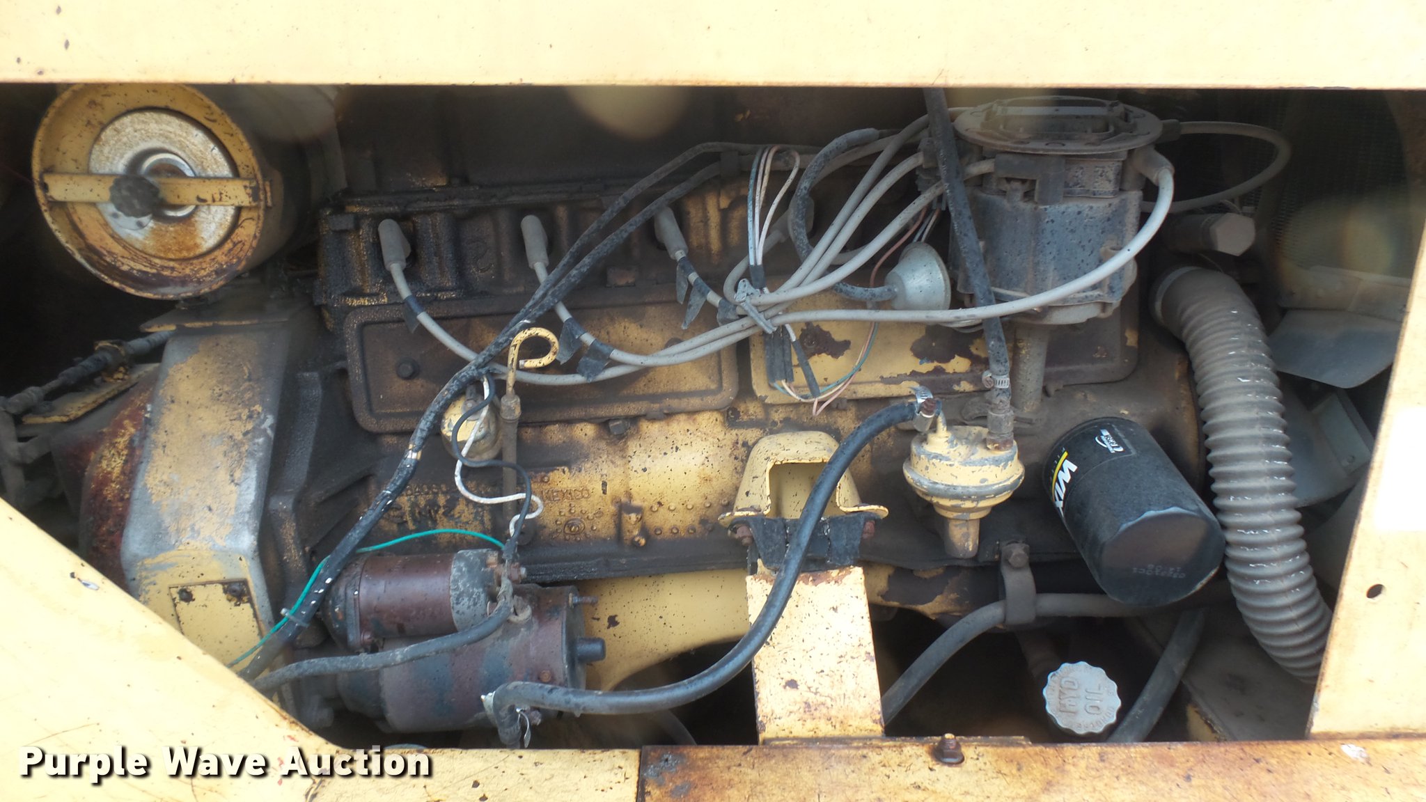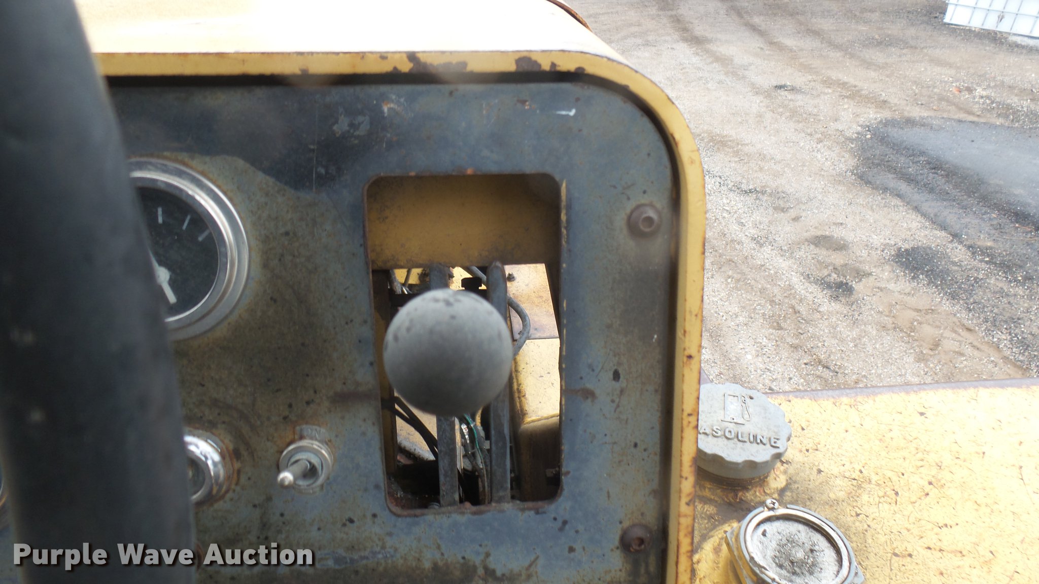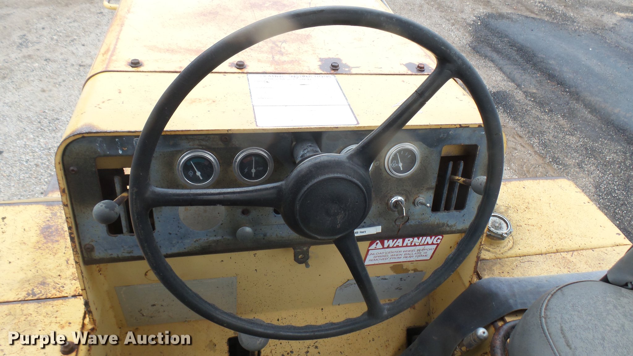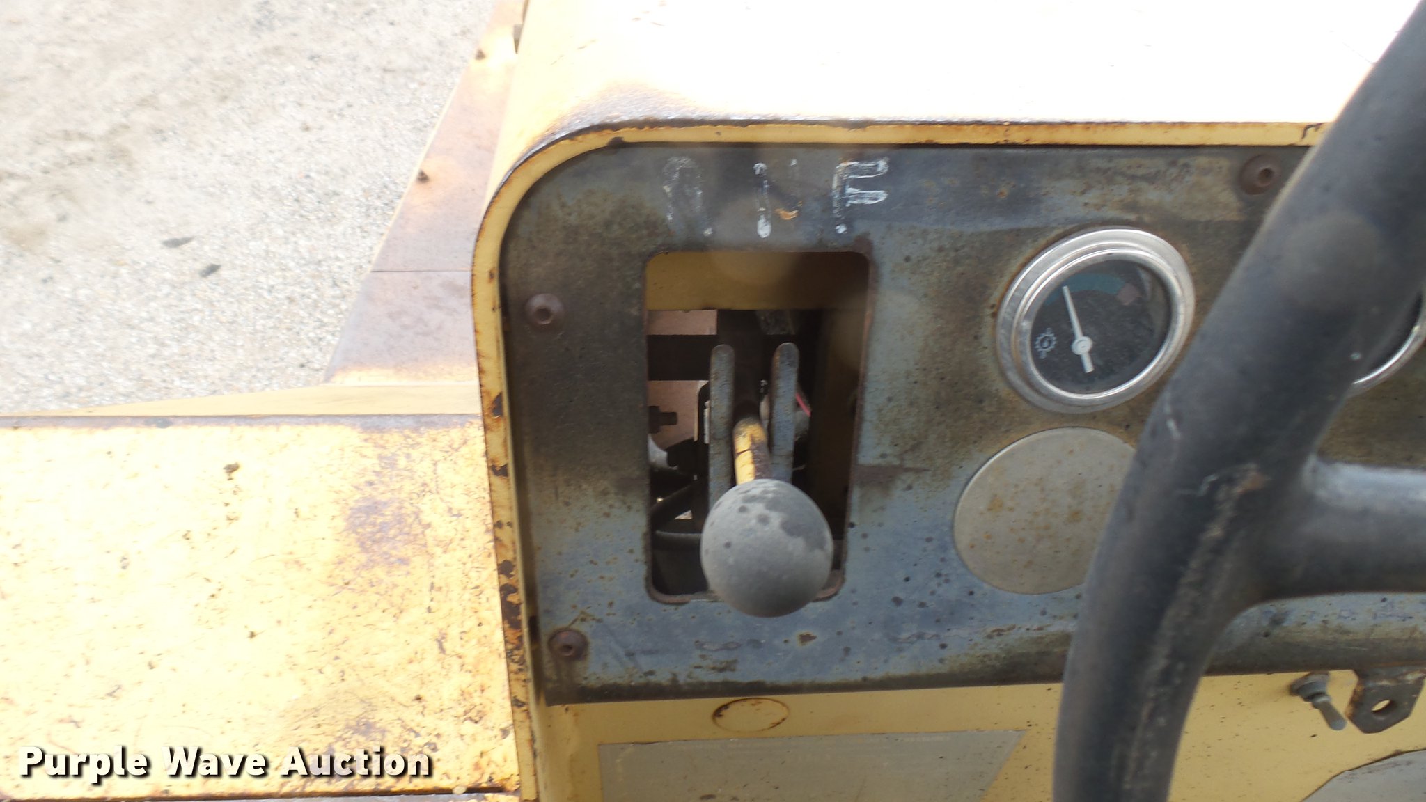 Purple Wave is selling a used Pneumatic Roller in Kansas. This item is a Hyster pneumatic roller with the following: 1,408 hours on meter, Four cylinder gas engine, Three speed transmission, Canopy, 45" work width, Poly tank, 335 gallon capacity, Boom, (8) 7.50-15 tires, Transmission issues