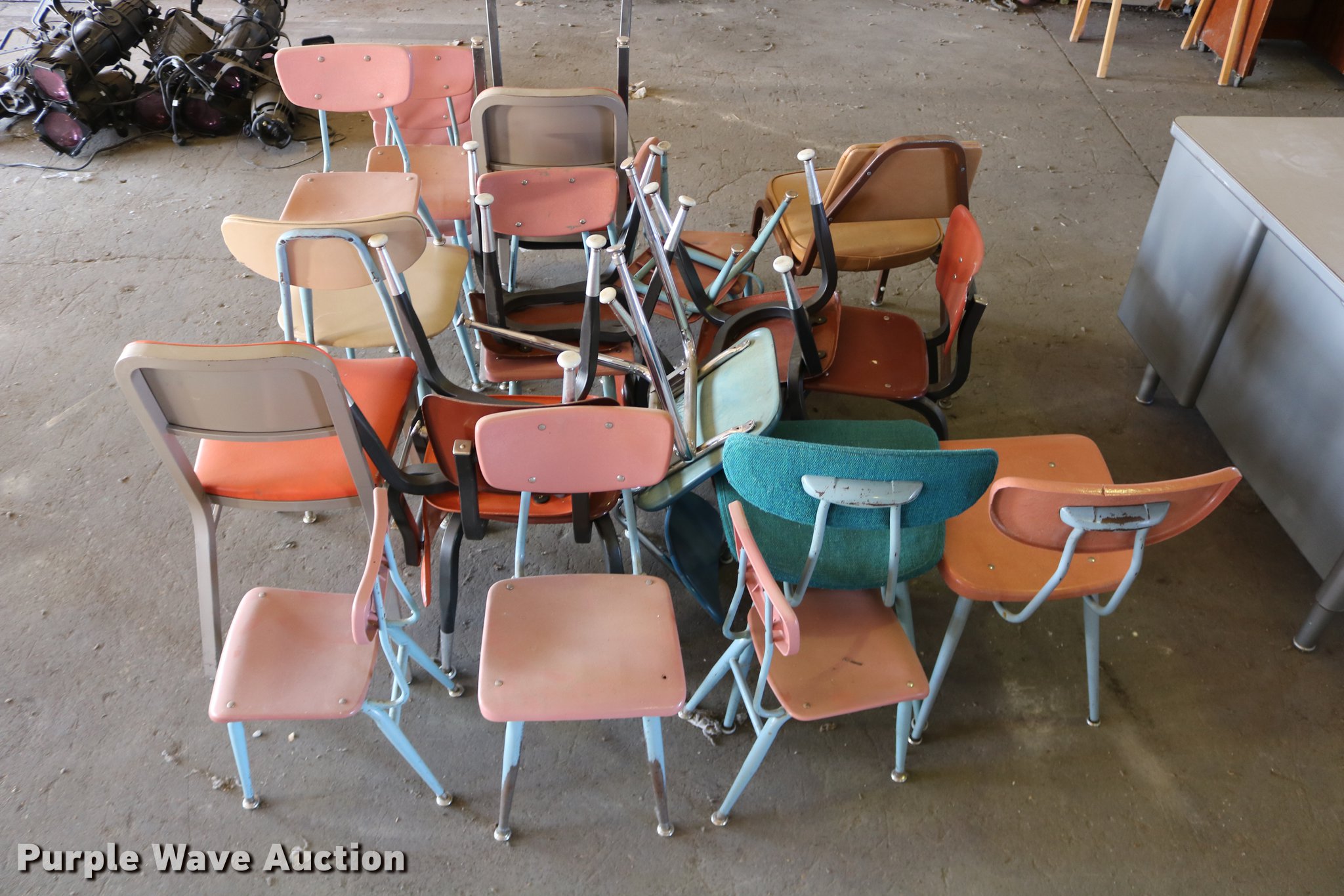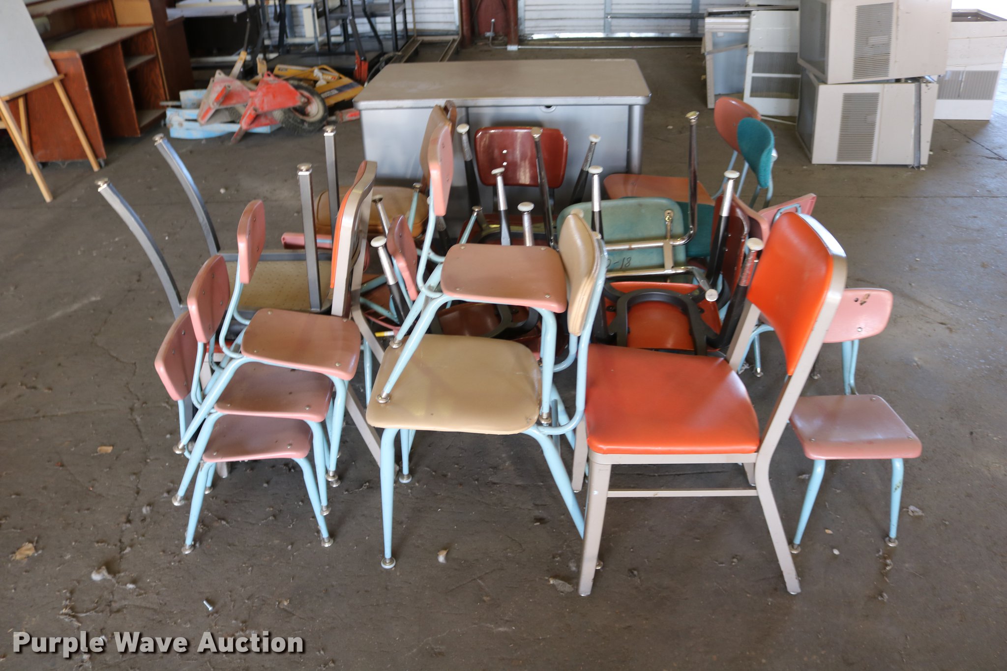 Purple Wave is selling a used Furniture in Kansas. This item is a Furniture with the following: Desk, 45.5"L x 30 1/4"W x 29"H, (23) chairs