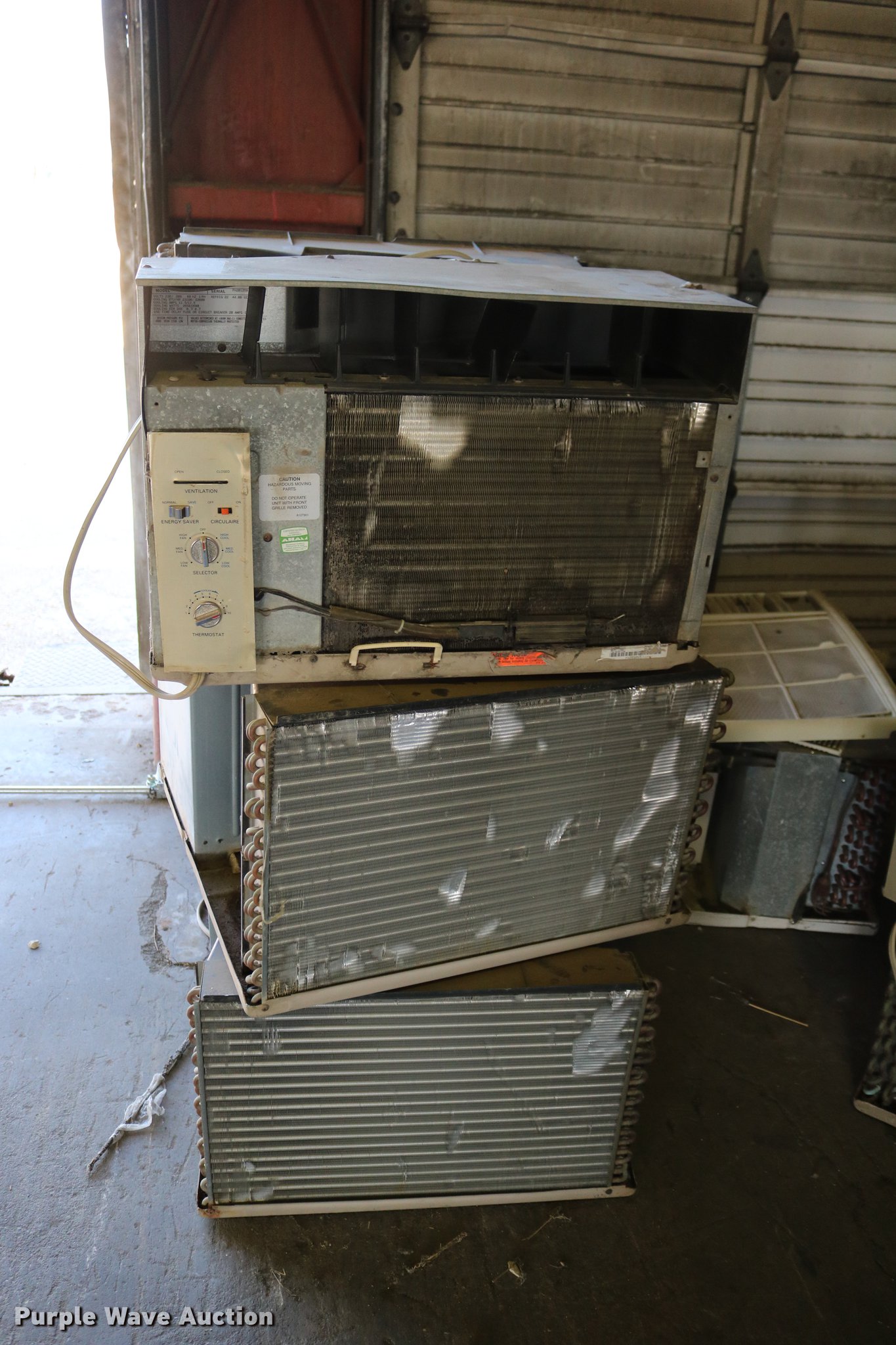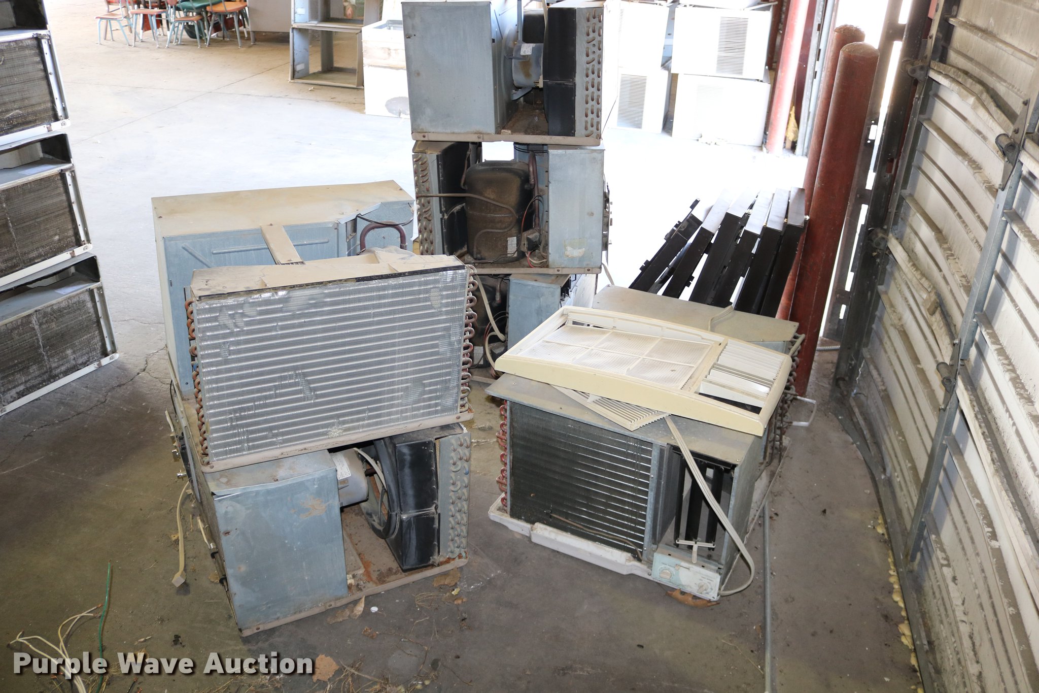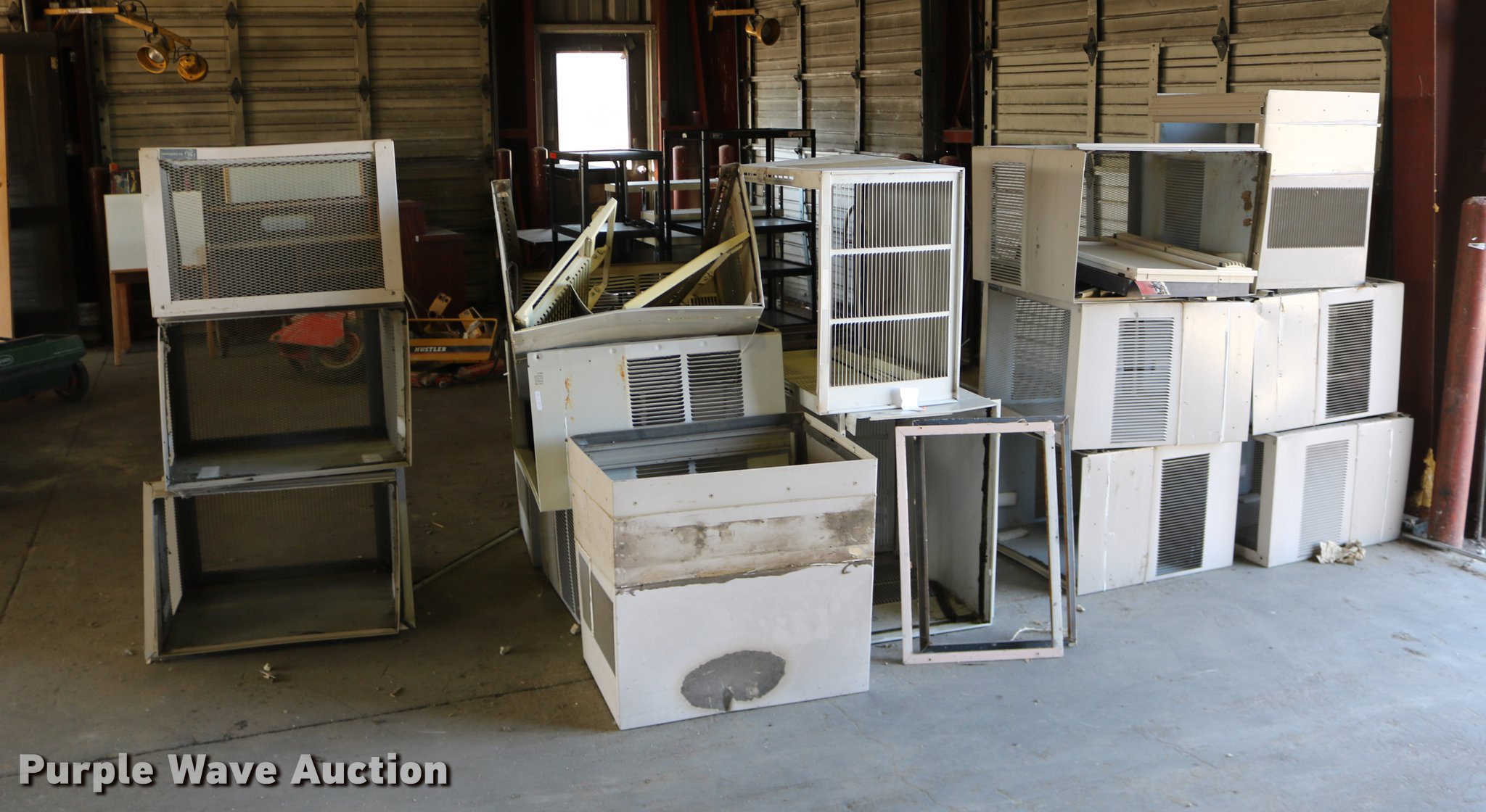 Purple Wave is selling a used Appliances in Kansas. This item is a (14) GE window air conditioning units with the following: (7) model AVM24DBR1, (7) model AEM23DAR1, 220V, 23,500 BTU, Casings, Unknown operating condition
