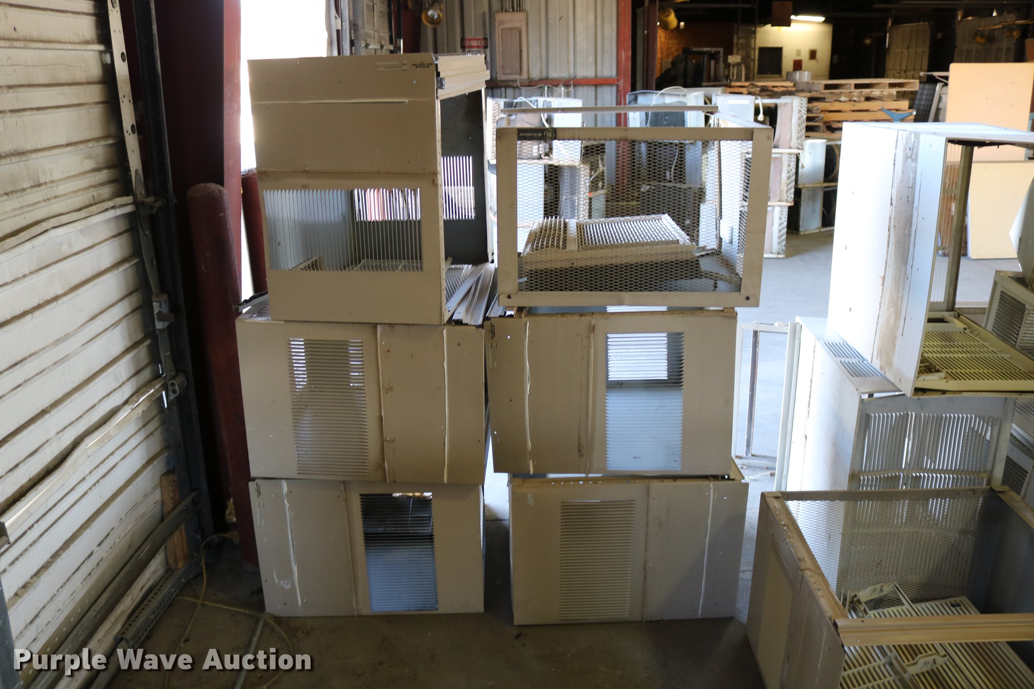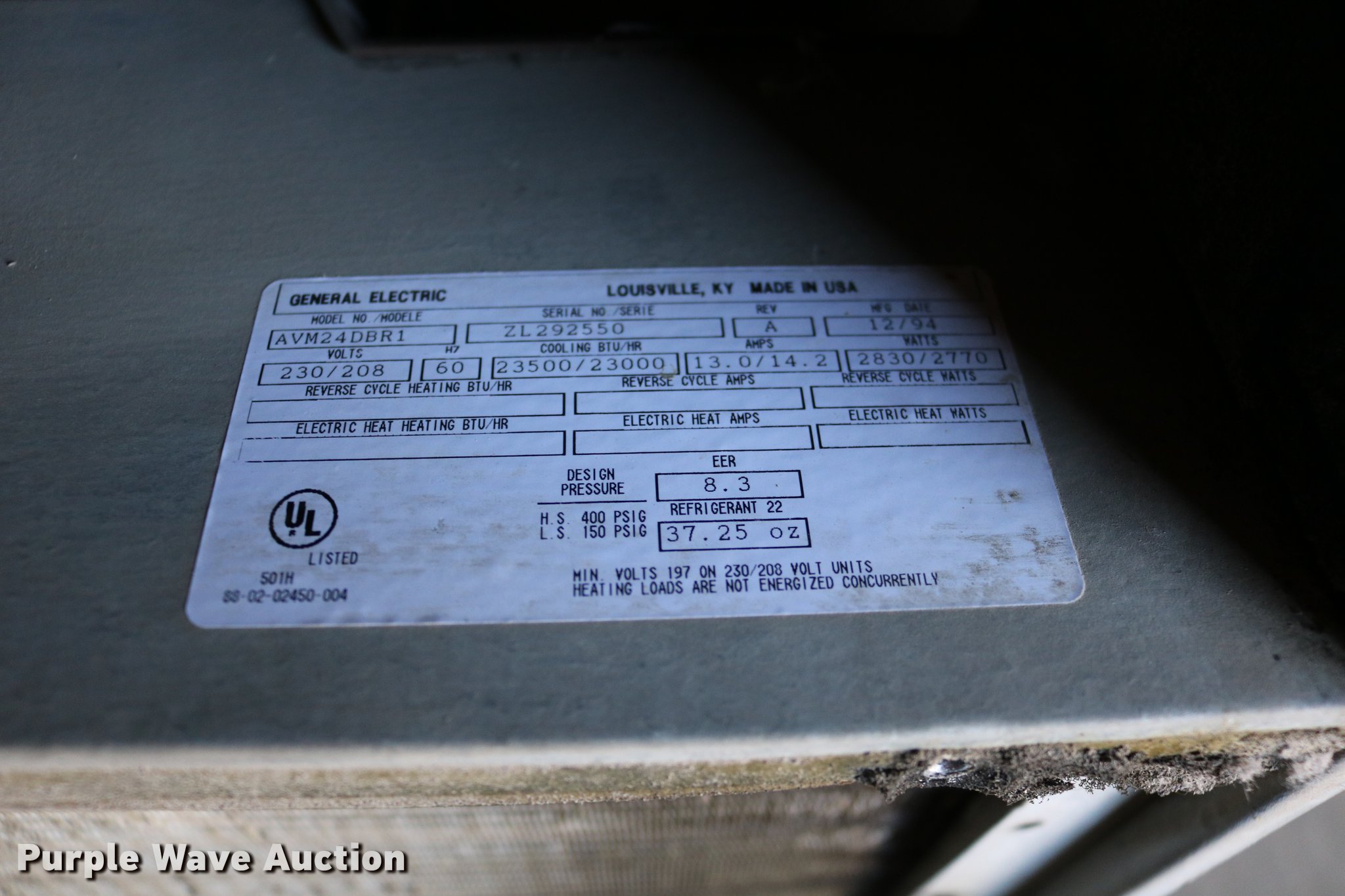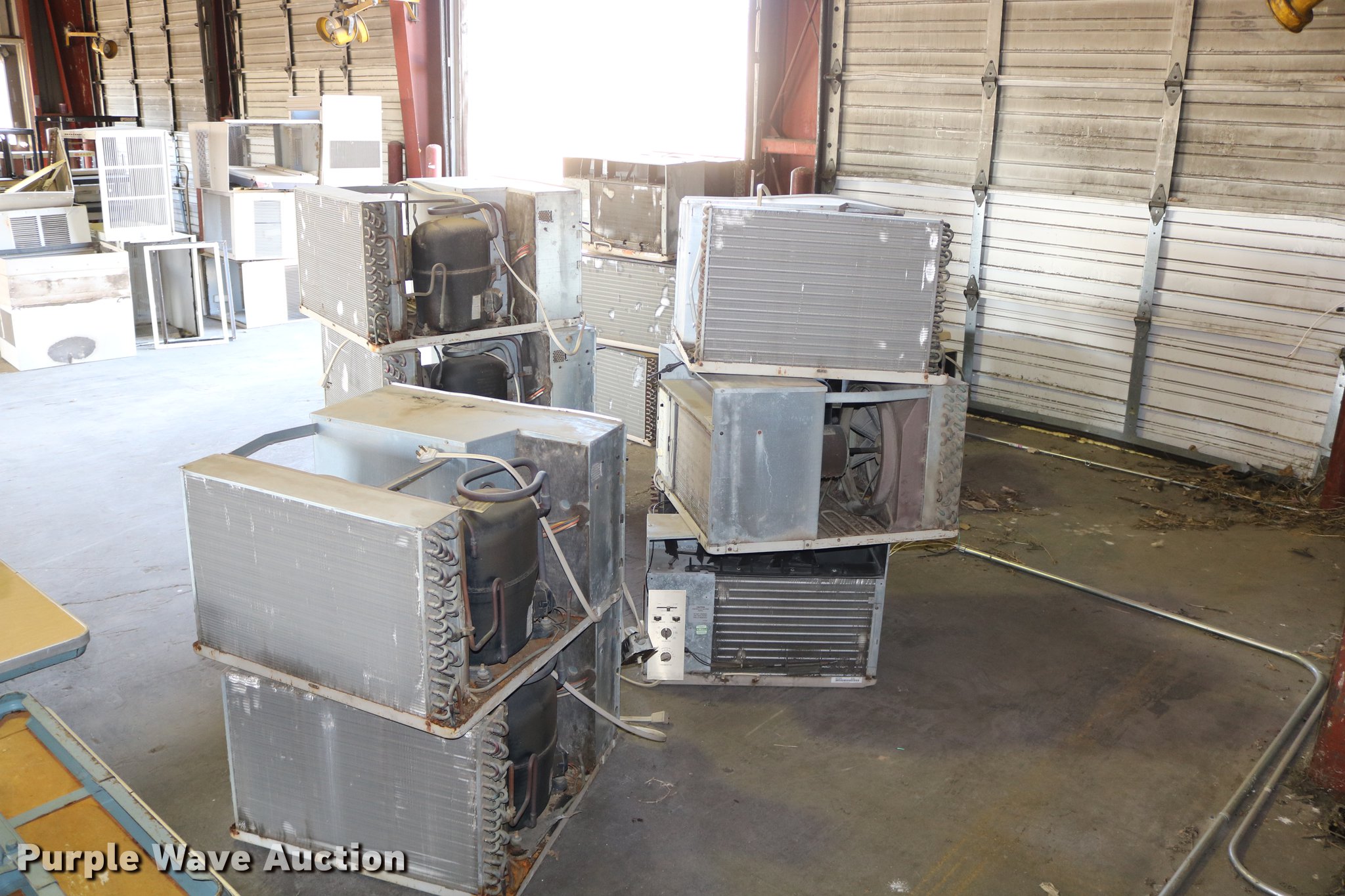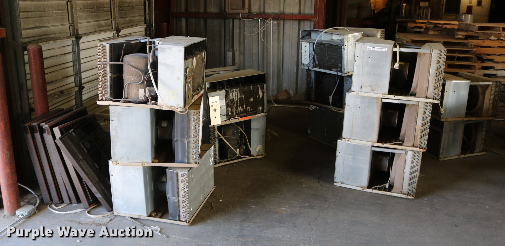 Purple Wave is selling a used Appliances in Kansas. This item is a (14) GE window air conditioning units with the following: (7) model AVM24DBR1, (7) model AEM23DAR1, 220V, 23,500 BTU, Casings, Unknown operating condition