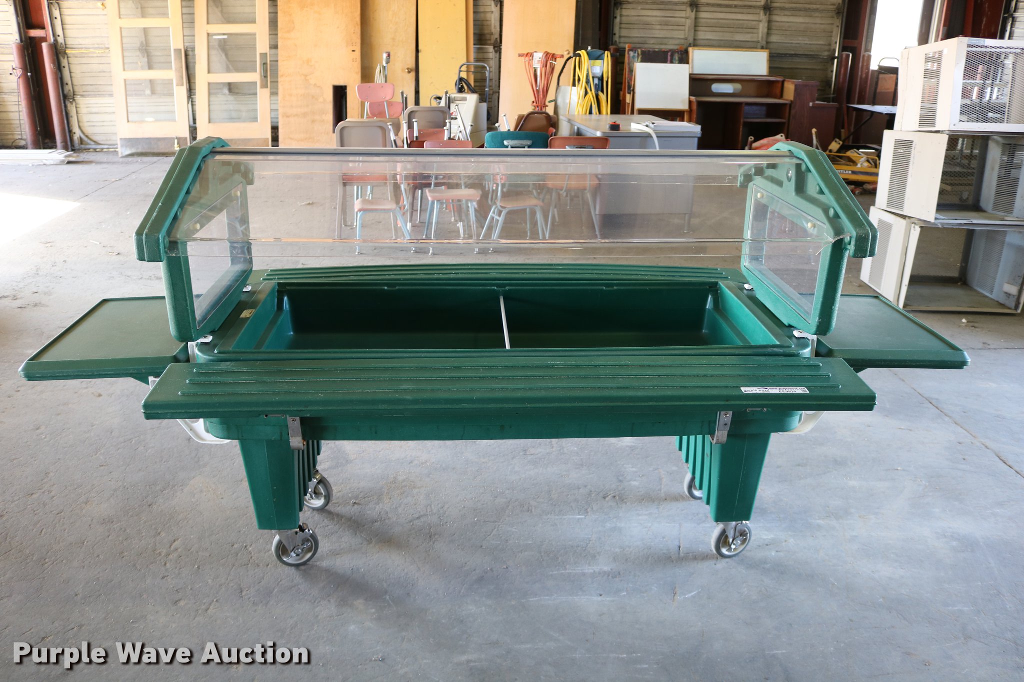 Purple Wave is selling a used Restaurant Equip. in Kansas. This item is a Cambro food bar with the following: 94.5'L overall, 63.5"L x 41"W x 45"H, 26"H tray slide, Ice drain, Caster wheels, Wheel locks