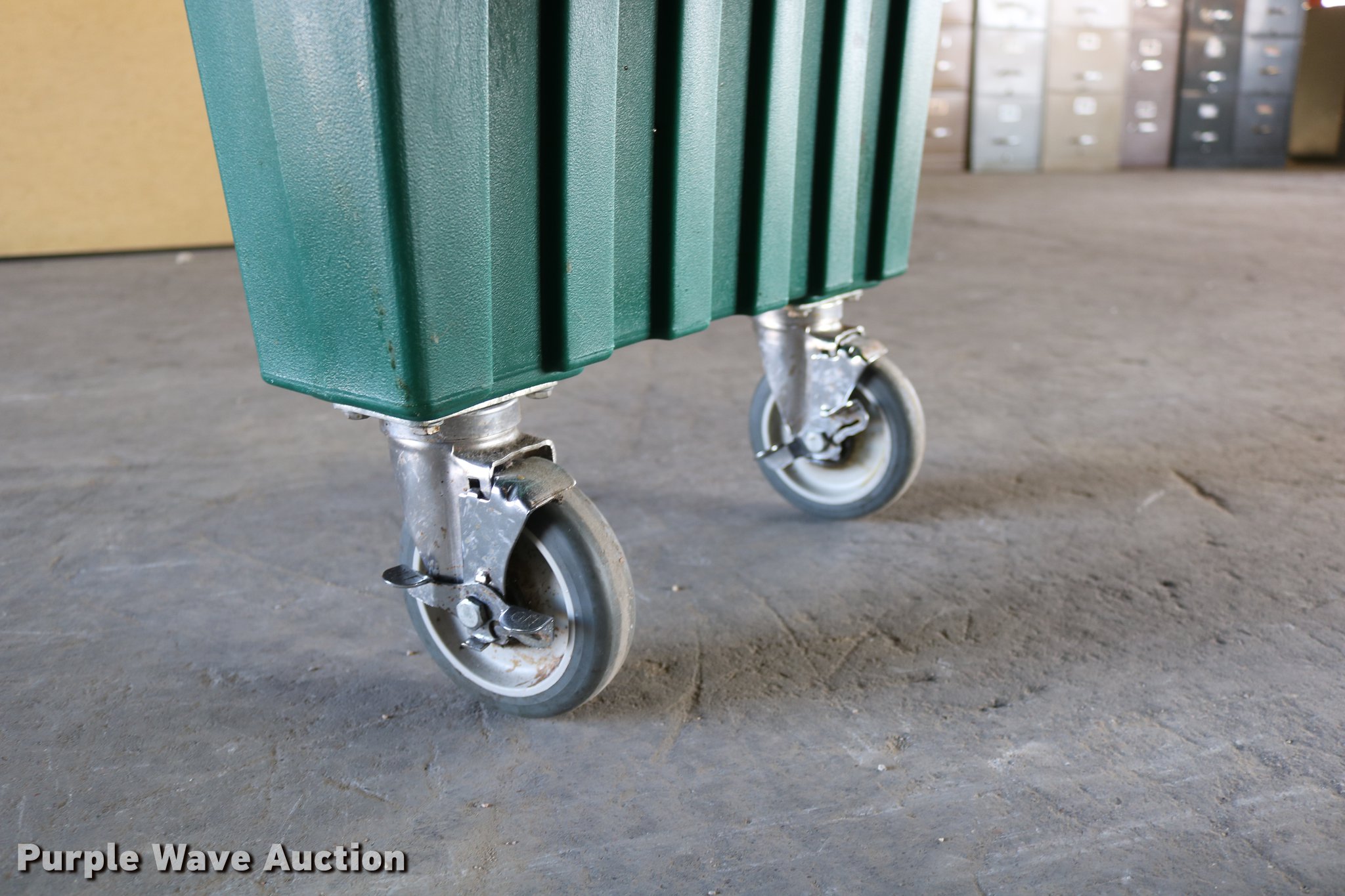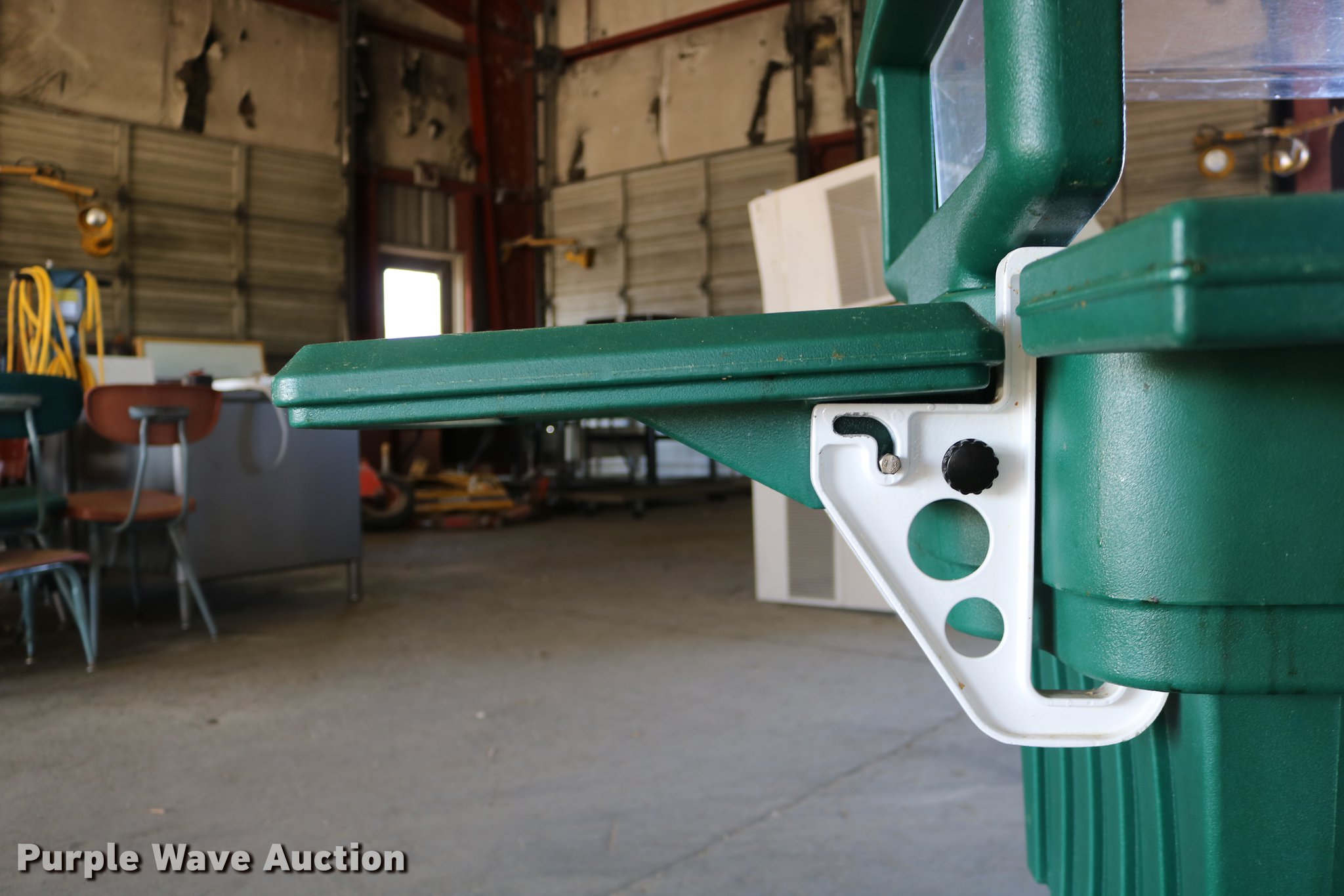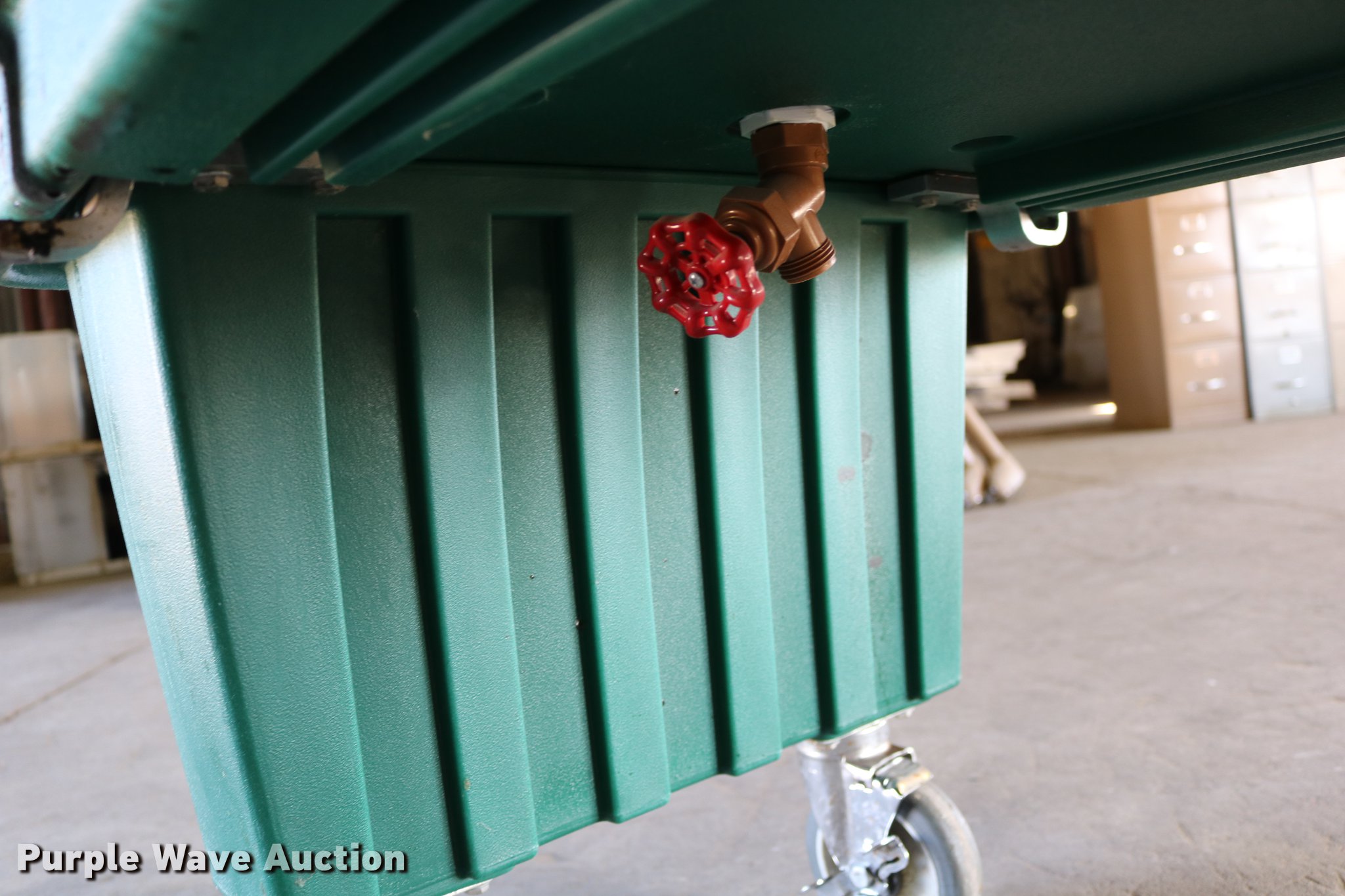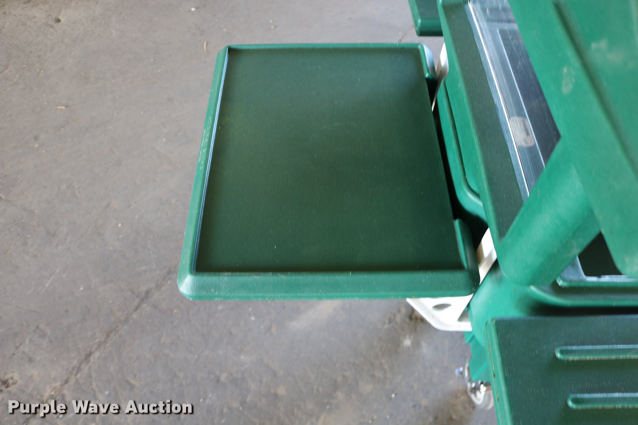Cambro food bar. 94.5'L overall, 63.5"L x 41"W x 45"H, 26"H tray slide, Ice drain, Caster wheels, Wheel locks. Storage Building. 1500 N Mulberry St. Abilene, KS 67410