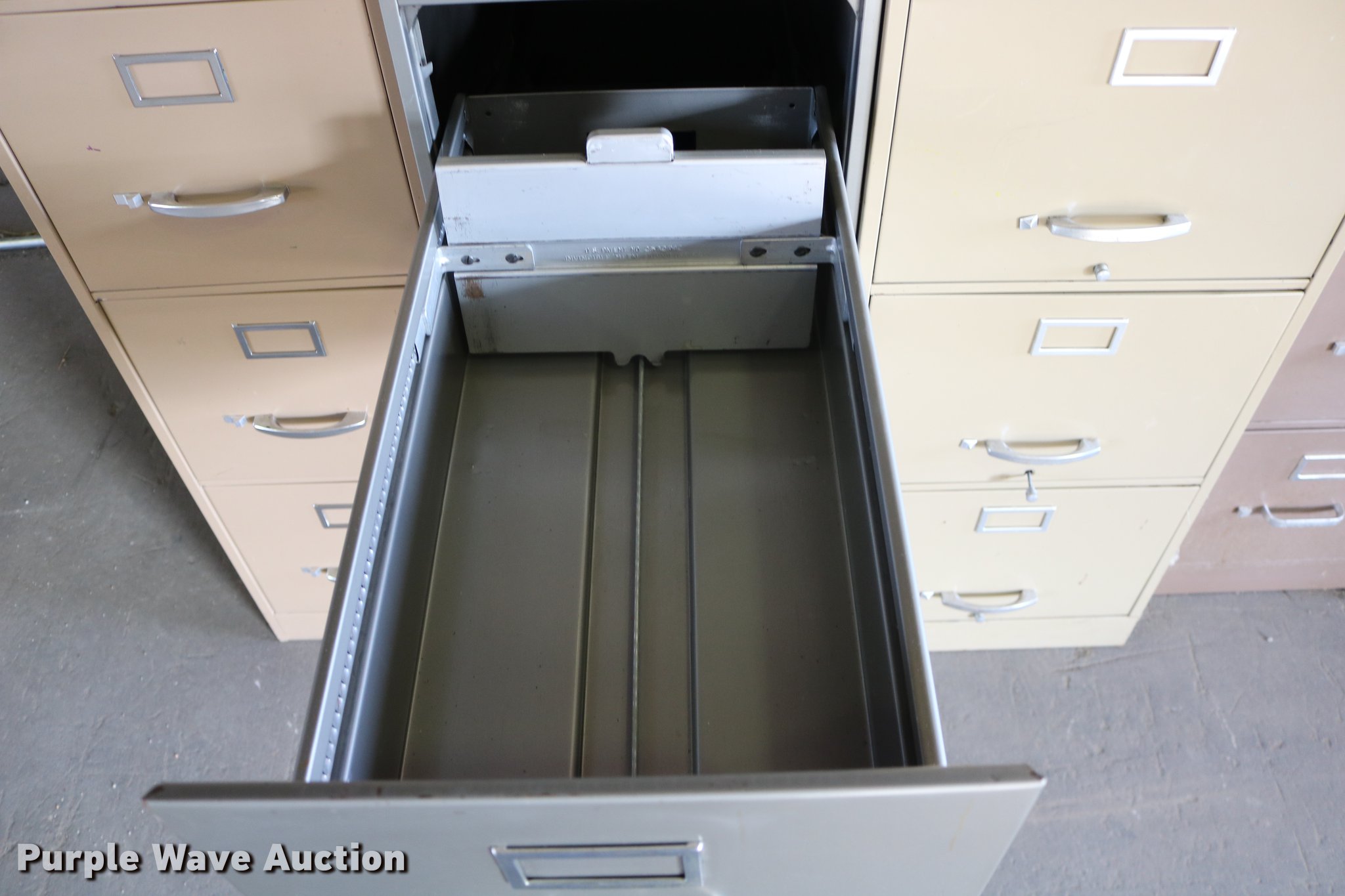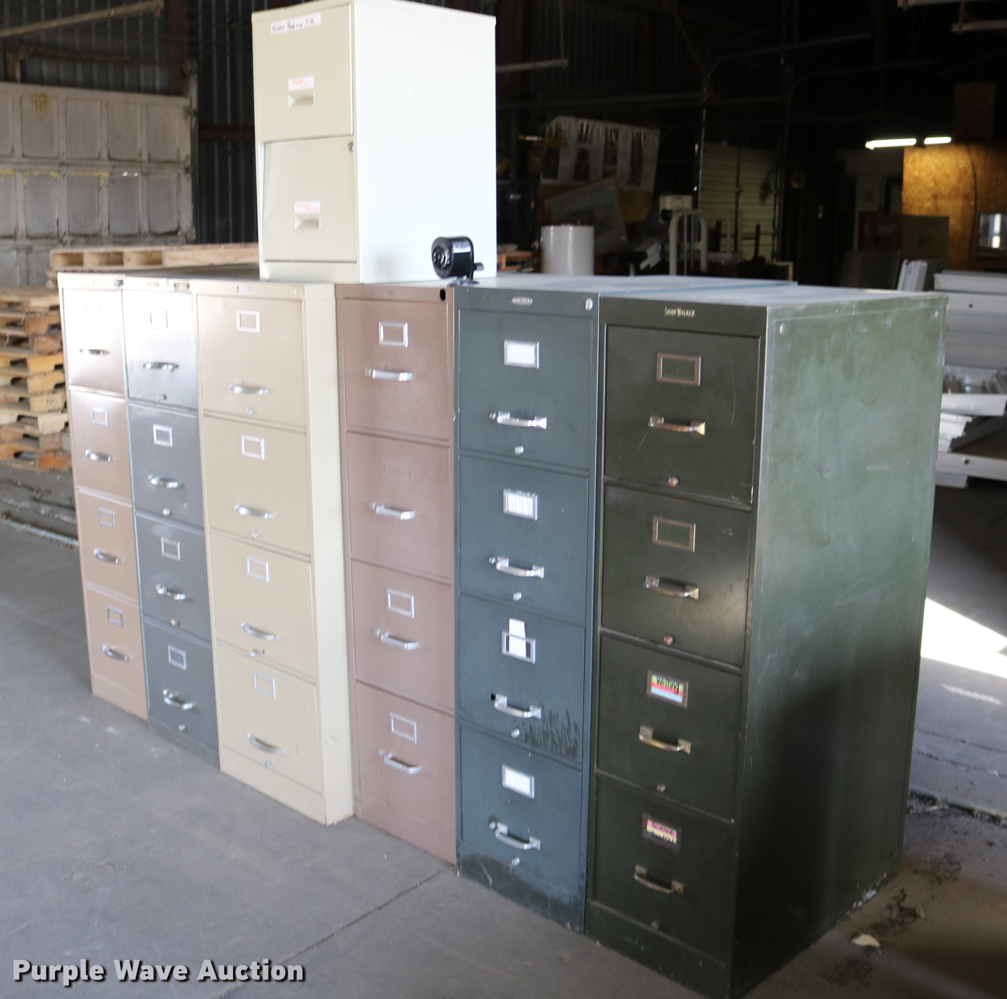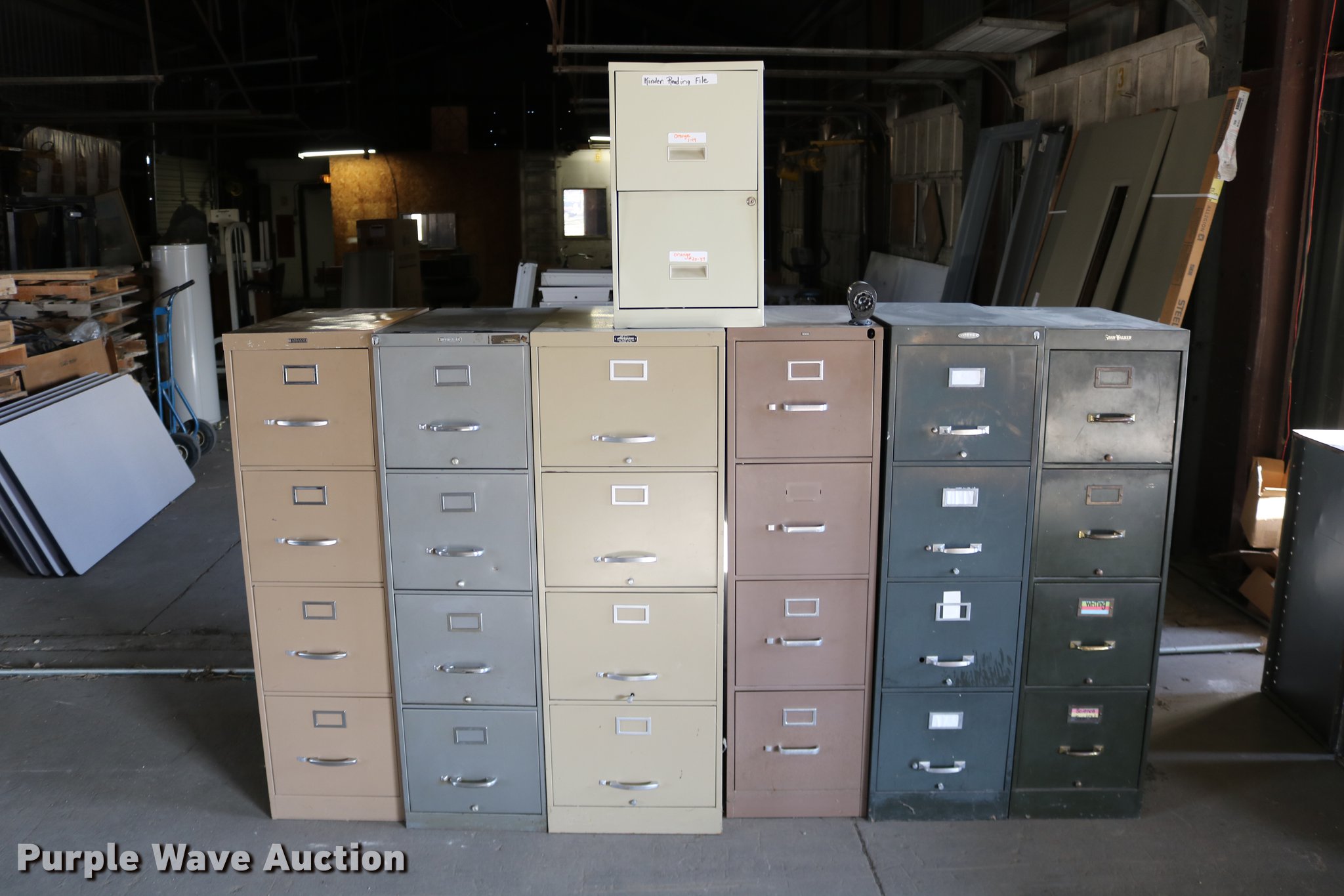 Purple Wave is selling a used Furniture in Kansas. This item is a (7) filing cabinets with the following: (6) four drawer, Two drawer, One unit is locked, No keys