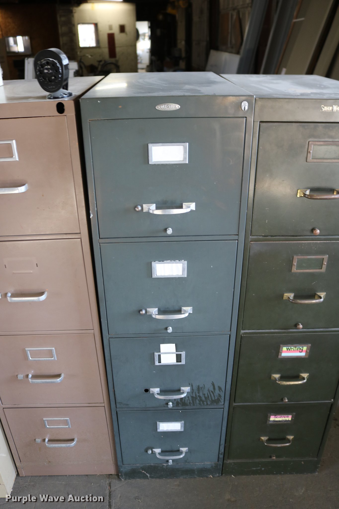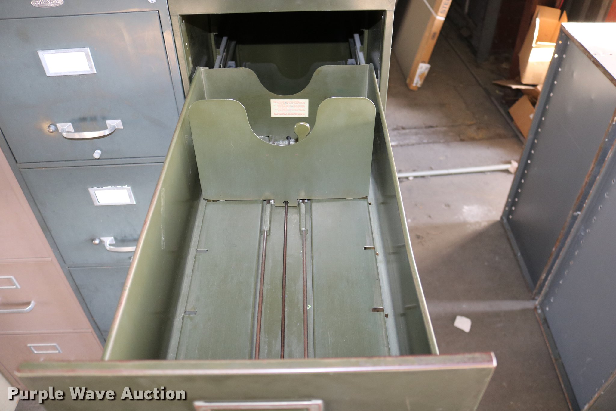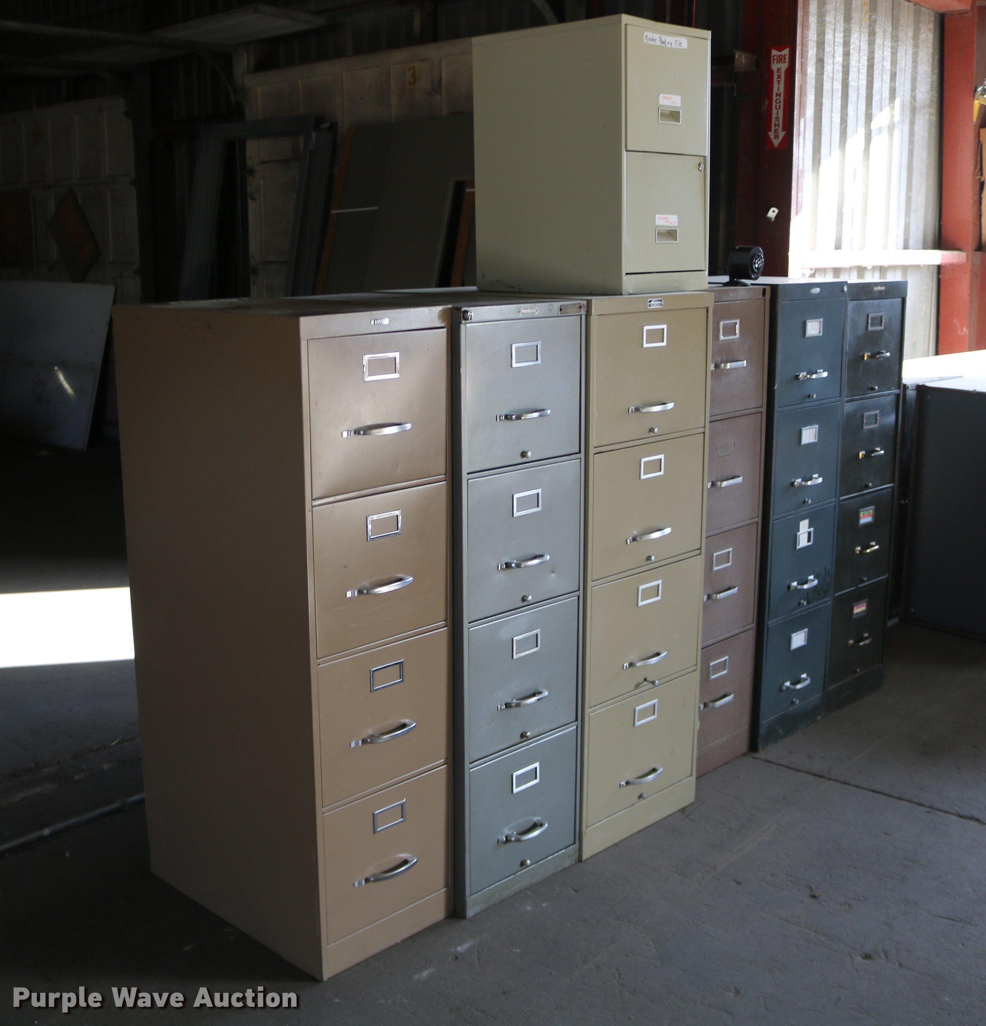 Purple Wave is selling a used Furniture in Kansas. This item is a (7) filing cabinets with the following: (6) four drawer, Two drawer, One unit is locked, No keys