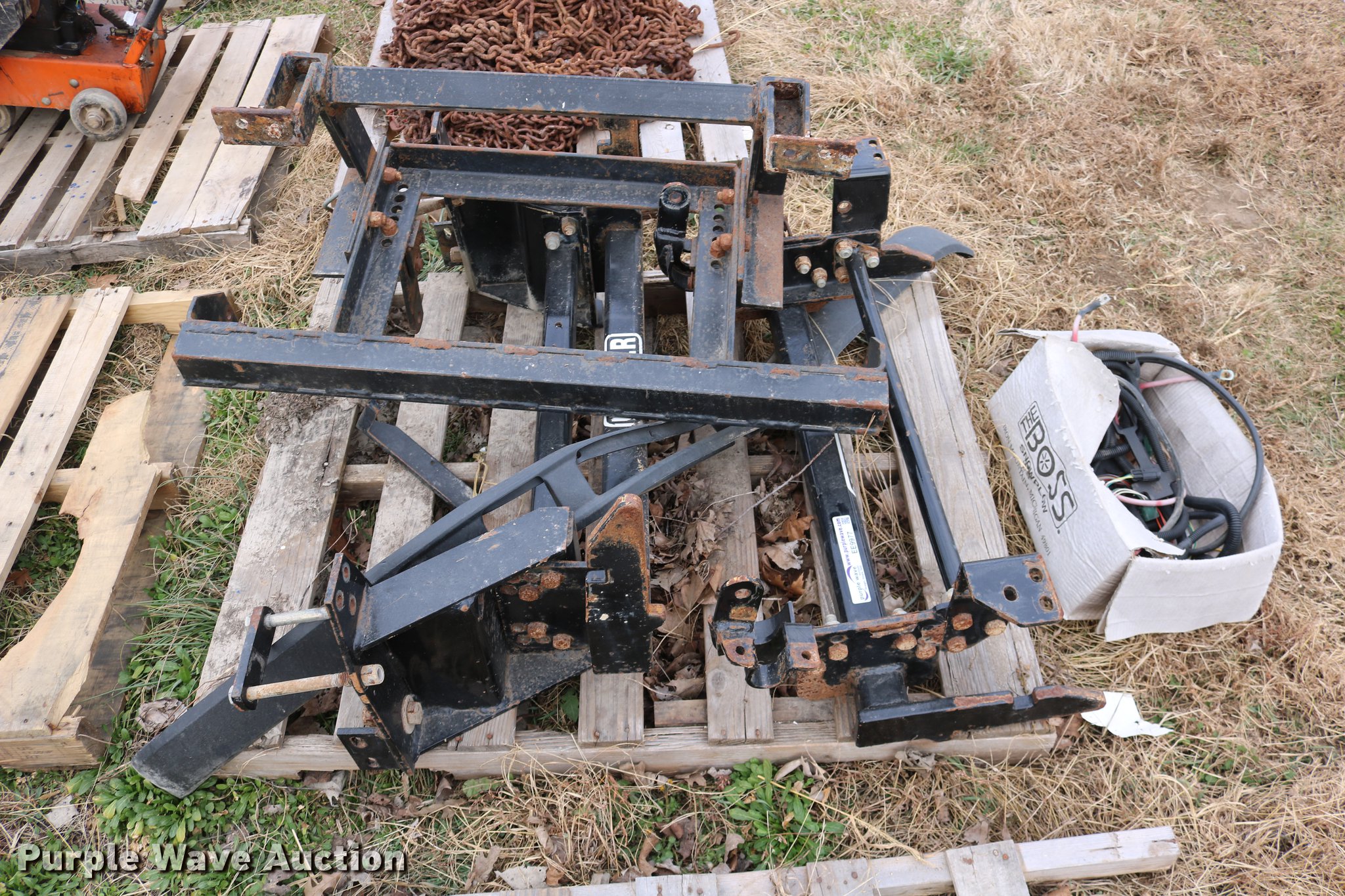 Purple Wave is selling a used Automotive Parts or Acces. in Kansas. This item is a Automotive parts with the following: (2) Hiniker snow plow mounting brackets, Fits Ford F250, Snow chains, Parts may be missing