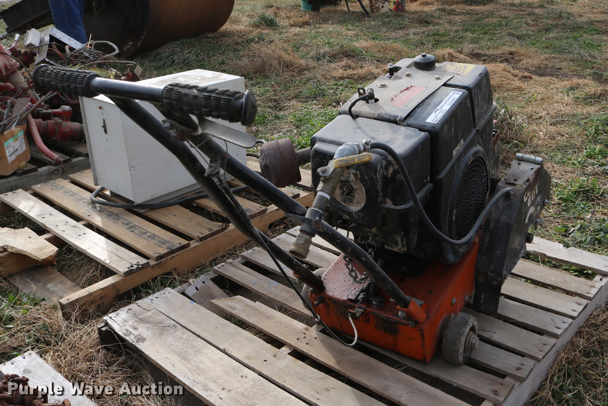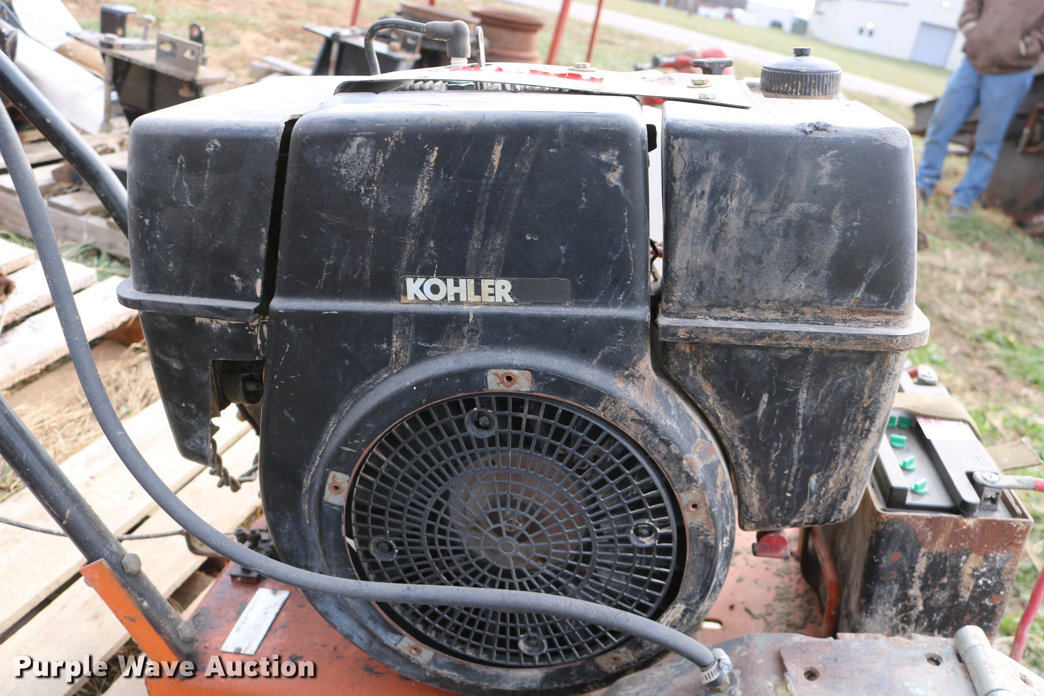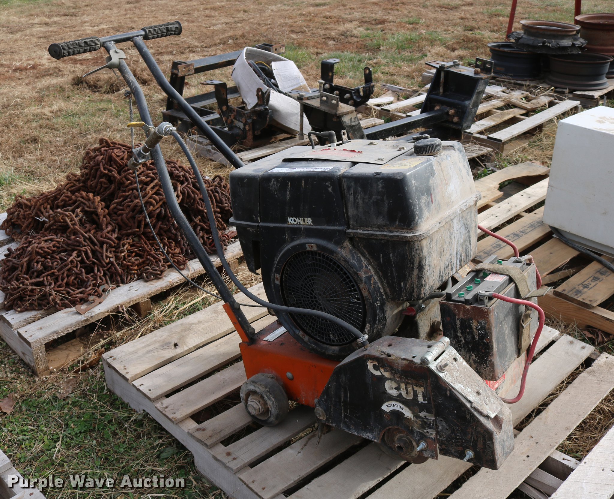 Concrete saw. Model CC1100, Kohler gas engine, No blade, Unknown operating condition, Serial CC1114K-000364. 1100 Orange St. Baldwin City, KS 66006