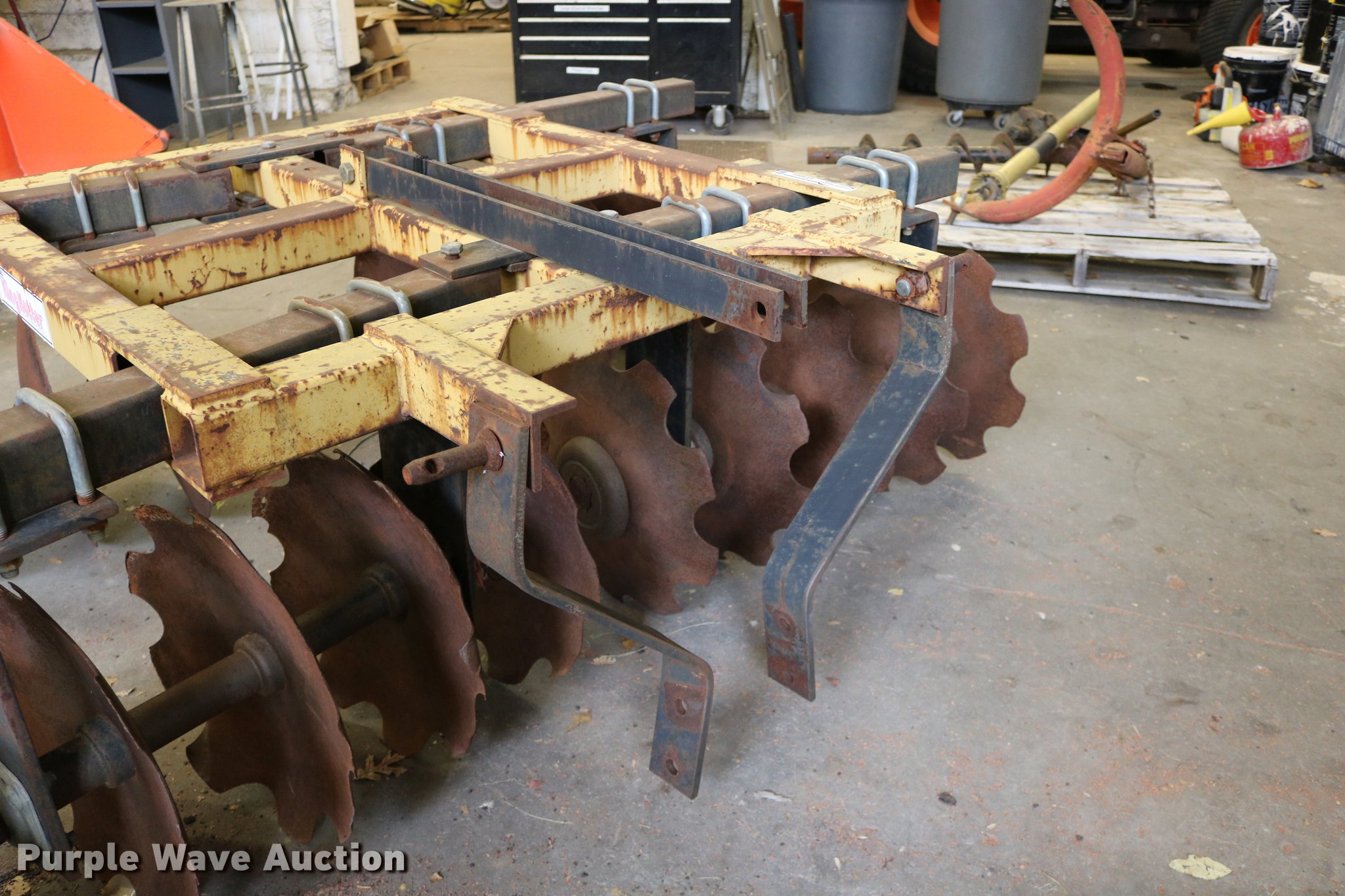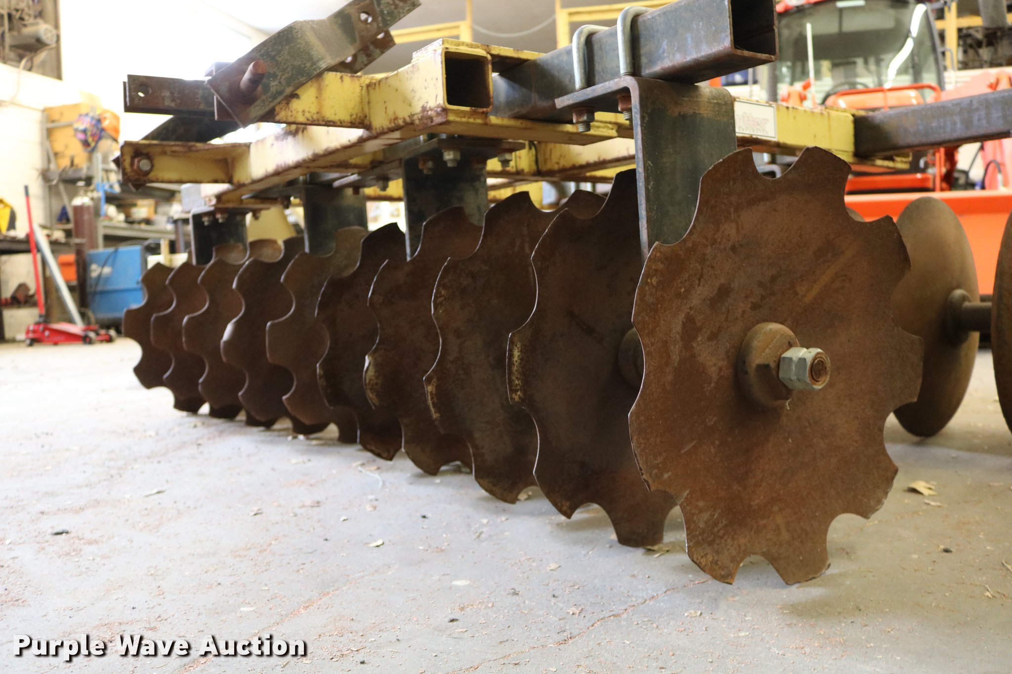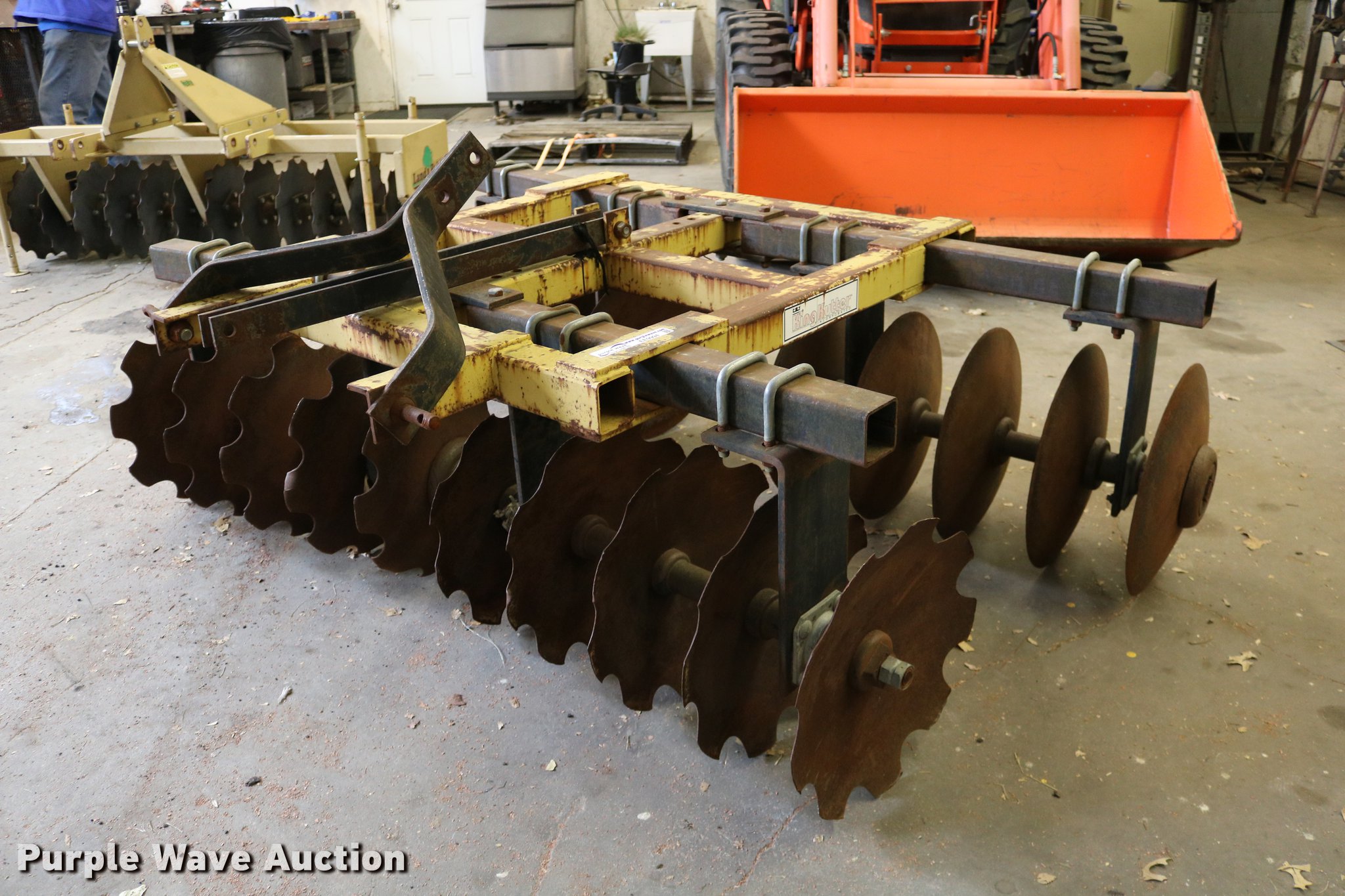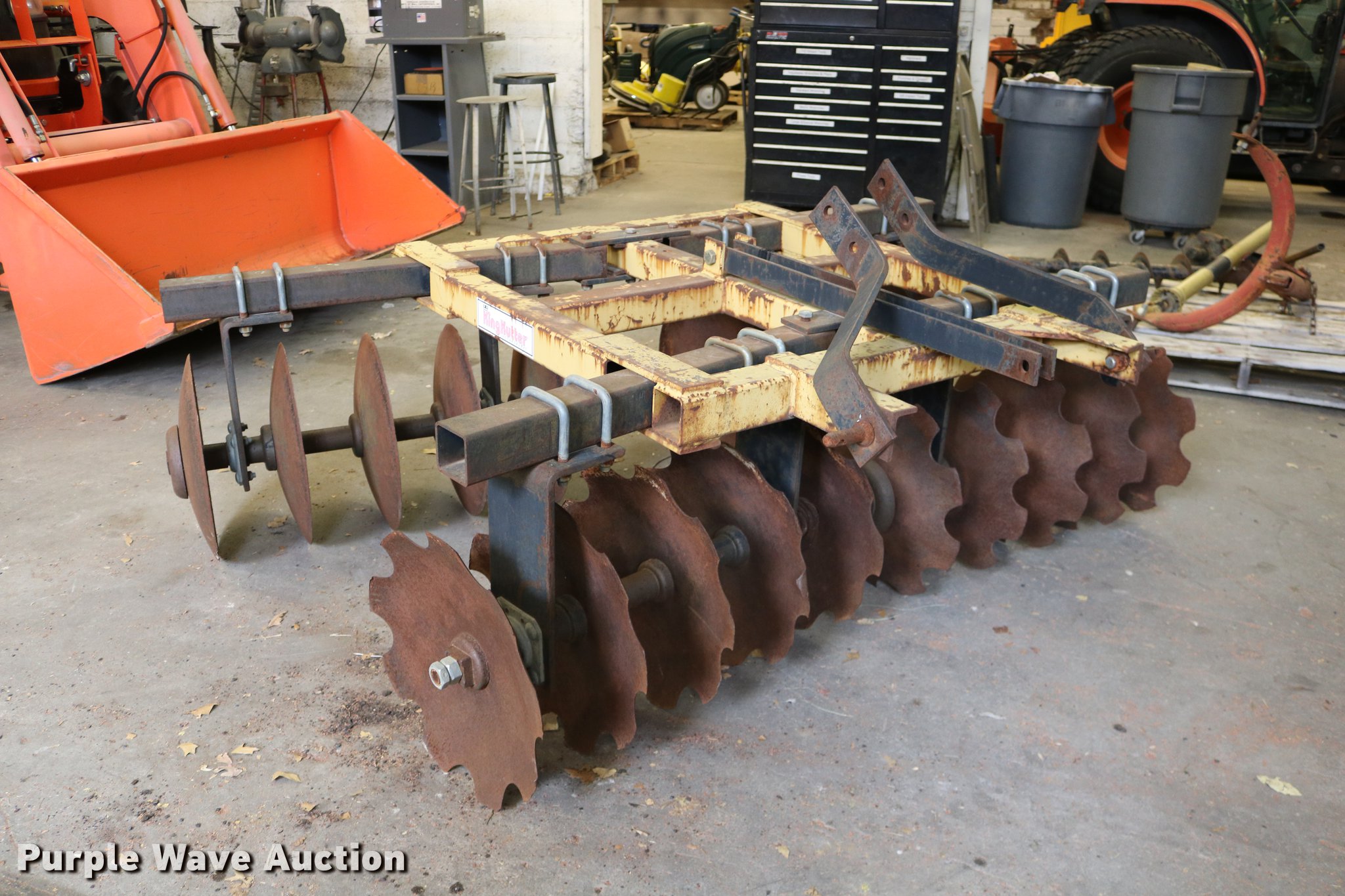 Purple Wave is selling a used Disk in Kansas. This item is a King Kutter disk with the following: 7'W, 17 3/4" front scalloped disks, 17 3/4" diameter rear disk blades, Three point