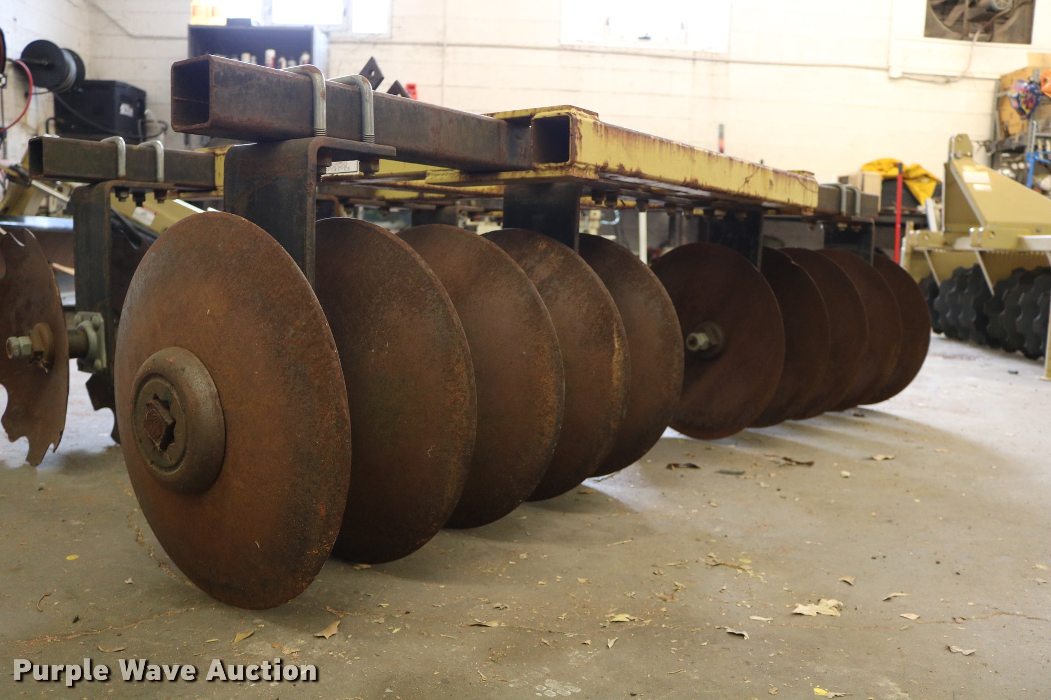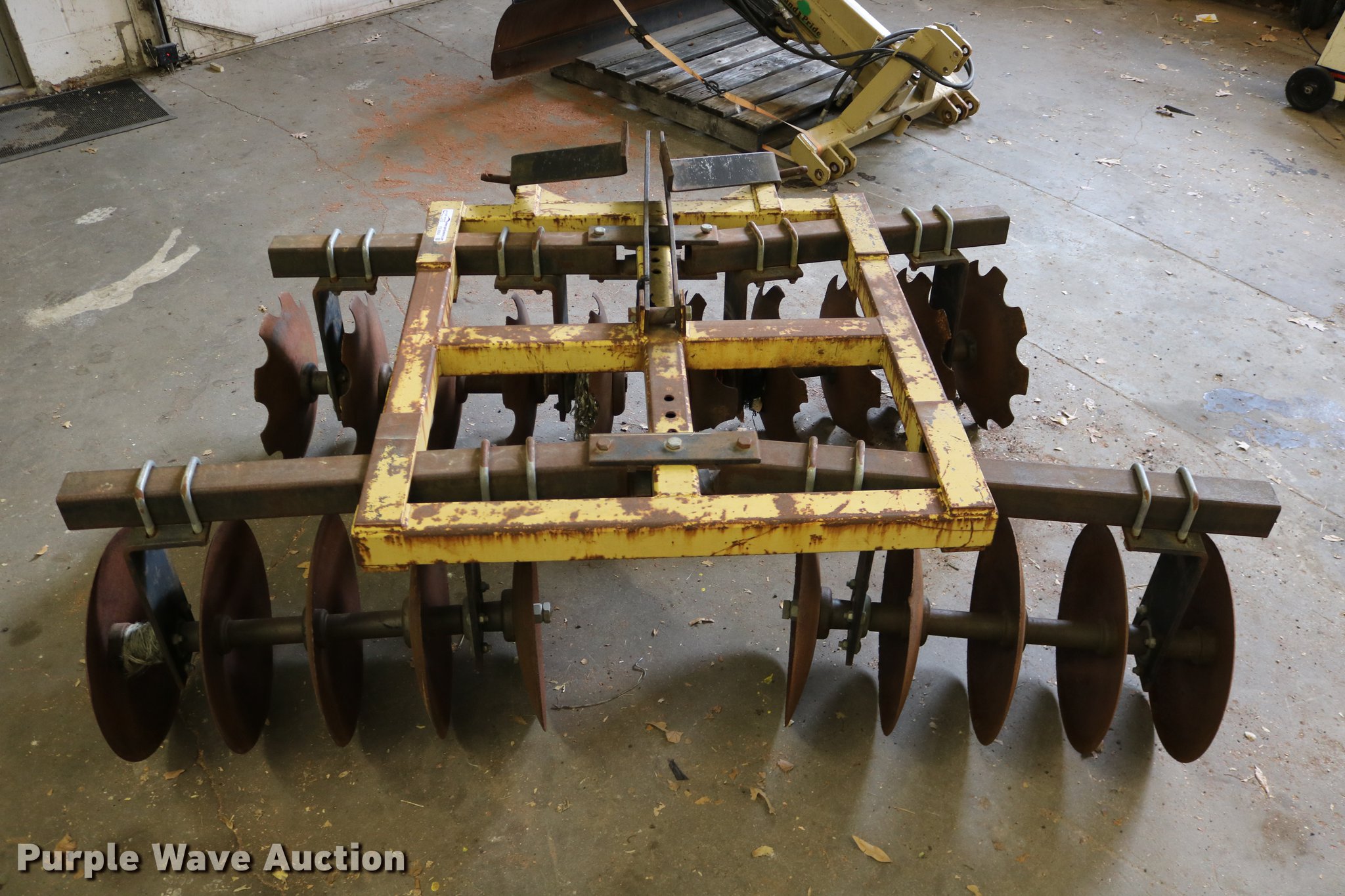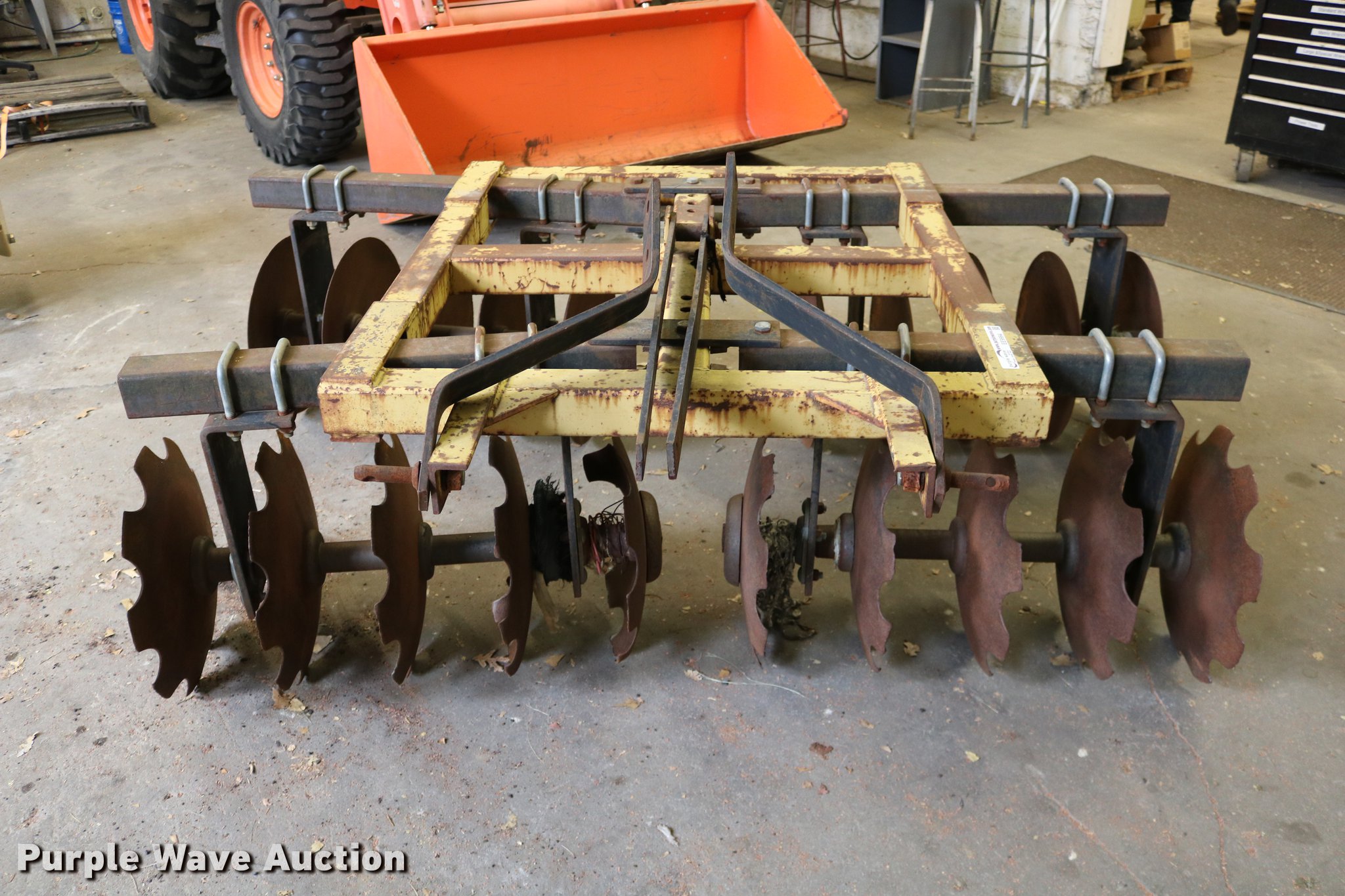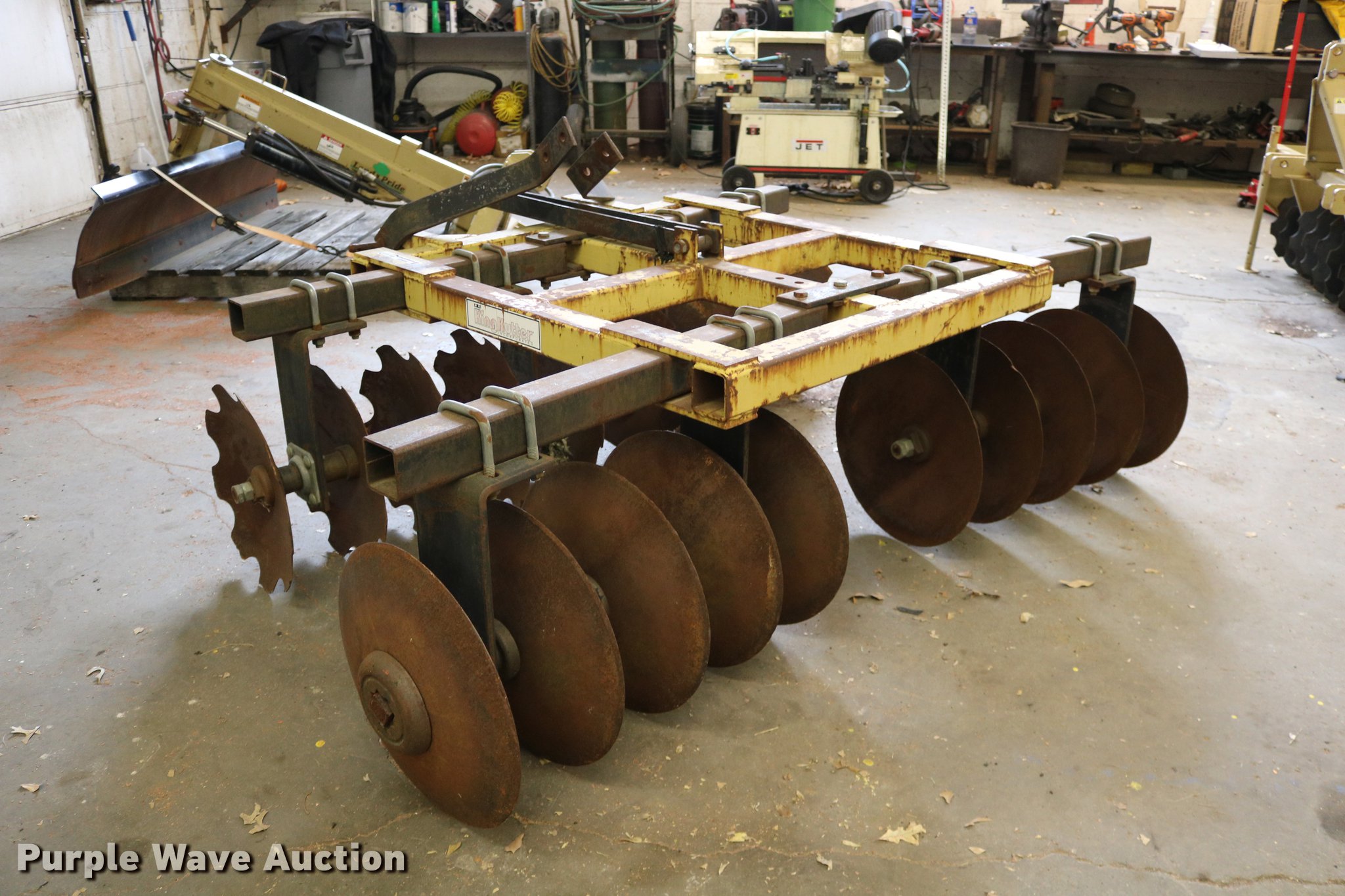 Purple Wave is selling a used Disk in Kansas. This item is a King Kutter disk with the following: 7'W, 17 3/4" front scalloped disks, 17 3/4" diameter rear disk blades, Three point