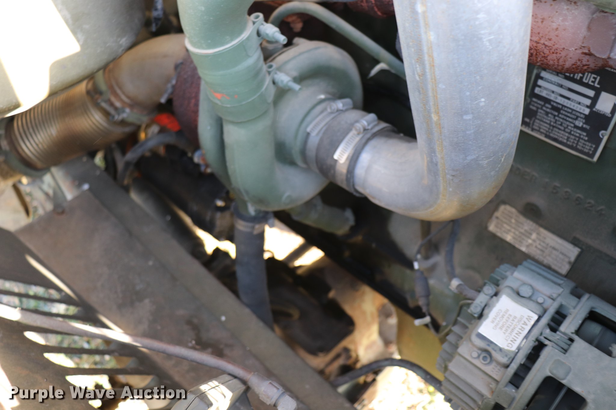 Purple Wave is selling a used Flat Bed Truck in Kansas. This item is a 1974 Am General flatbed truck with the following: 1,632 miles on odometer, 1,010 hours on meter, Continental LDT 465 multi-fuel six cylinder turbocharged engine, Five speed manual transmission, Tandem axle, Six wheel drive, Suspension seat, Single front exhaust stack, 147"L x 96"W flatbed, 14" side height, 18" side board height, Single fuel tank, Pin hitch, Spring suspension, Hydraulic brakes, 9.00-20 tires