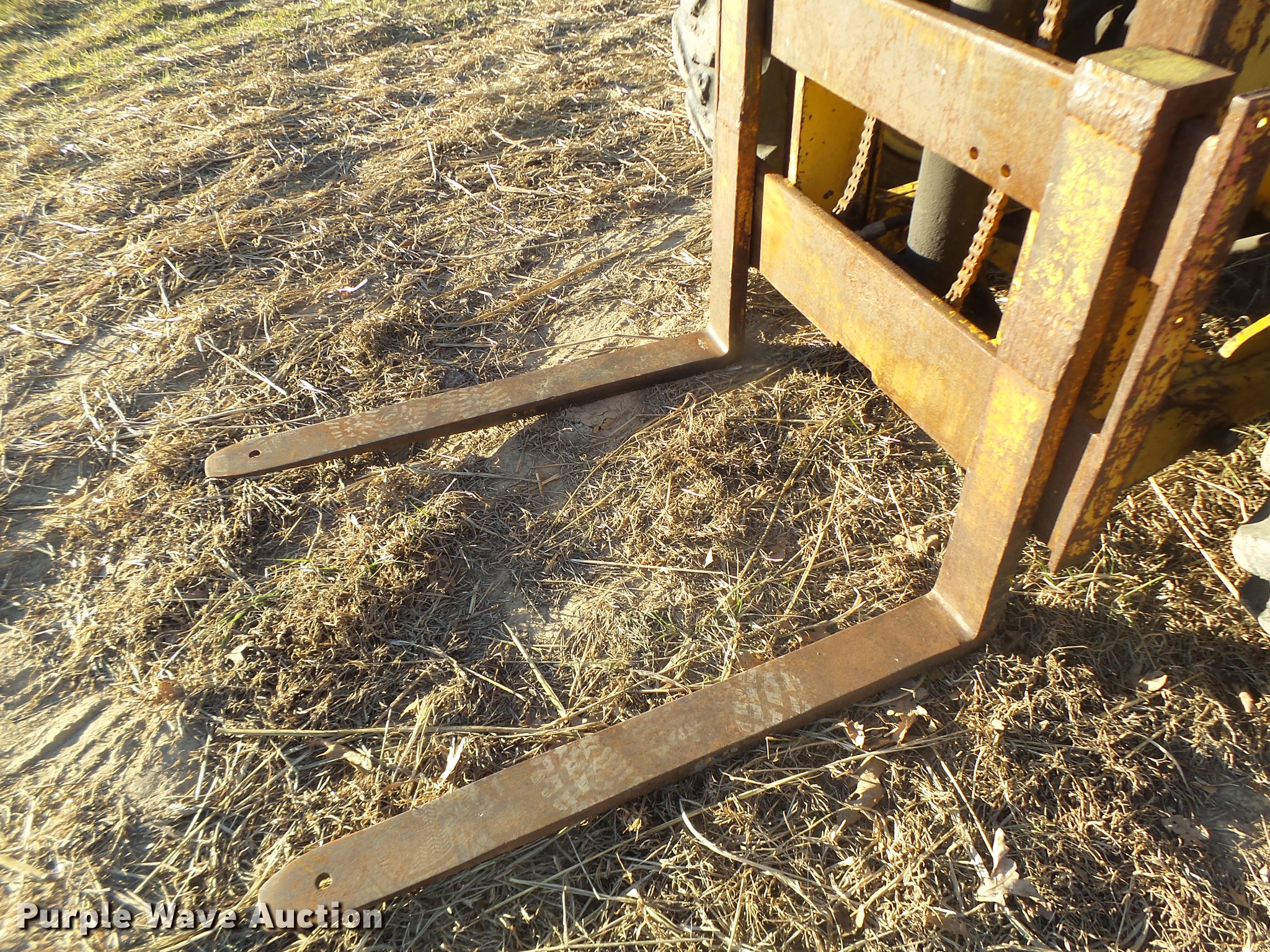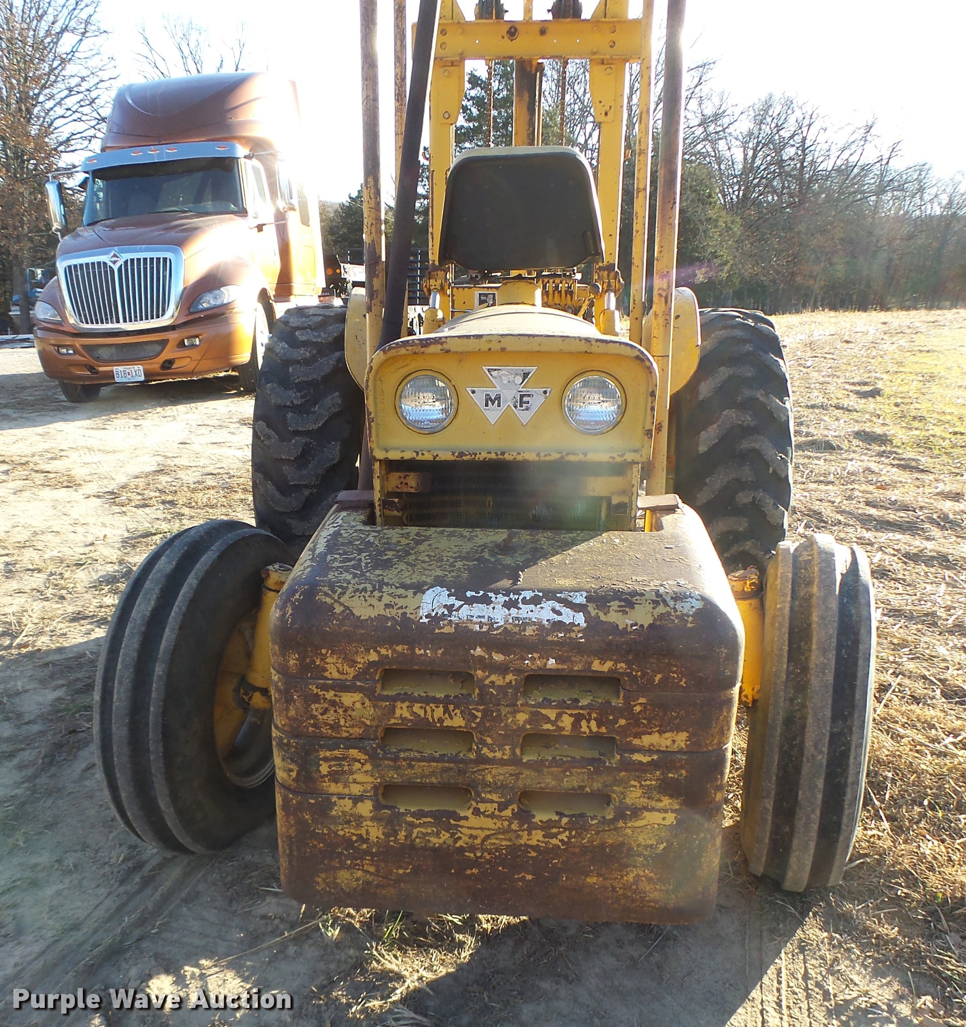 Purple Wave is selling a used Strt. Mast Rough Terr. Forklift in Missouri. This item is a Massey-Ferguson 204 forklift with the following: Four cylinder gas engine, Manual transmission, 3F-3R gears, Canopy, 10' max lift height, 42" fork length, 13.00-24 front tires, 7.50-16 rear tires, Serial 341440