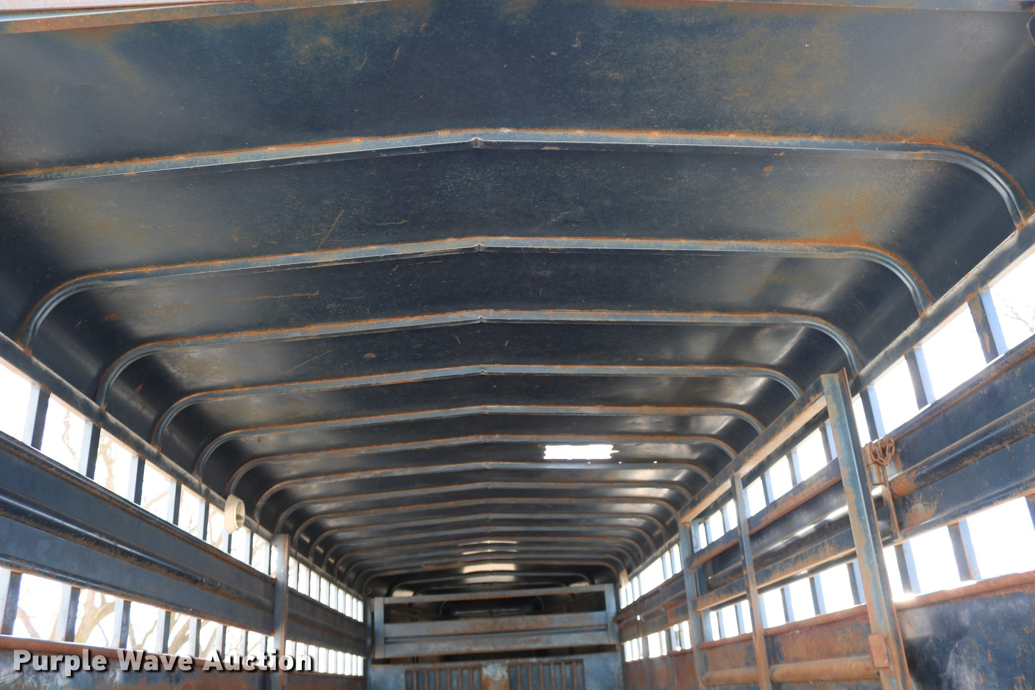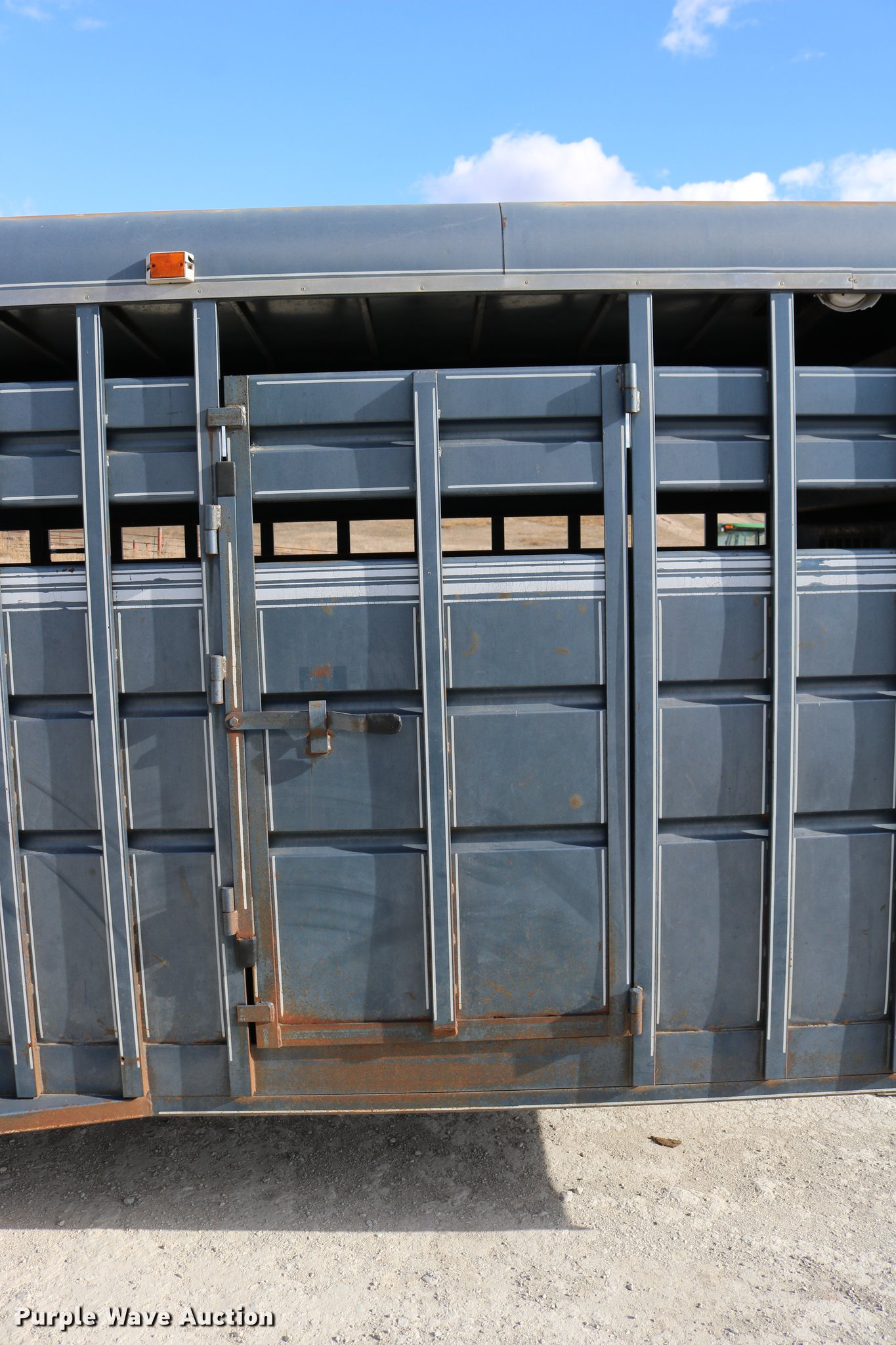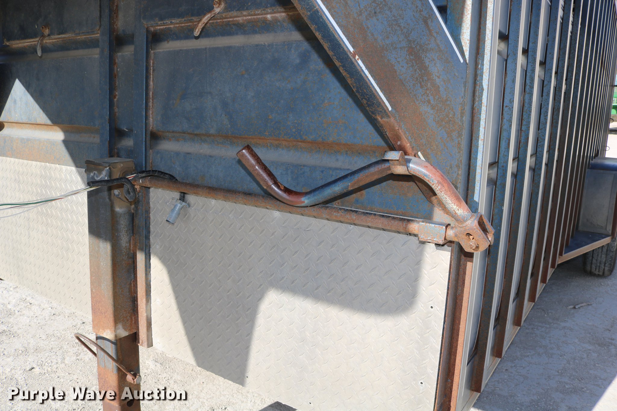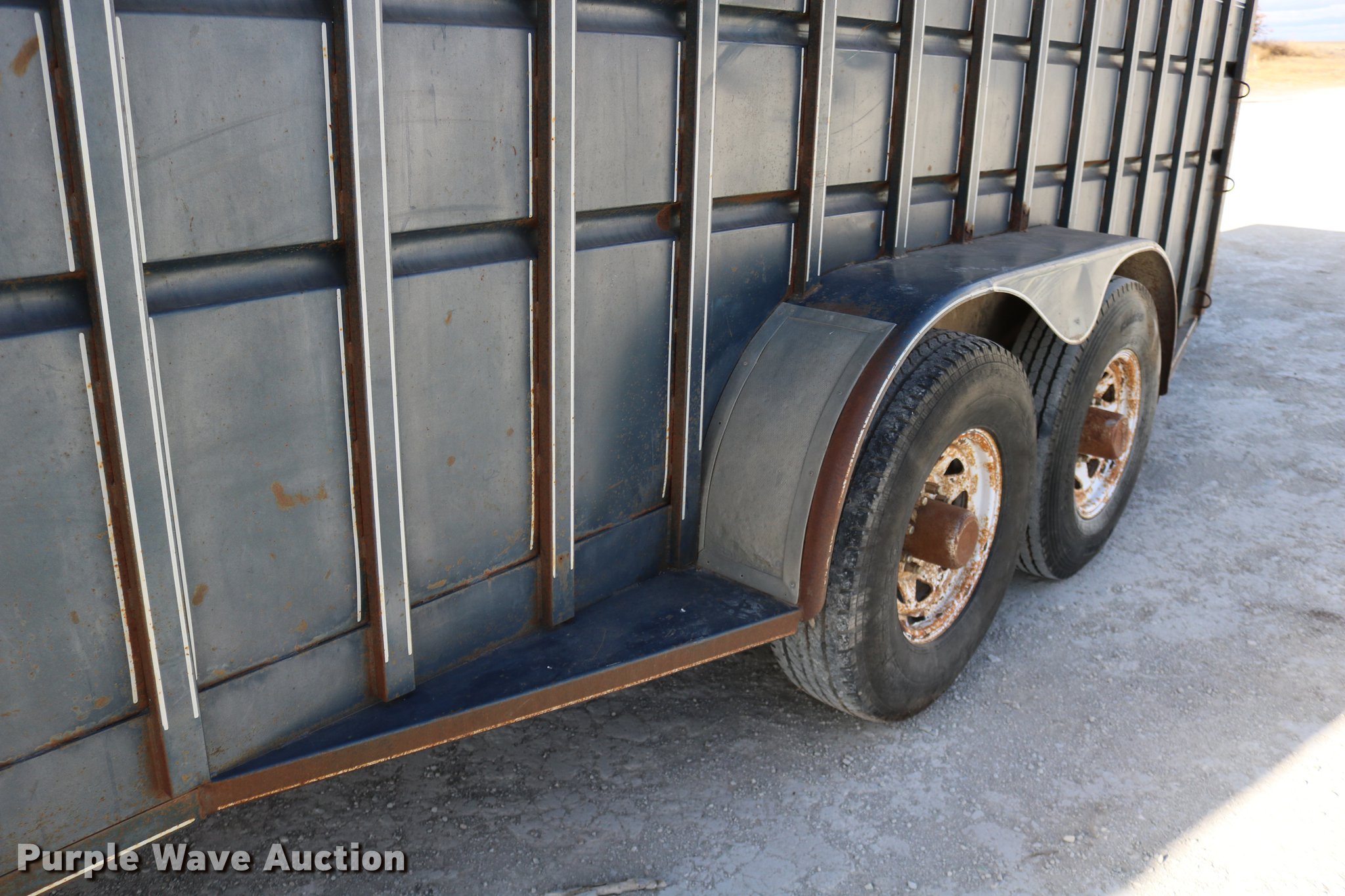Purple Wave is selling a used Livestock Trailer in Kansas. This item is a 1990 Travalong livestock trailer with the following: 27'4"L x 102"W overall, 20'L x 80"W body, 7'L neck, Center gate, Side door, Full swing rear door with slider gate, Ground load, Dock bumper, Spare tire carrier, Steel construction, 2 5/16" gooseneck hitch, Single leg landing gear, Torsion spring suspension, Electric brakes, Tandem axle, Steel wheels, 235/85R16 tires, 7.50R16 tires, GVWR 14,500 lbs, GAWR 7,000 lbs, Loose wires on brakes, Non-operational electric brakes