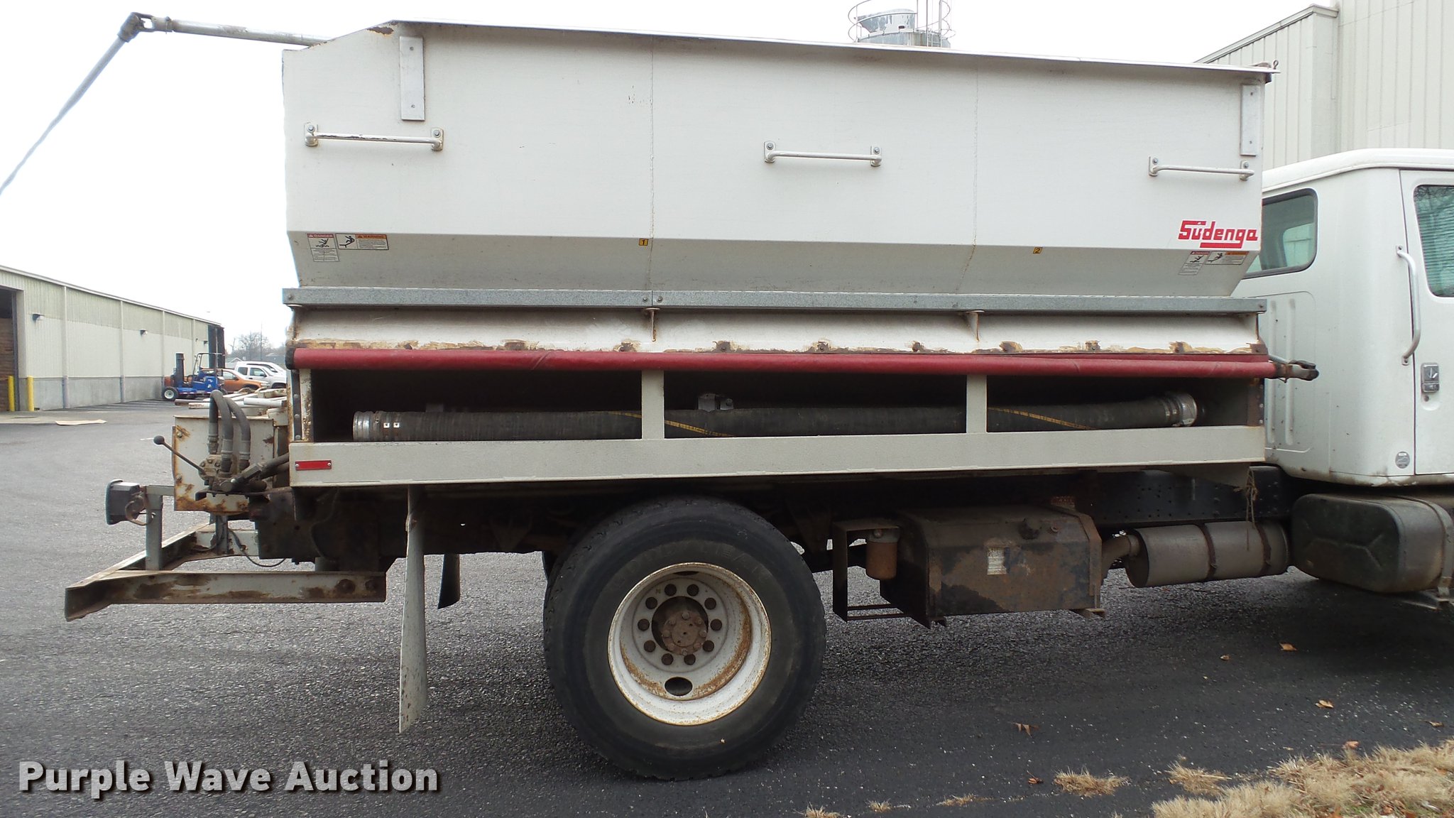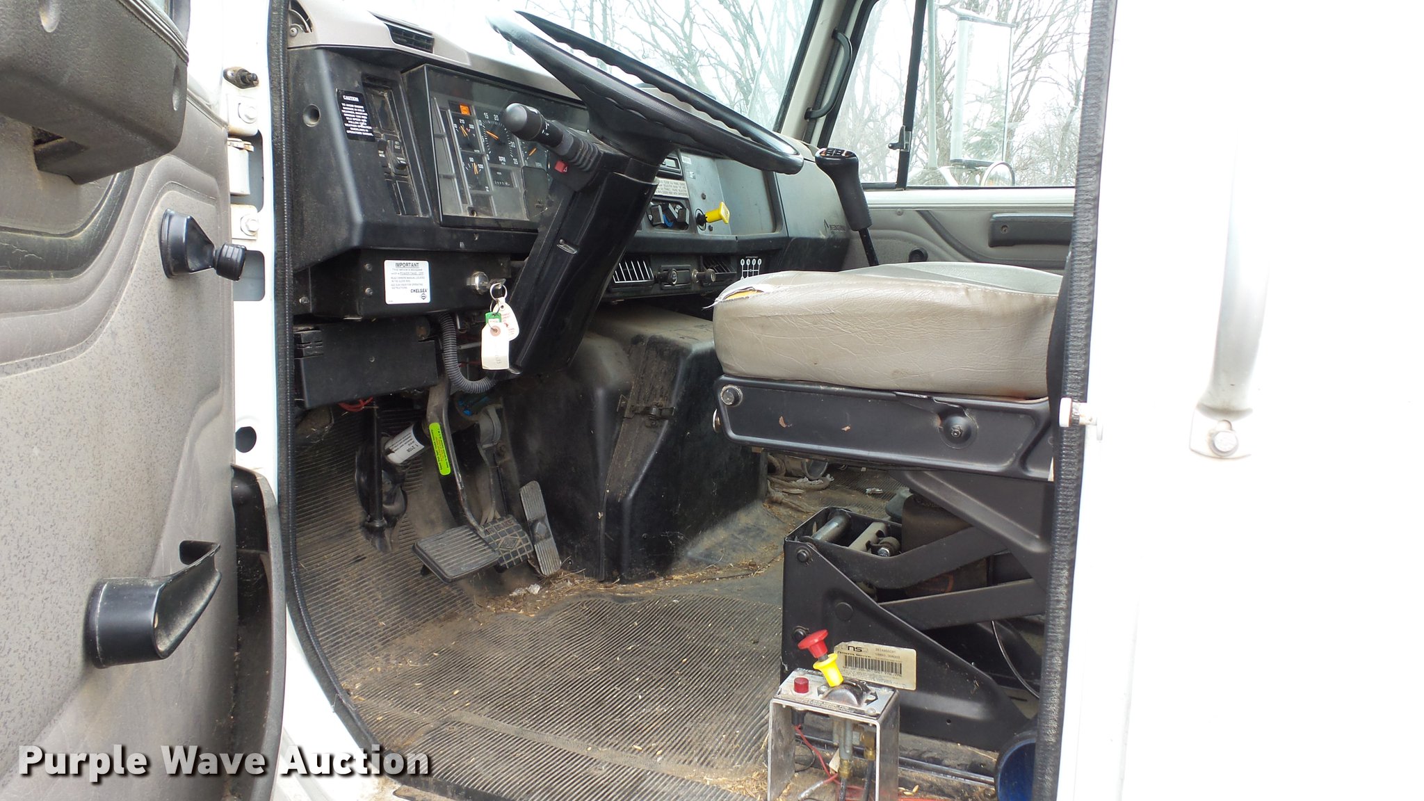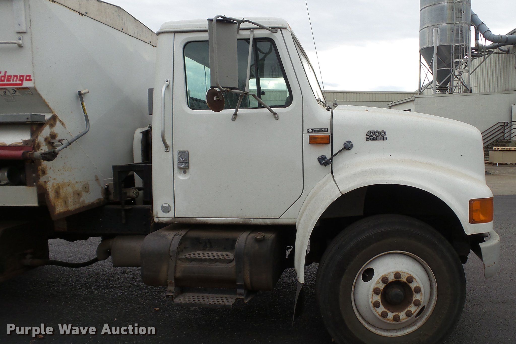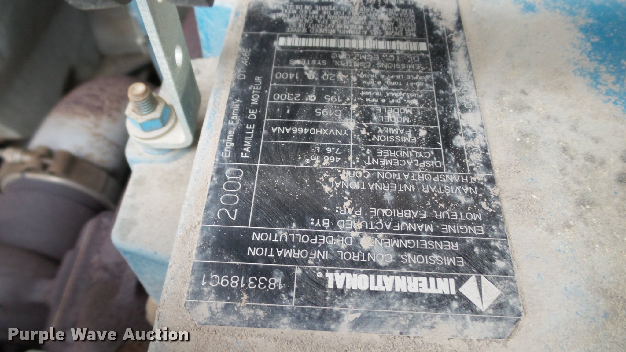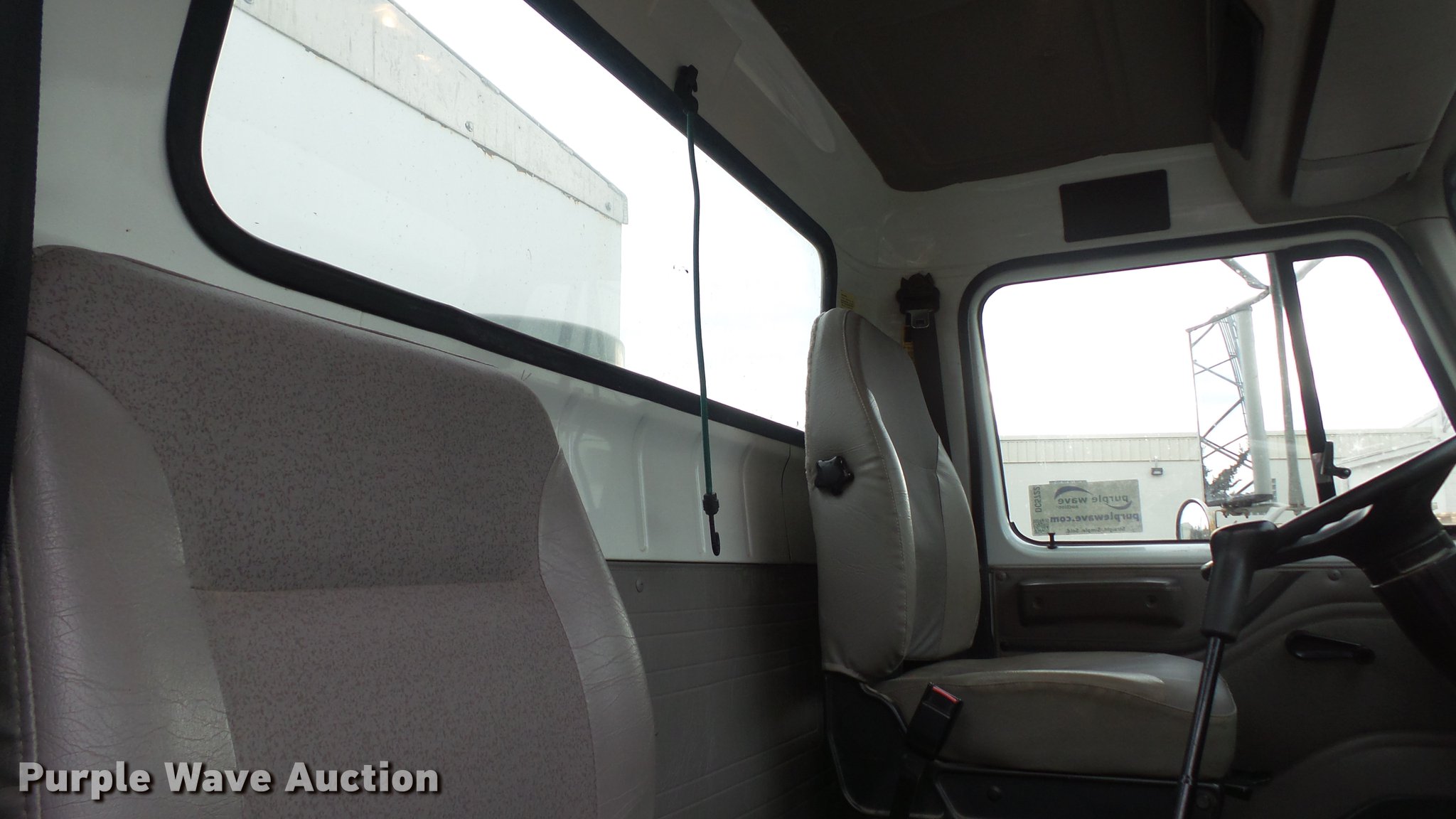 Purple Wave is selling a used Fertilizer or Feed Delivery Truck in Kentucky. This item is a 2000 International 4700 feed truck with the following: 28,115 miles on odometer, 4,231 hours on meter, International DT466 7.6L L6 turbo diesel engine, Seven speed manual transmission, Single axle, AC and heat, AM/FM, Air suspension seat, Block heater, Front tow hooks, PTO, Wet kit, Sudenga feeder bed, Model ST912P-00-08-99, 12'L x 8'W, Two bins, Manual roll tarp, Hose storage, Roll up cover, Hoses, Serial 9407, Wm. W. Meyer & Sons 12x12 pump, 4" outlet, Serial 2001014-1, Sutorbilt blower, Additional pump and blower, Unknown operating condition, Storage boxes, Single fuel tank, Spring suspension, Air brakes, Goodyear 11R22.5 tires