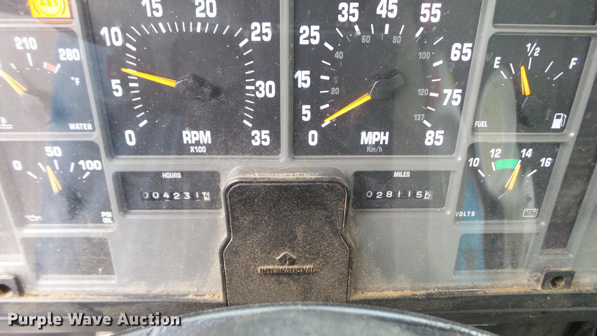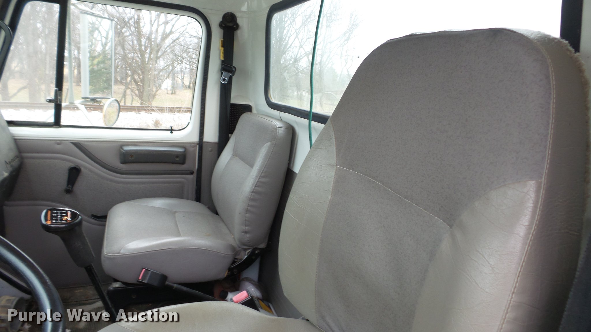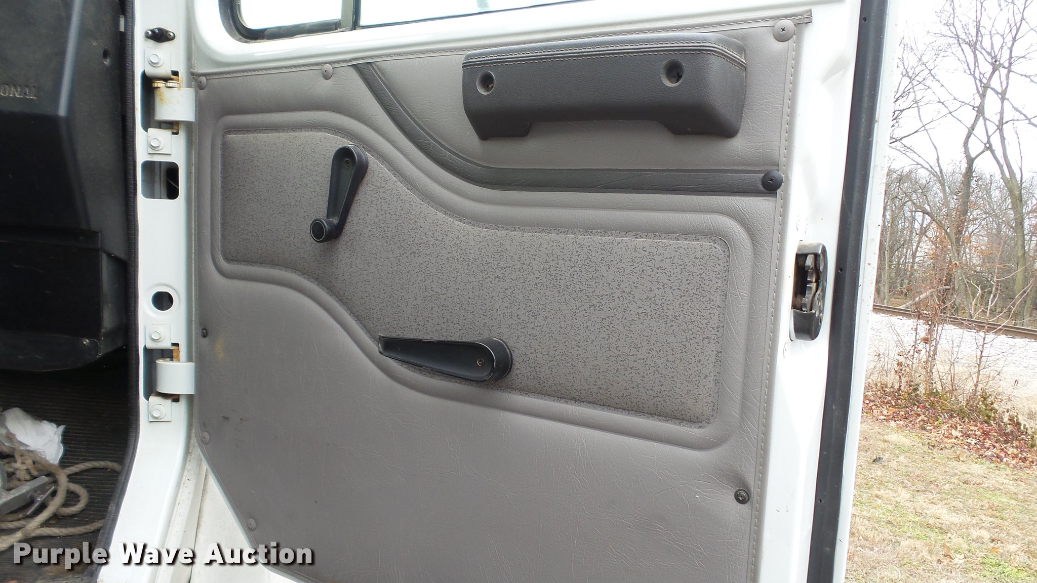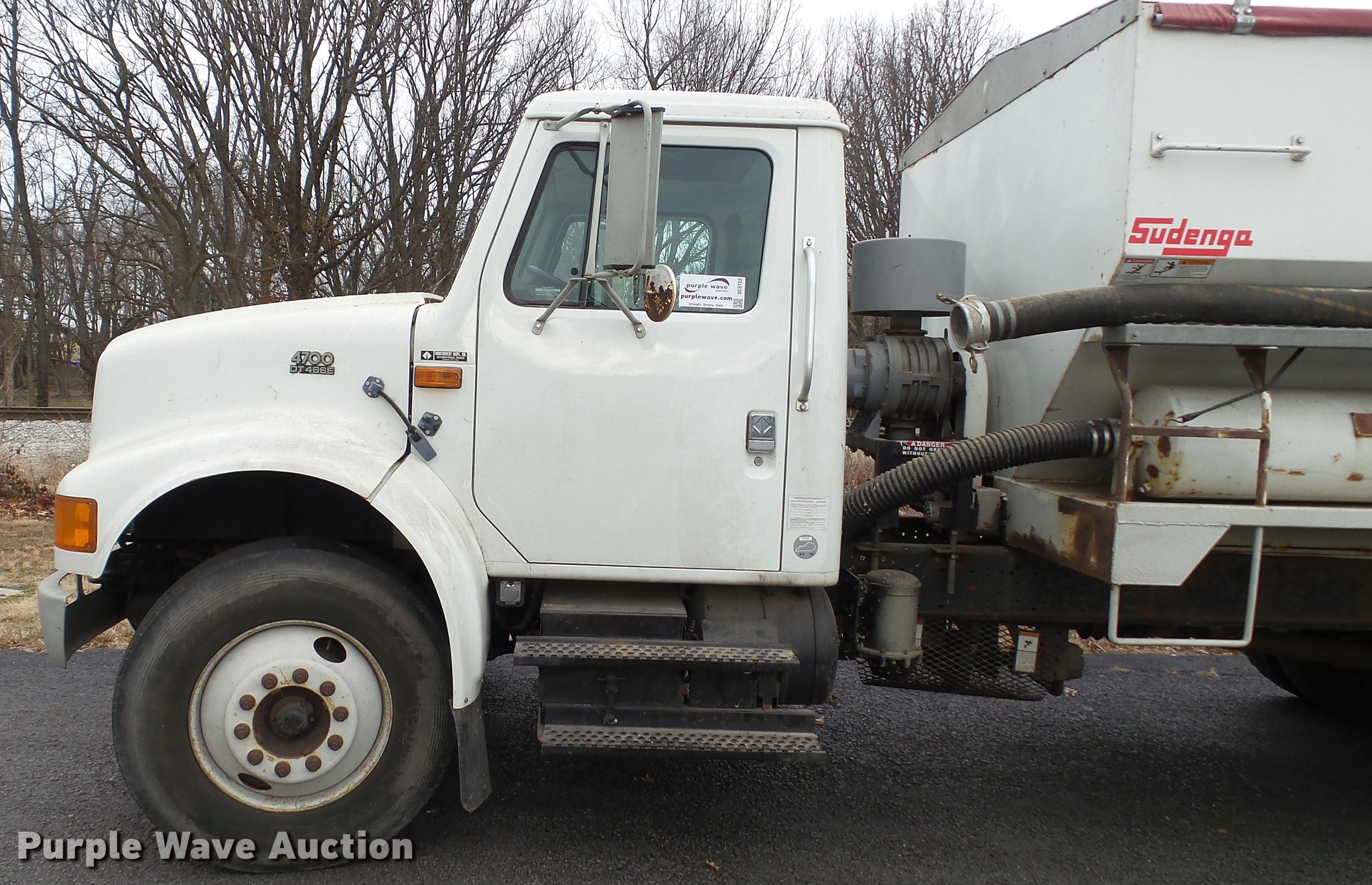 Purple Wave is selling a used Fertilizer or Feed Delivery Truck in Kentucky. This item is a 2000 International 4700 feed truck with the following: 28,115 miles on odometer, 4,231 hours on meter, International DT466 7.6L L6 turbo diesel engine, Seven speed manual transmission, Single axle, AC and heat, AM/FM, Air suspension seat, Block heater, Front tow hooks, PTO, Wet kit, Sudenga feeder bed, Model ST912P-00-08-99, 12'L x 8'W, Two bins, Manual roll tarp, Hose storage, Roll up cover, Hoses, Serial 9407, Wm. W. Meyer & Sons 12x12 pump, 4" outlet, Serial 2001014-1, Sutorbilt blower, Additional pump and blower, Unknown operating condition, Storage boxes, Single fuel tank, Spring suspension, Air brakes, Goodyear 11R22.5 tires