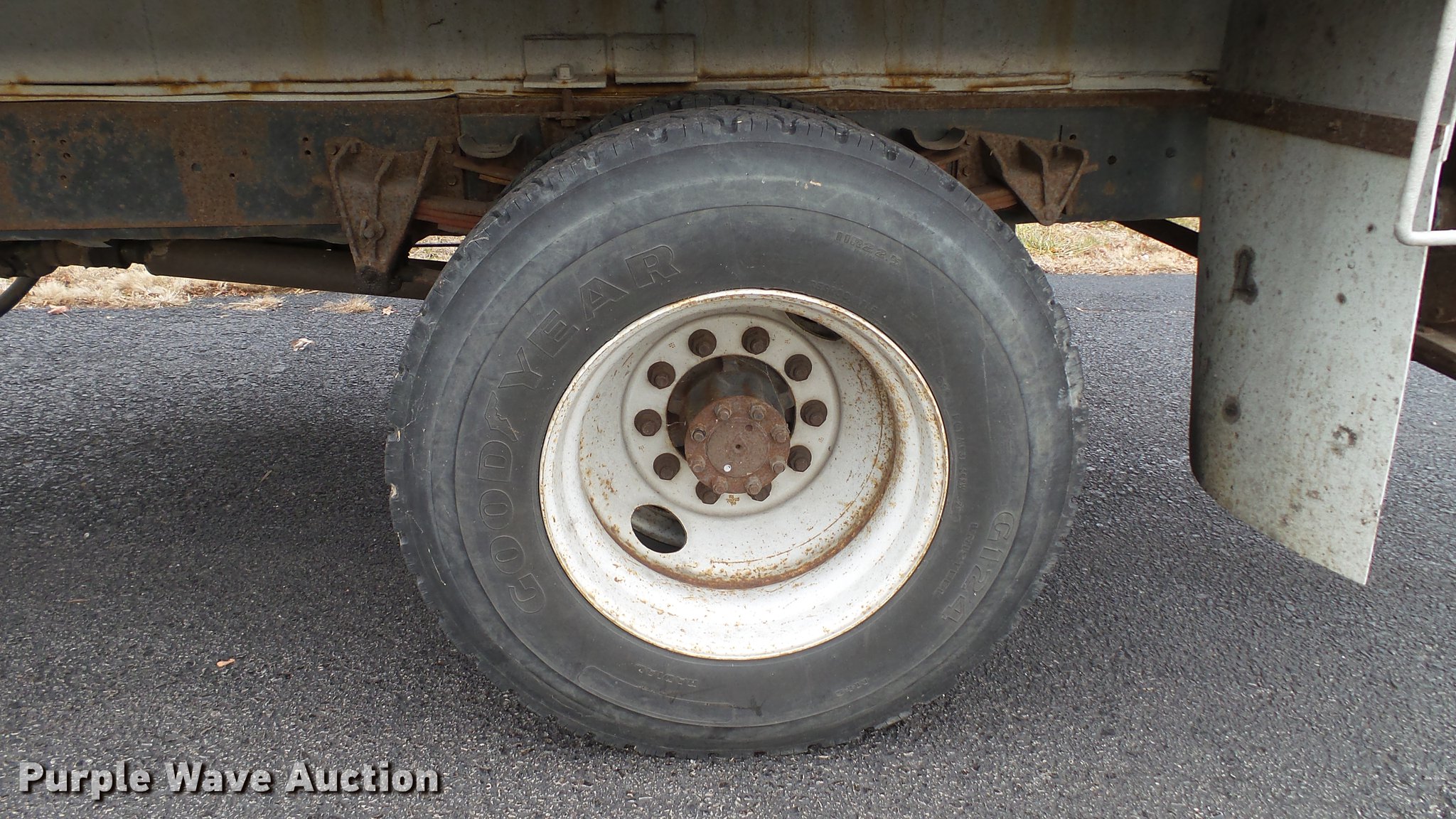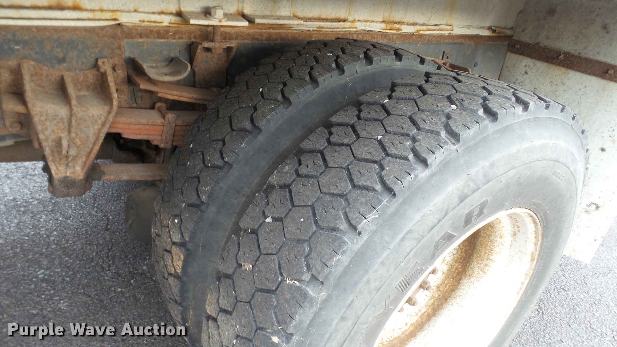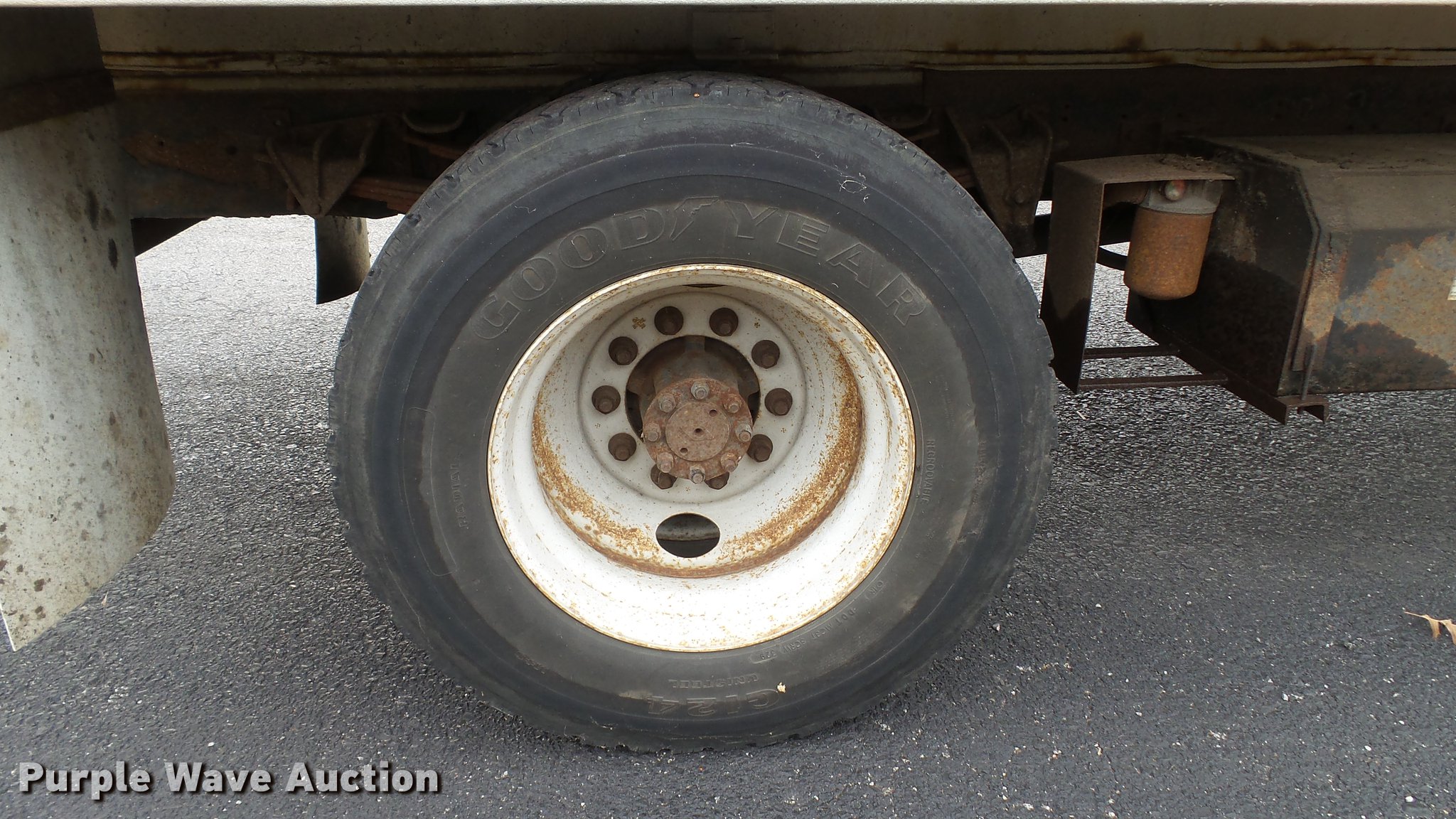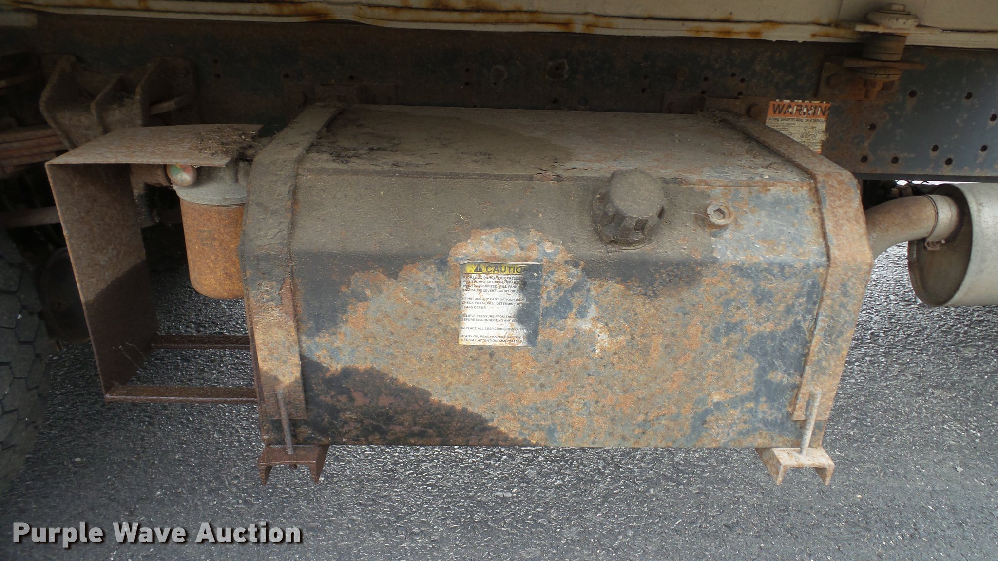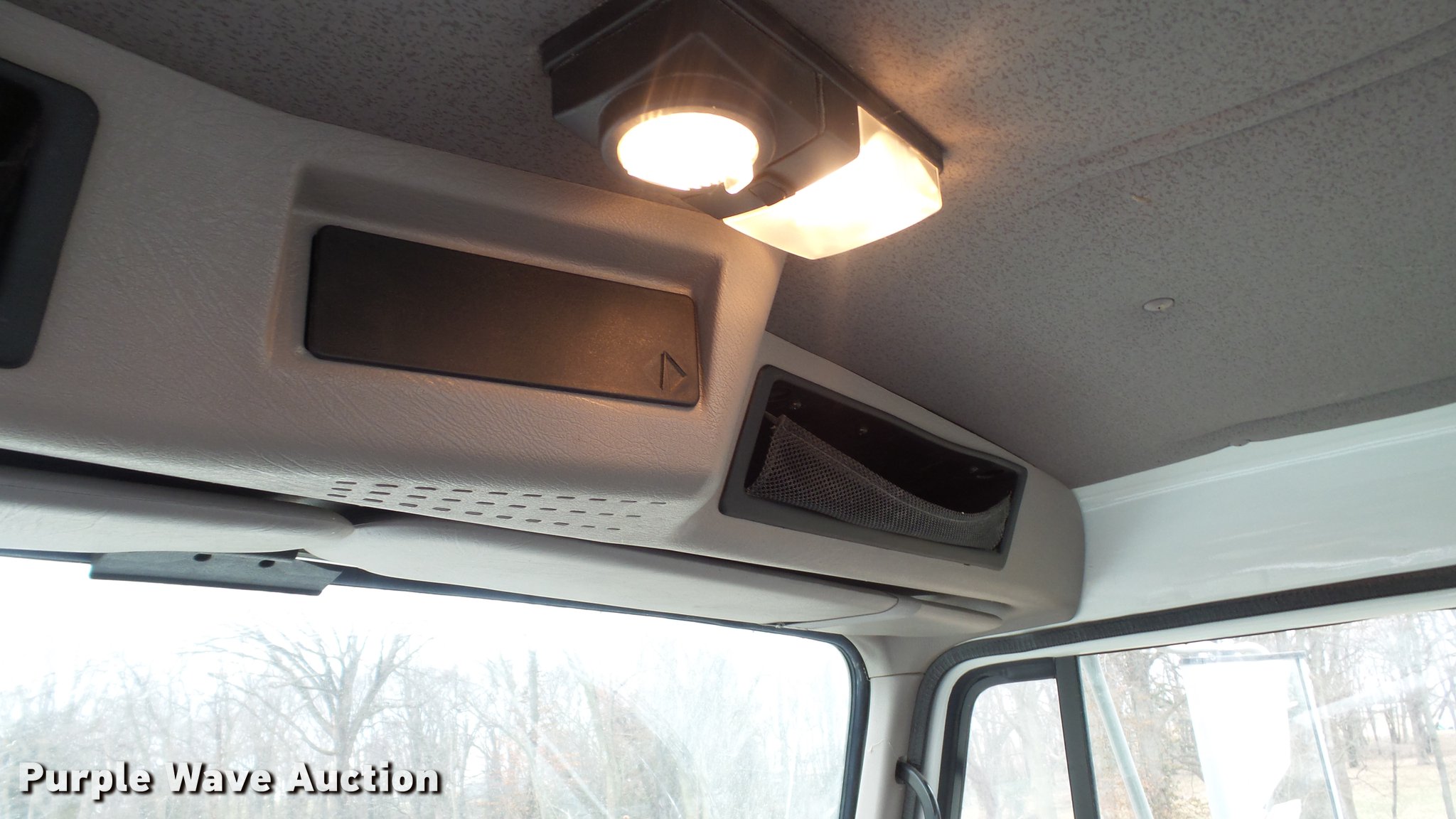 Purple Wave is selling a used Fertilizer or Feed Delivery Truck in Kentucky. This item is a 2000 International 4700 feed truck with the following: 28,115 miles on odometer, 4,231 hours on meter, International DT466 7.6L L6 turbo diesel engine, Seven speed manual transmission, Single axle, AC and heat, AM/FM, Air suspension seat, Block heater, Front tow hooks, PTO, Wet kit, Sudenga feeder bed, Model ST912P-00-08-99, 12'L x 8'W, Two bins, Manual roll tarp, Hose storage, Roll up cover, Hoses, Serial 9407, Wm. W. Meyer & Sons 12x12 pump, 4" outlet, Serial 2001014-1, Sutorbilt blower, Additional pump and blower, Unknown operating condition, Storage boxes, Single fuel tank, Spring suspension, Air brakes, Goodyear 11R22.5 tires