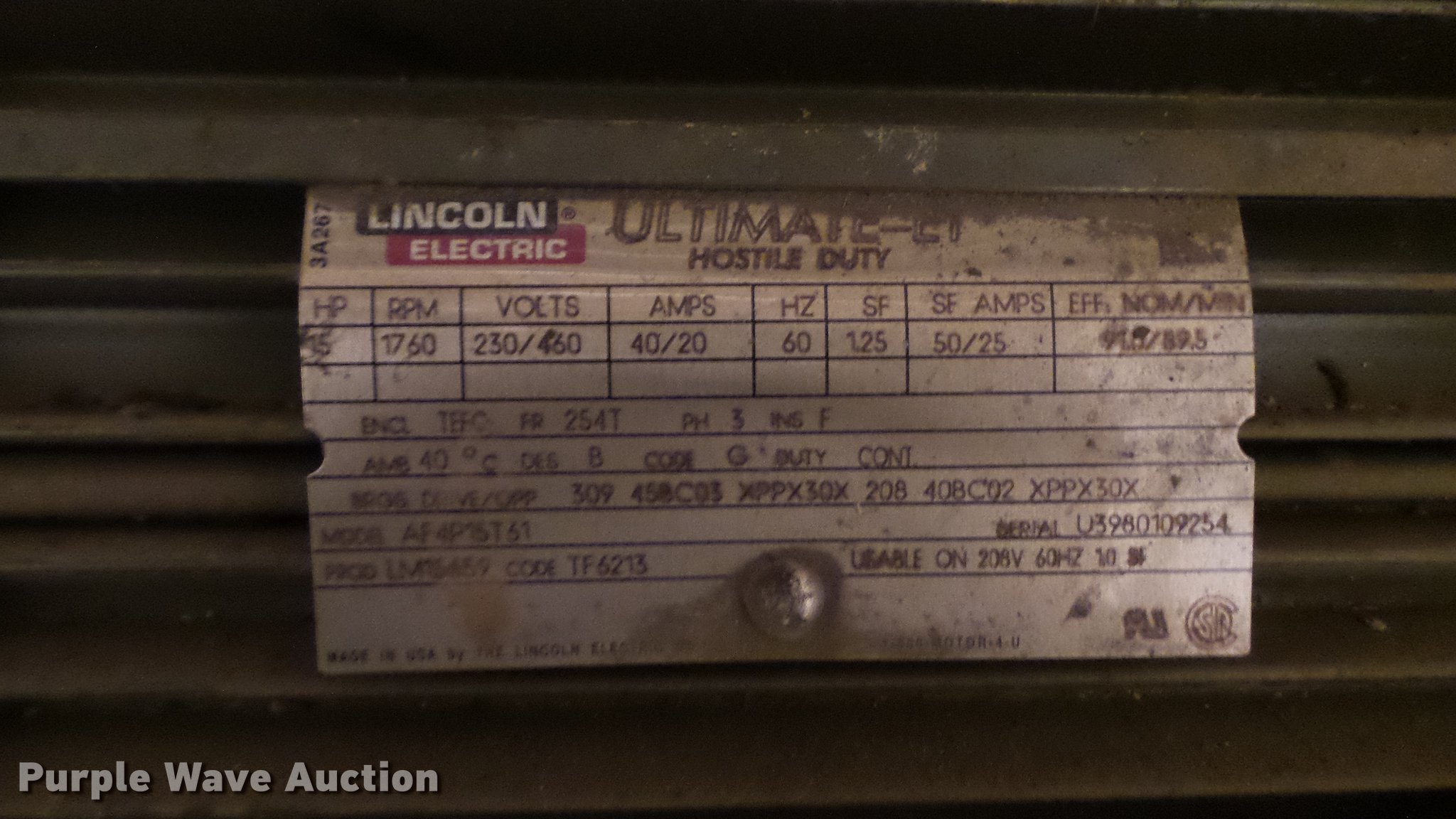Purple Wave is selling a used Air Compressor in Kentucky. This item is a Ingersoll Rand 7100 air compressor with the following: 67"L, Serial 00003627, Lincoln Electric Ultimate-ET electric motor, 230volt, 15 HP, Three phase, Hawkinson DH-60 compressed air dryer, 60 scfm at 100psig capacity, Serial 3332-6-9304-5N