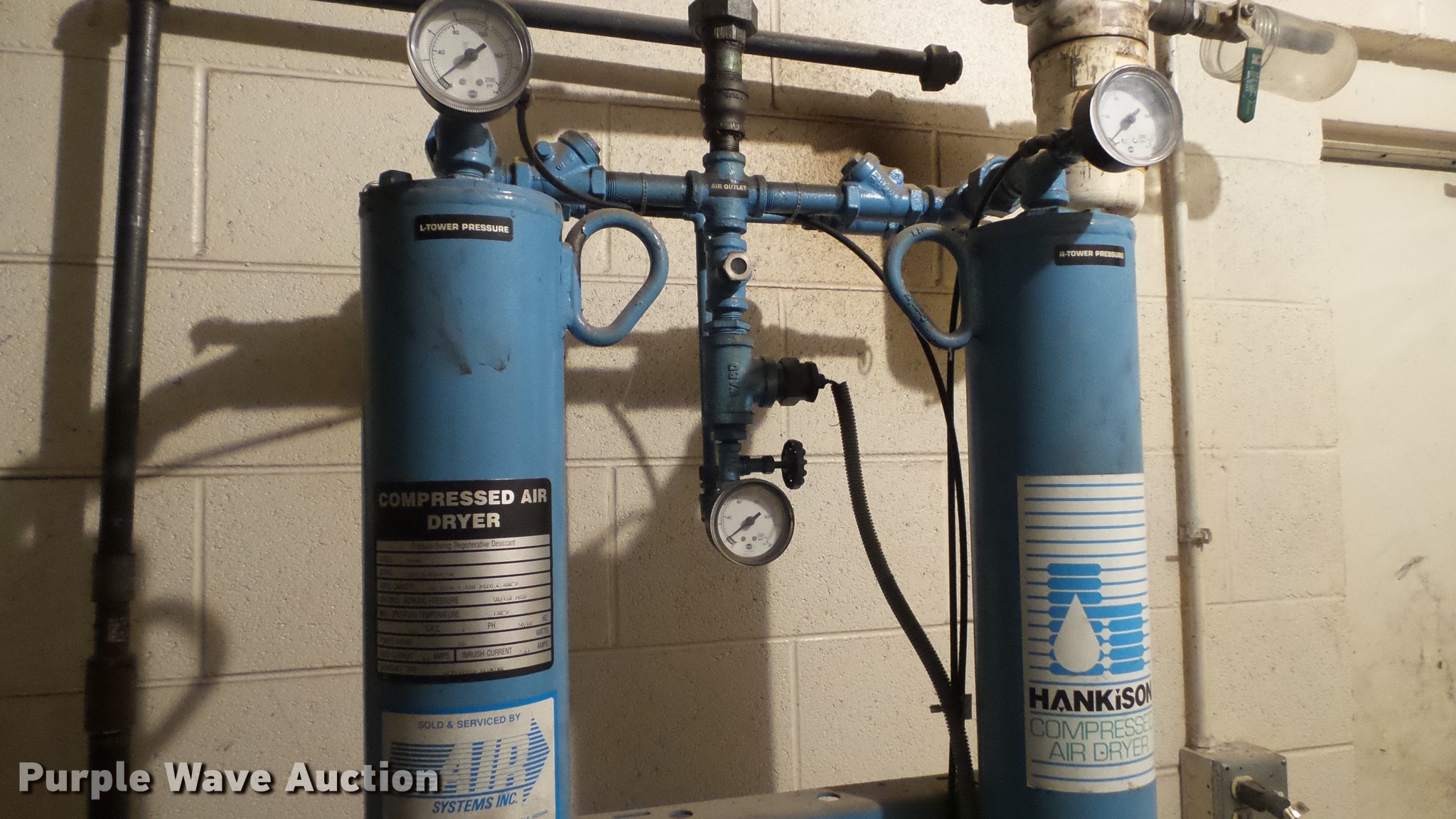 Ingersoll Rand 7100 air compressor. 67"L, Serial 00003627, Lincoln Electric Ultimate-ET electric motor 230volt, 15 HP, Three phase, Hawkinson DH-60 compressed air dryer, 60 scfm at 100psig capacity, Serial 3332-6-9304-5N. Hallway Feeds. 251 W Loudon Ave. Lexington, KY 40508