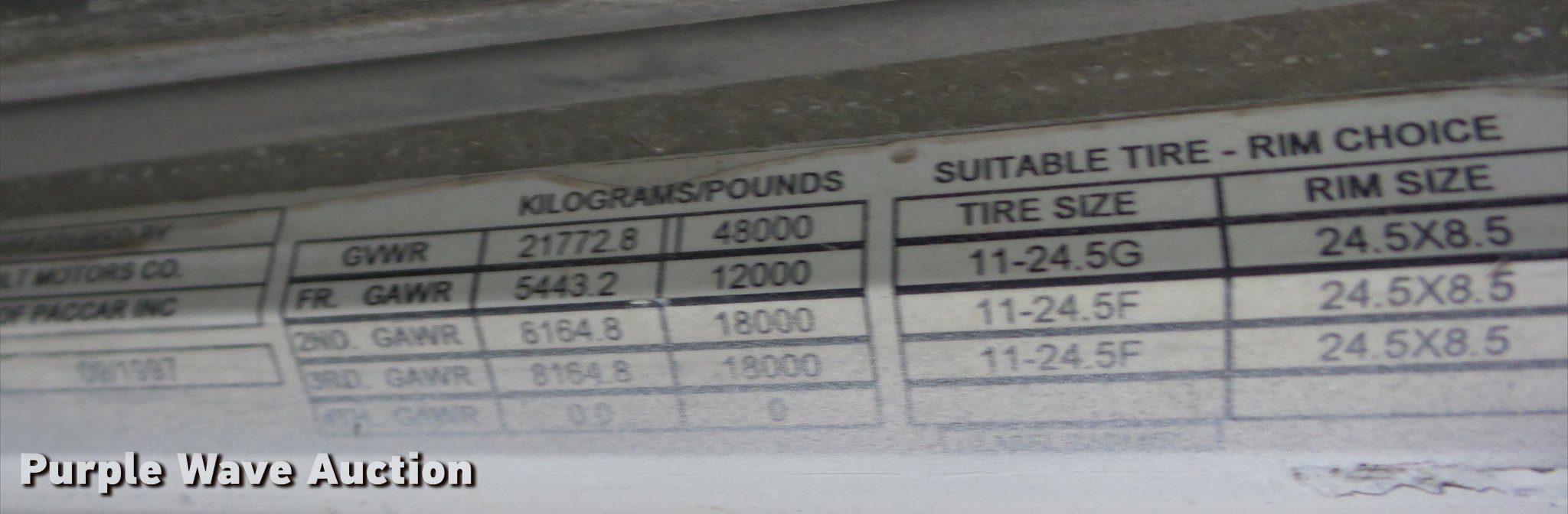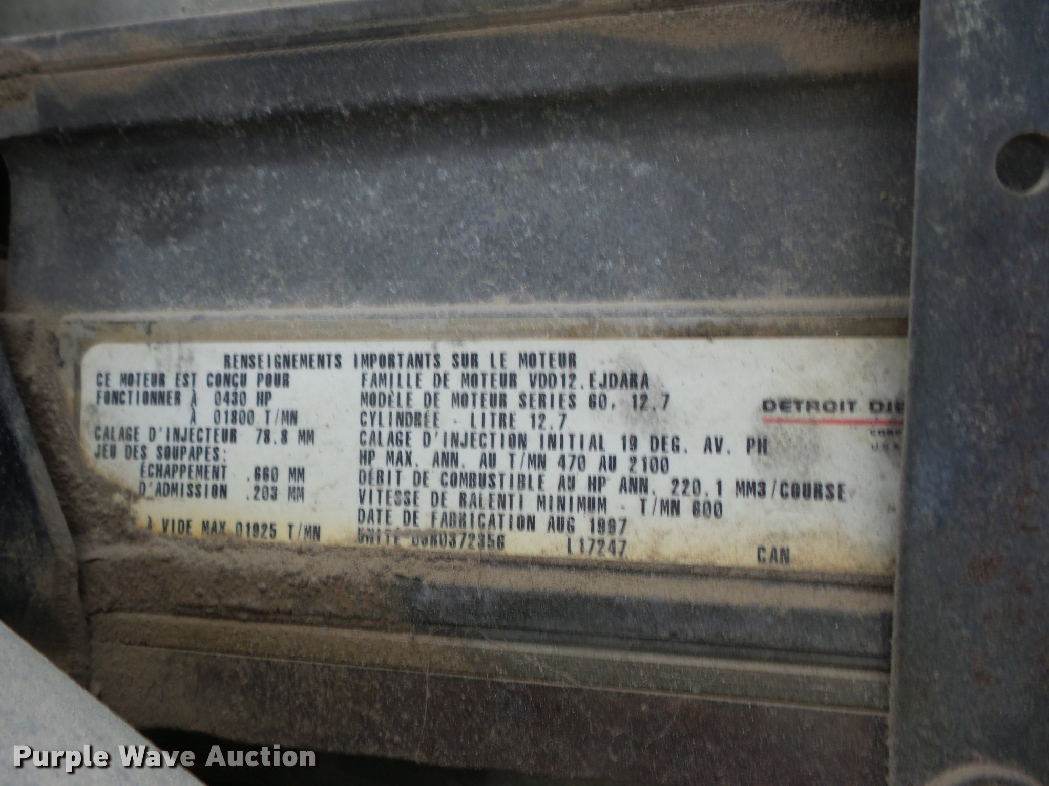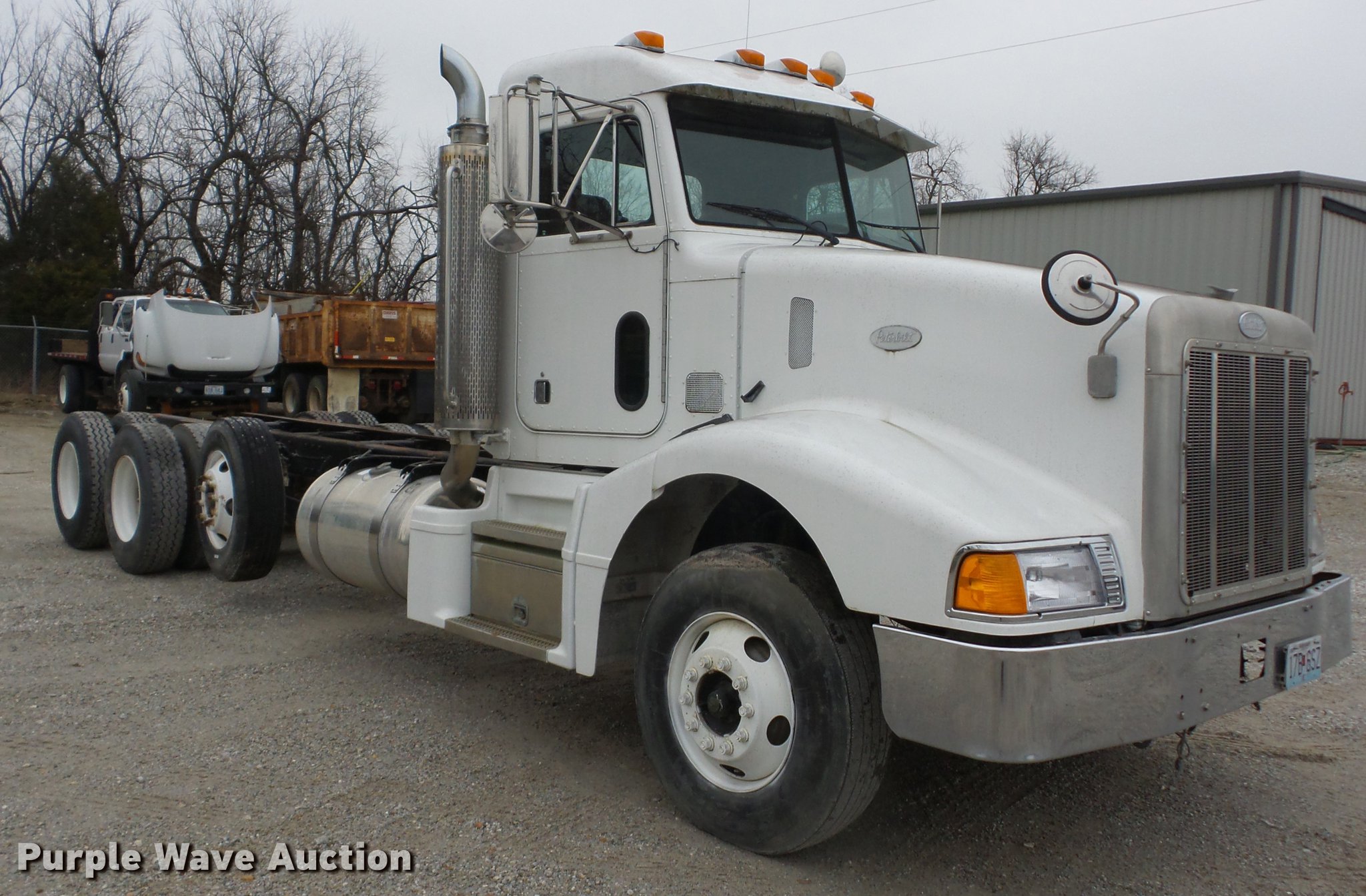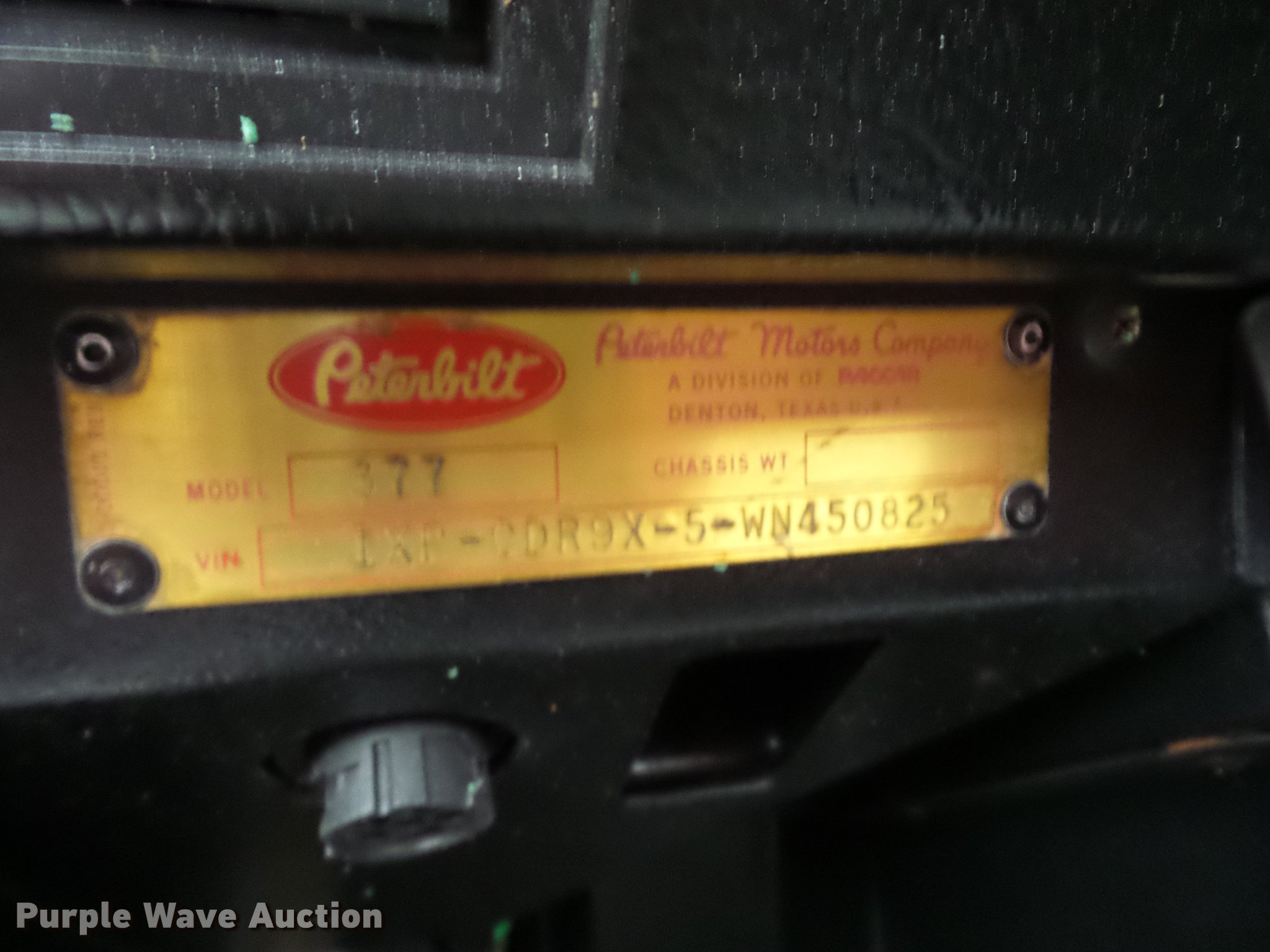 Purple Wave is selling a used Truck Chassis in Missouri. This item is a 1998 Peterbilt 377 cab and chassis with the following: 724,772 miles on odometer, Detroit Diesel Series 60 12.7L L6 turbo diesel engine, 430 HP, Manual transmission, Inter-axle differential lock, Tandem axle, AC and heat, Cruise, AM/FM/cassette, Power heated mirrors, Air suspension seat, Block heater, Exterior visor, Front tow hook, Dual fuel tanks, Single rear exhaust stack, Steerable lift axle, Partial double frame, Air suspension, Air brakes, Engine brake, 11R22.5 tires, GVWR 48,000 lbs, FAWR 12,000 lbs, IAWR 18,000 lbs, RAWR 18,000 lbs, Driver's mirror missing, Unit# 229