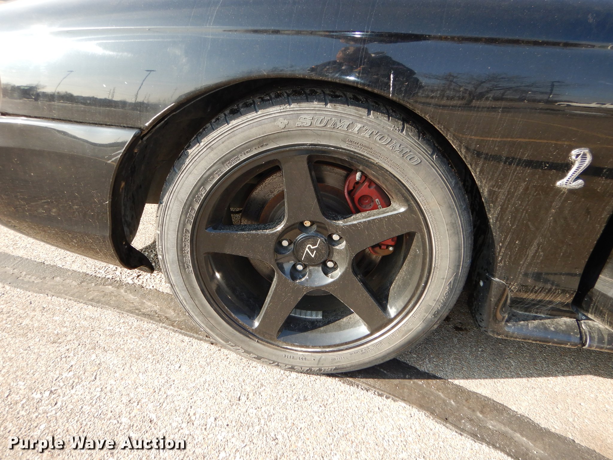 Purple Wave is selling a used Passenger Vehicle in Kansas. This item is a 1998 Ford Mustang Cobra convertible with the following: 92,009 miles on odometer, 4.6L V8 DOHC 32V gas engine, Five speed manual transmission, AC and heat, Tilt, Cruise, AM/FM/CD, Power windows, locks, and mirrors, Leather interior, 275/40R17 tires, Dead battery, Rear view mirror off but included