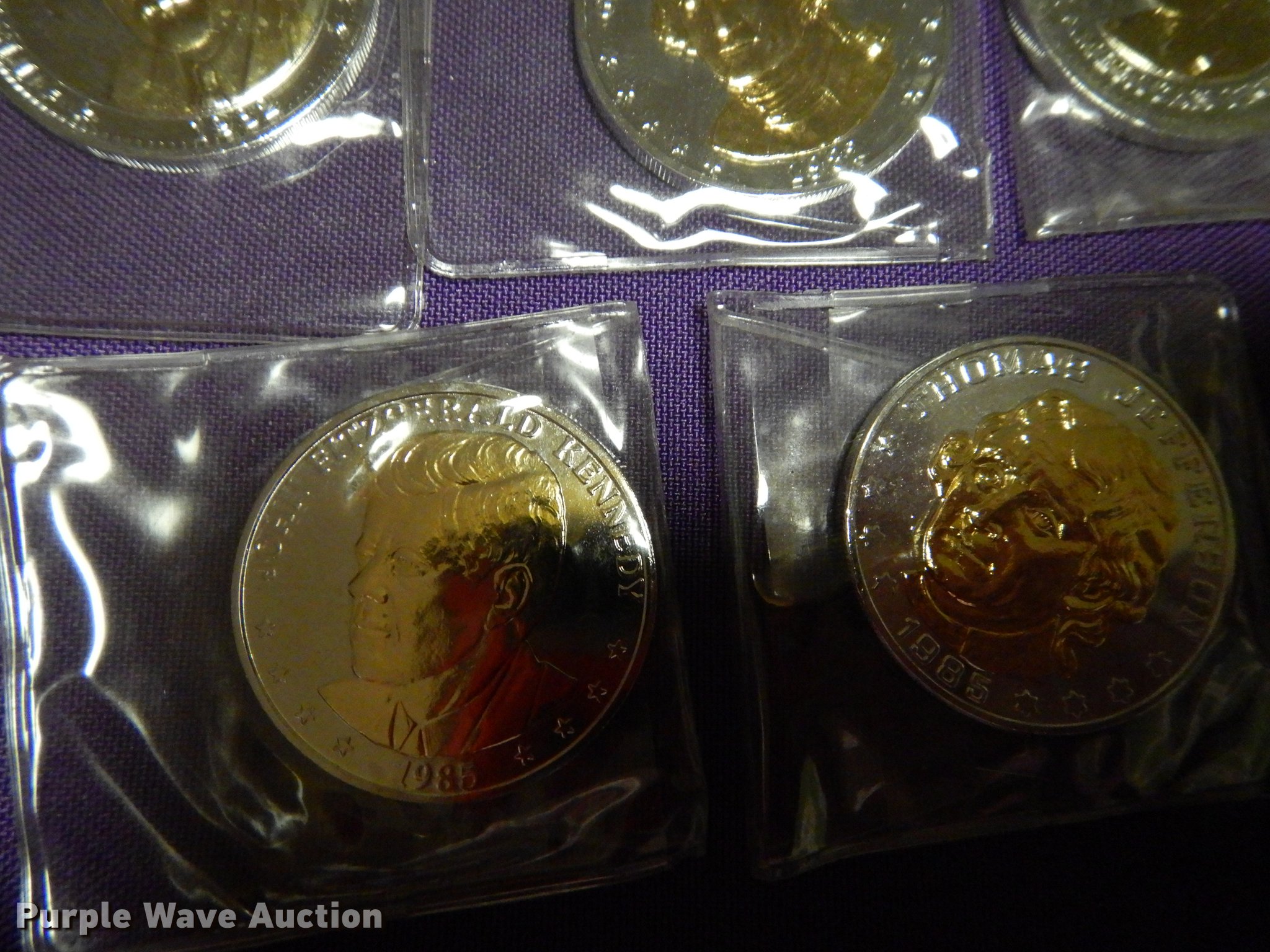 Purple Wave is selling a used All Other Household Items in Kansas. This item is a (5) Great American Presidents double eagle commemorative collection coins with the following: 24 karat gold, 0.999 silver, Certificate of authenticity