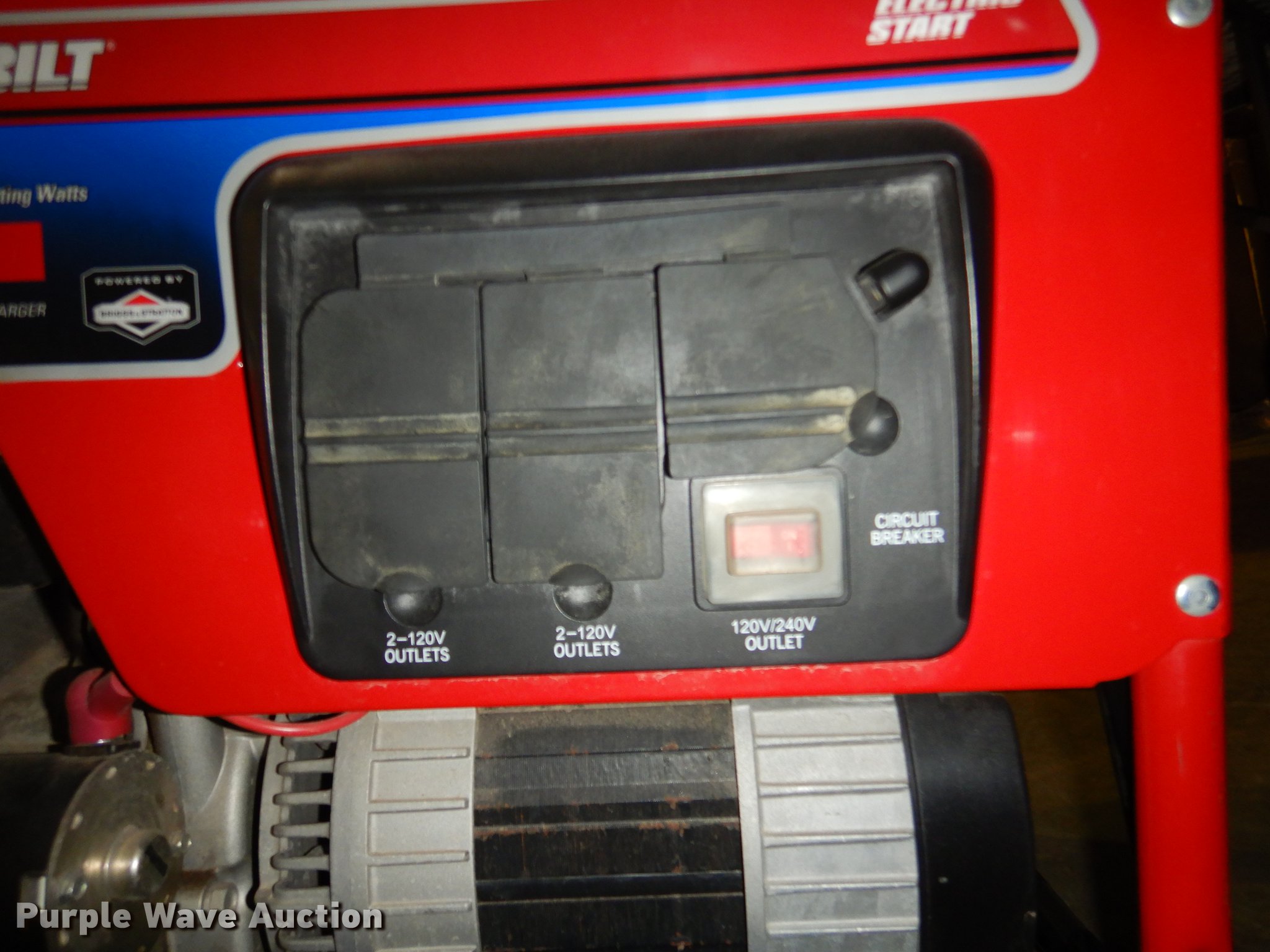 Purple Wave is selling a used Generator Set in Kansas. This item is a Troy-bilt 030343 generator with the following: Briggs & Stratton 305 cc gas engine, 5,000 watts, 6,250 starting watts, Unknown operating condition, Serial 1015024942