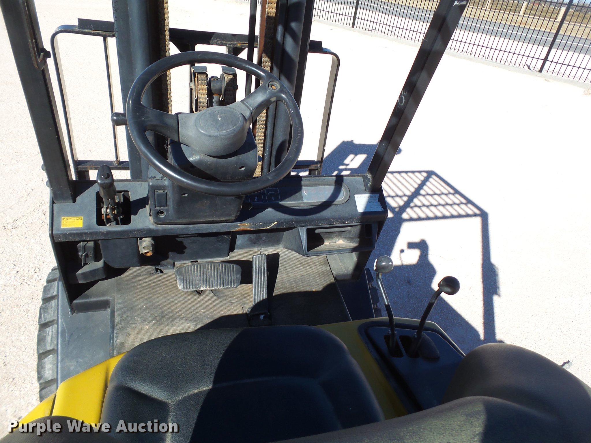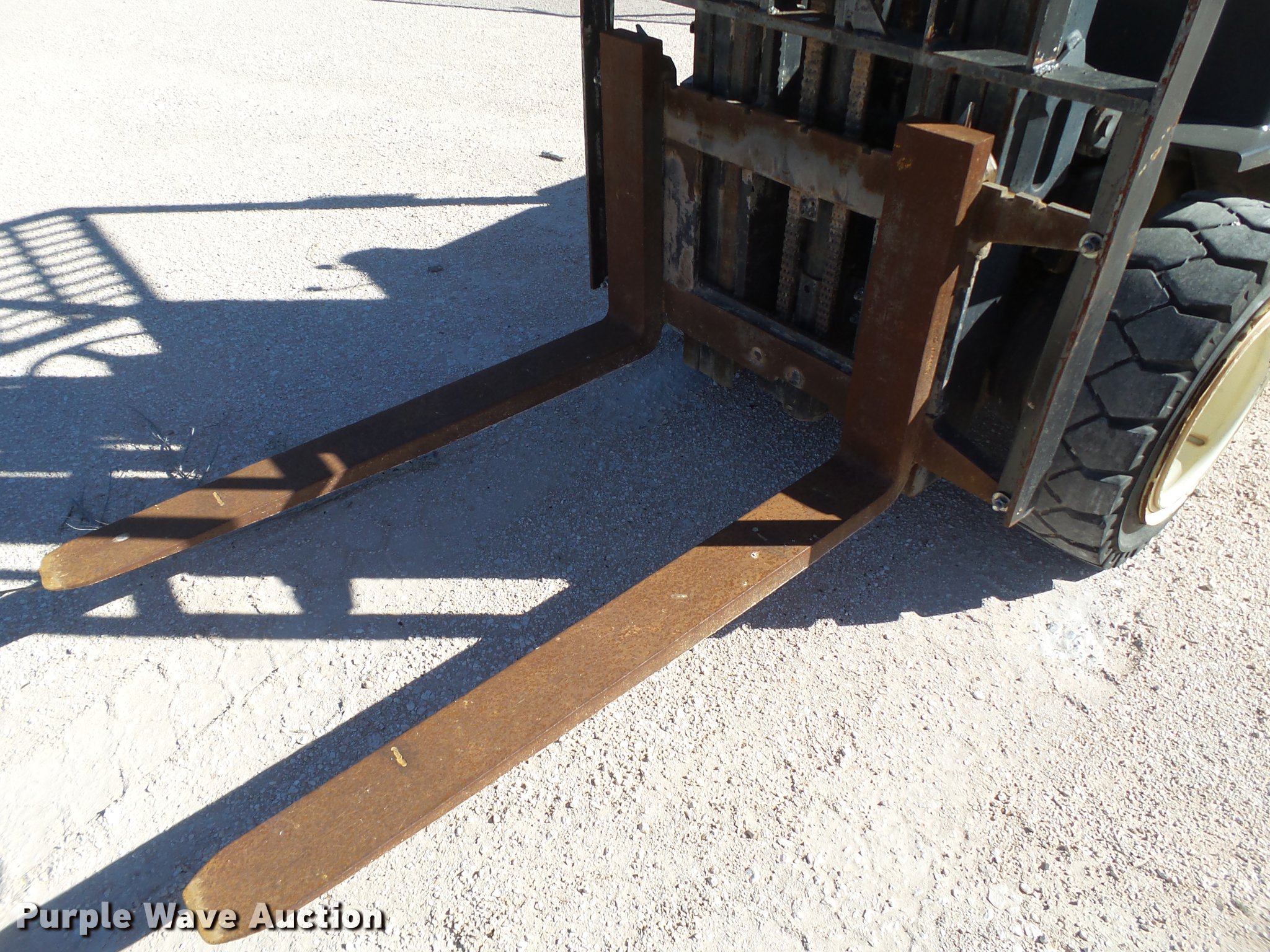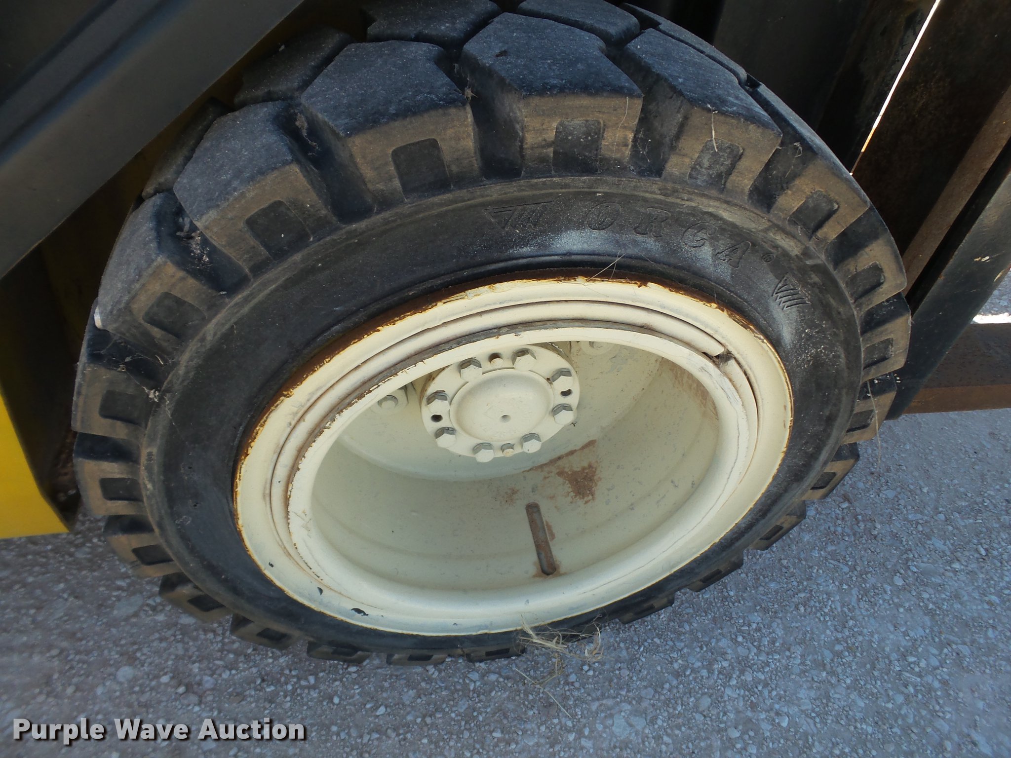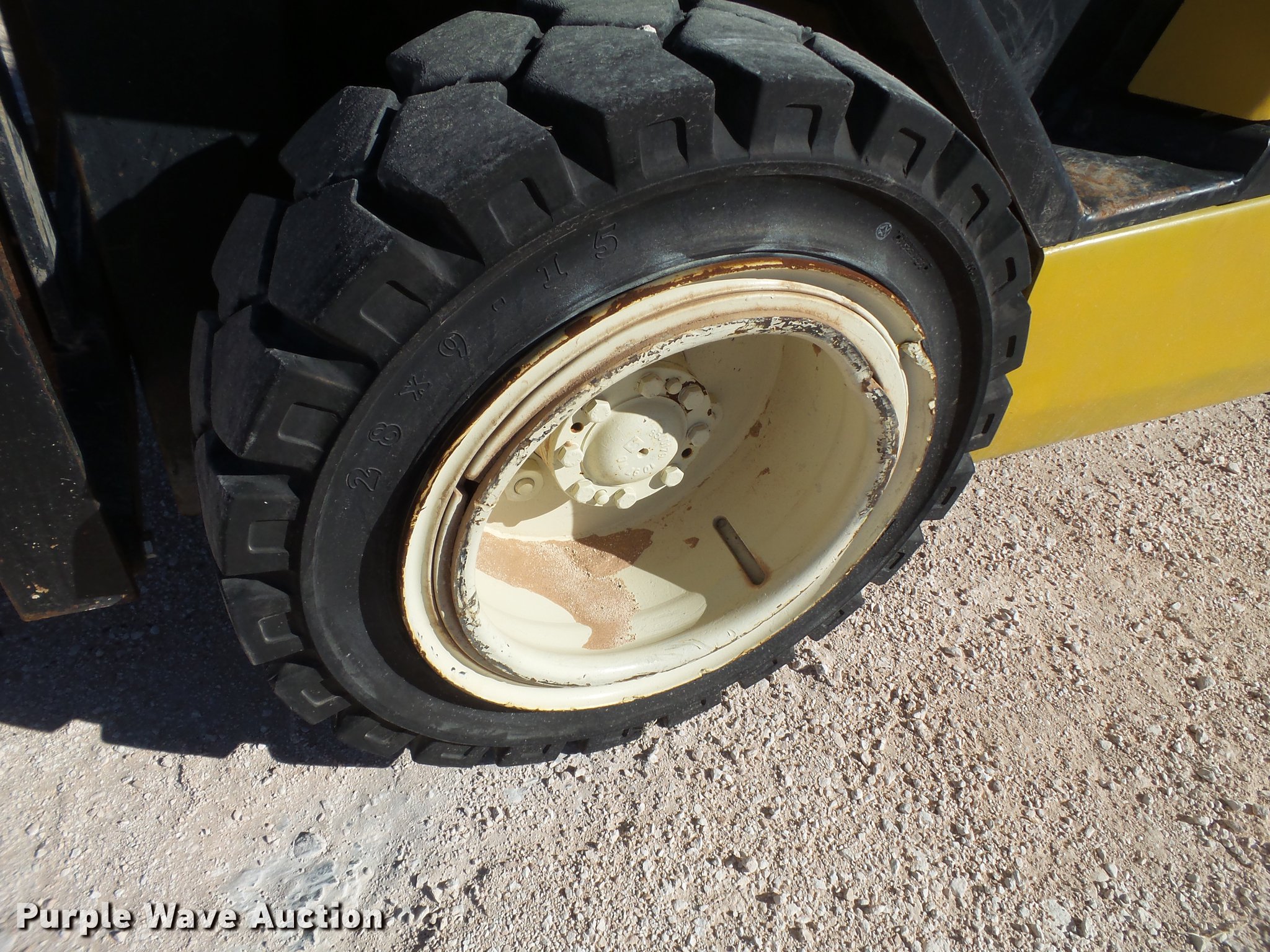 Purple Wave is selling a used Cushion Tire or Pneumatic Forklift in Texas. This item is a Yale forklift with the following: Yale four cylinder propane engine, OROPS, 3,000 lbs max lift capacity, 170" max lift height, Side shift, Mast shift, 40" fork length, Backup alarm, 28x9-15 front tires, 6.50-10 rear tires, Serial D520309